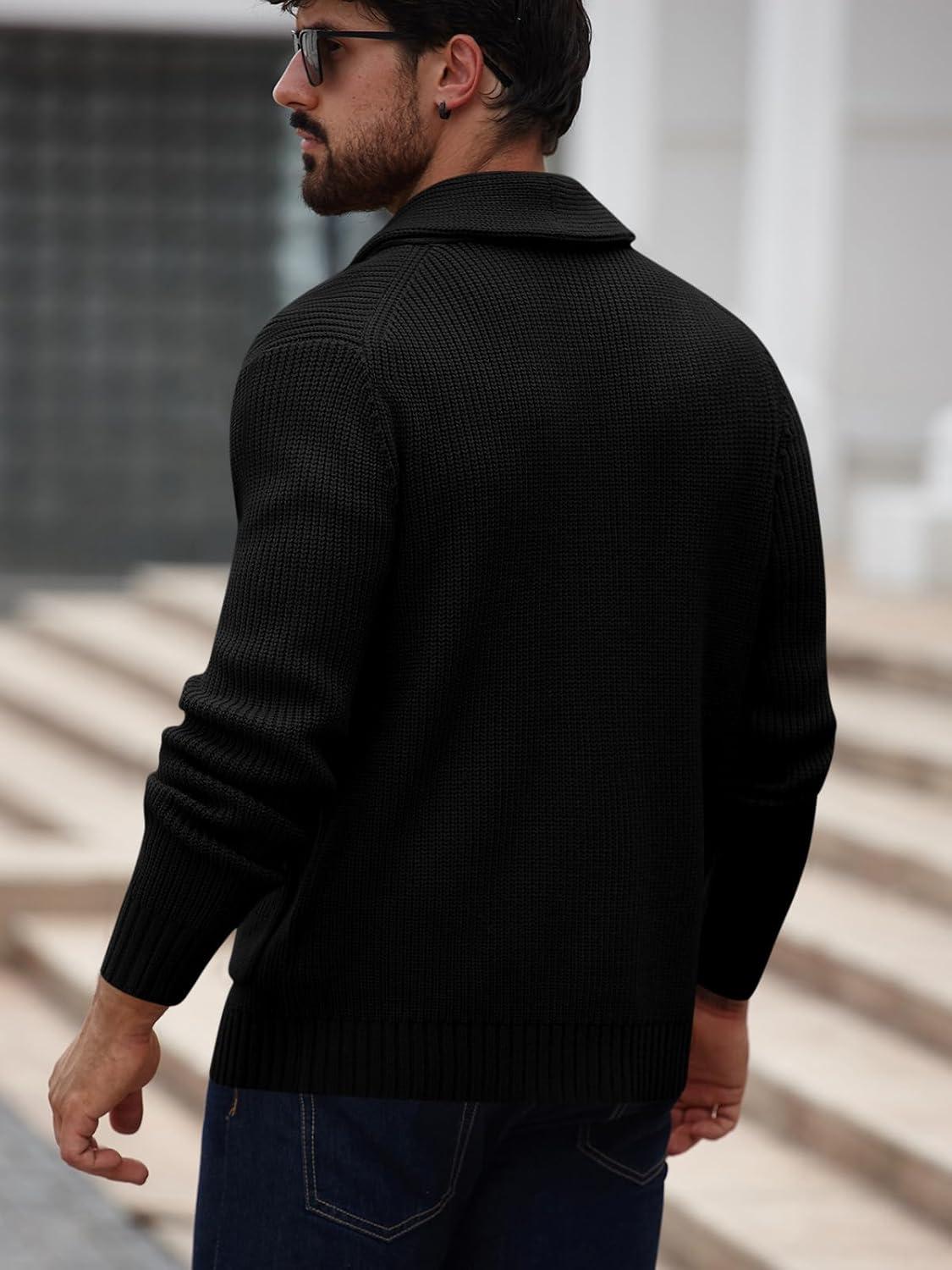 Runcati Mens Shawl Collar Cardigan Sweater Button Down Ribbed Knit Sweaters Chunky Casual Cardigan with Pockets(Black)