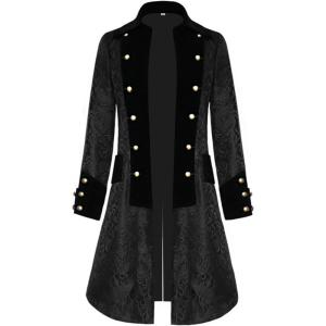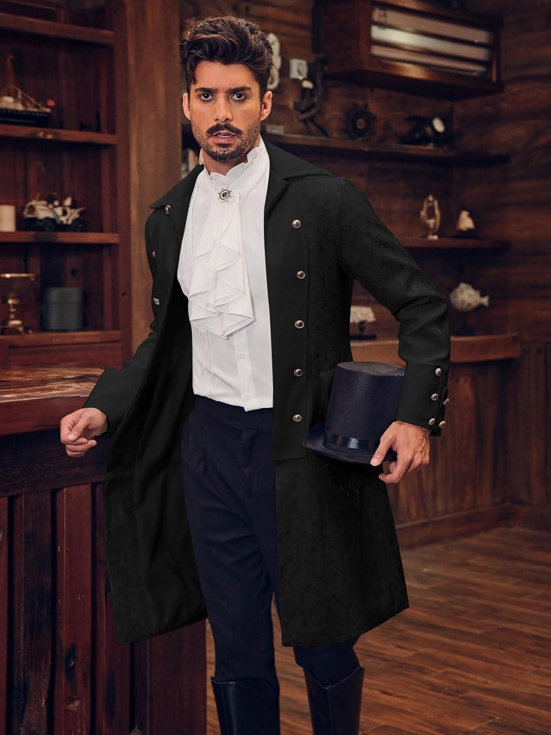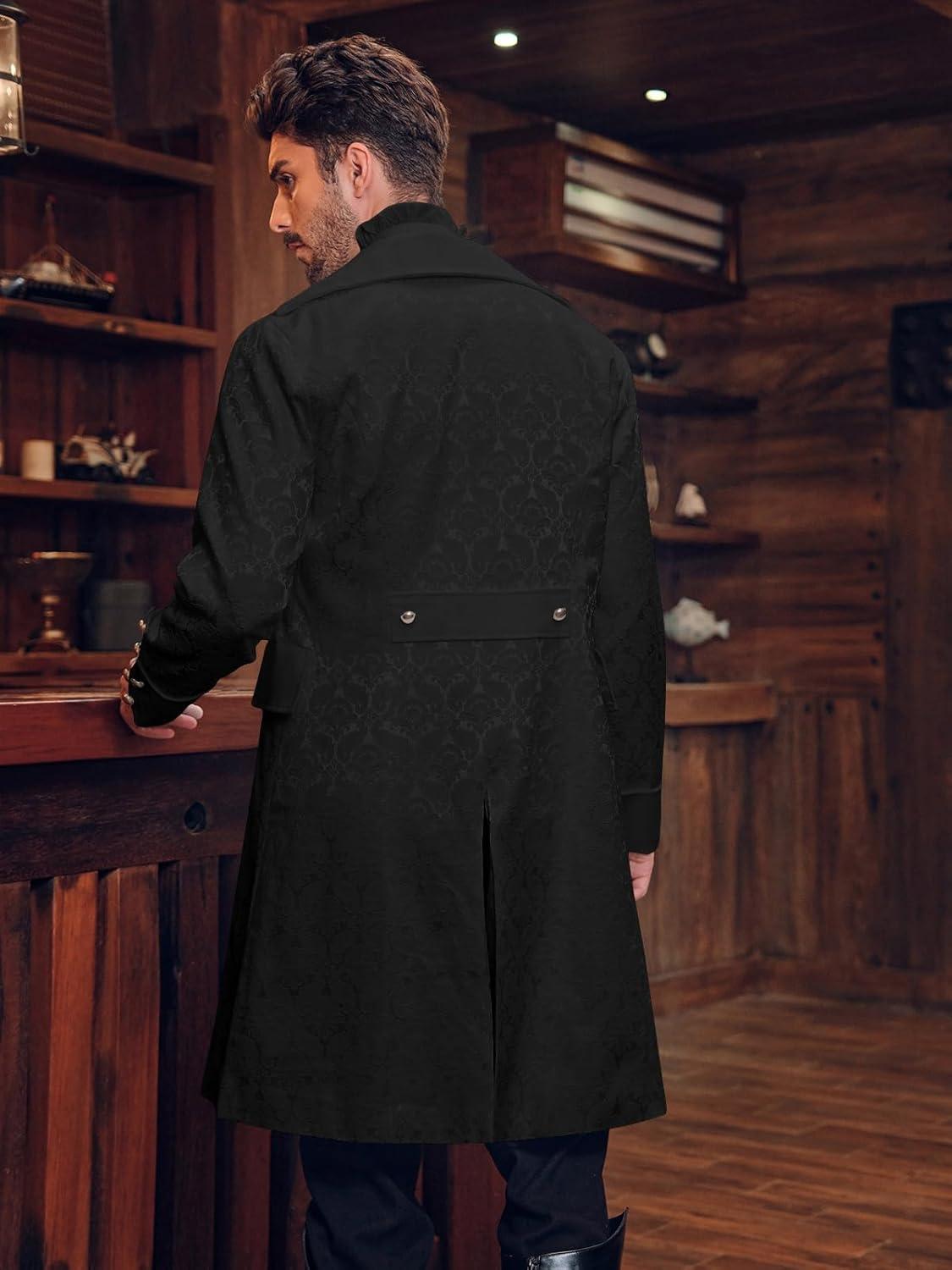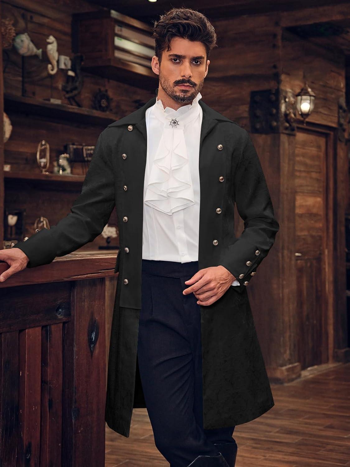 Mens Steampunk Medieval Jacket Pirate Viking Renaissance Costume Formal Tailcoat Gothic Victorian Halloween Tuxedo Coats(Y-black)