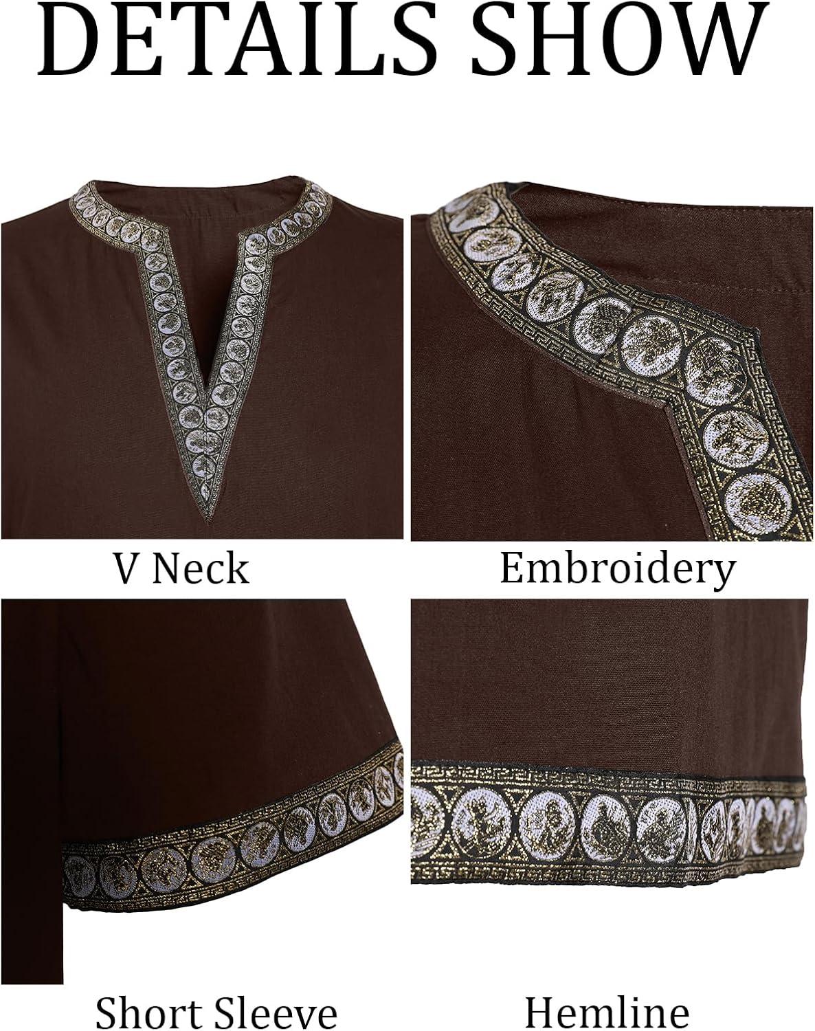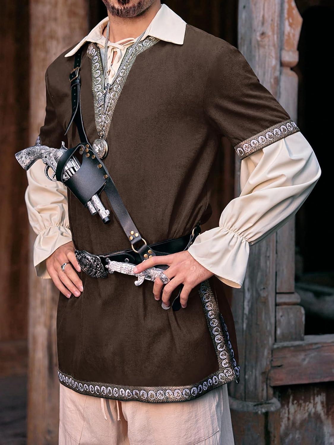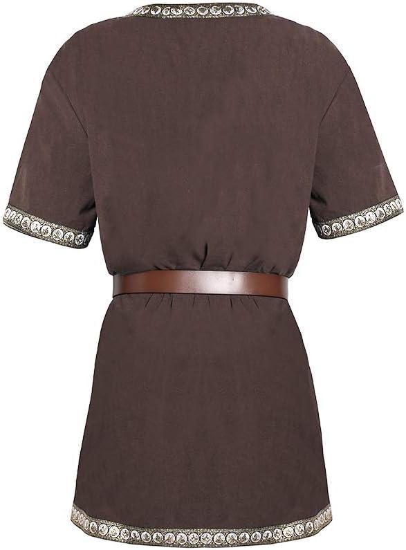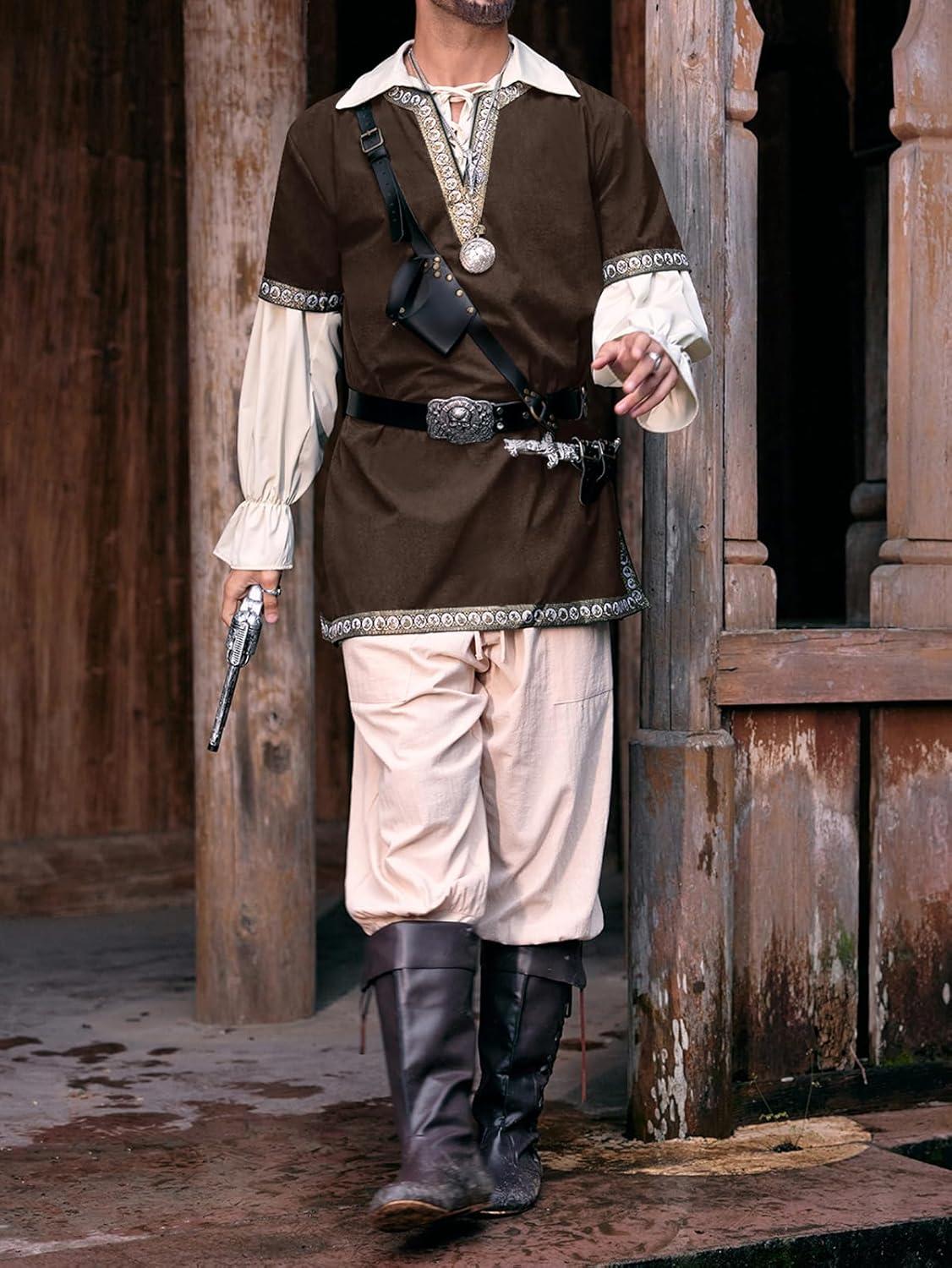 Runcati Mens Medieval Costume Halloween Renaissance Tunic Viking Knight Pirate Warrior LARP Shirts(Brown)