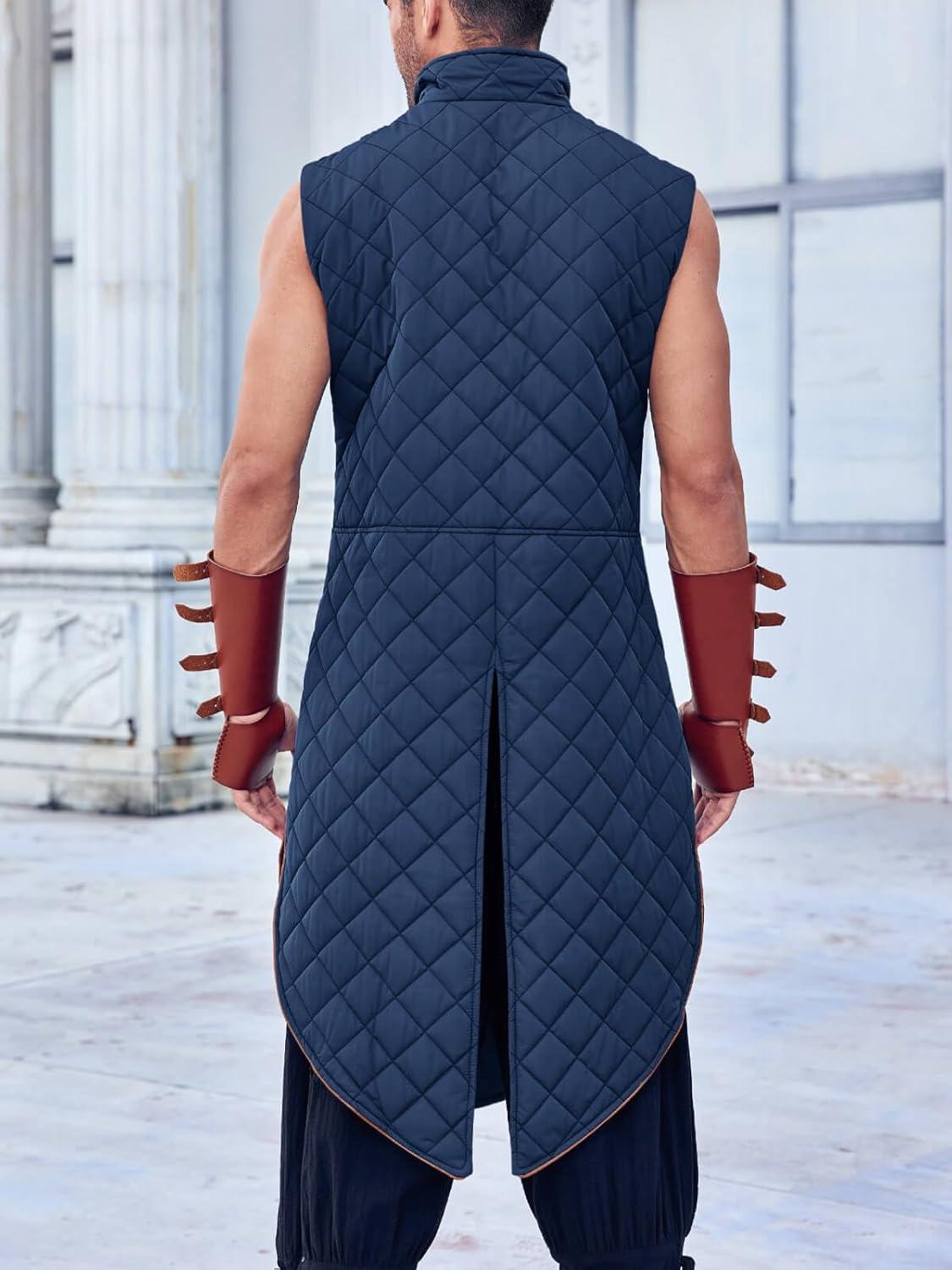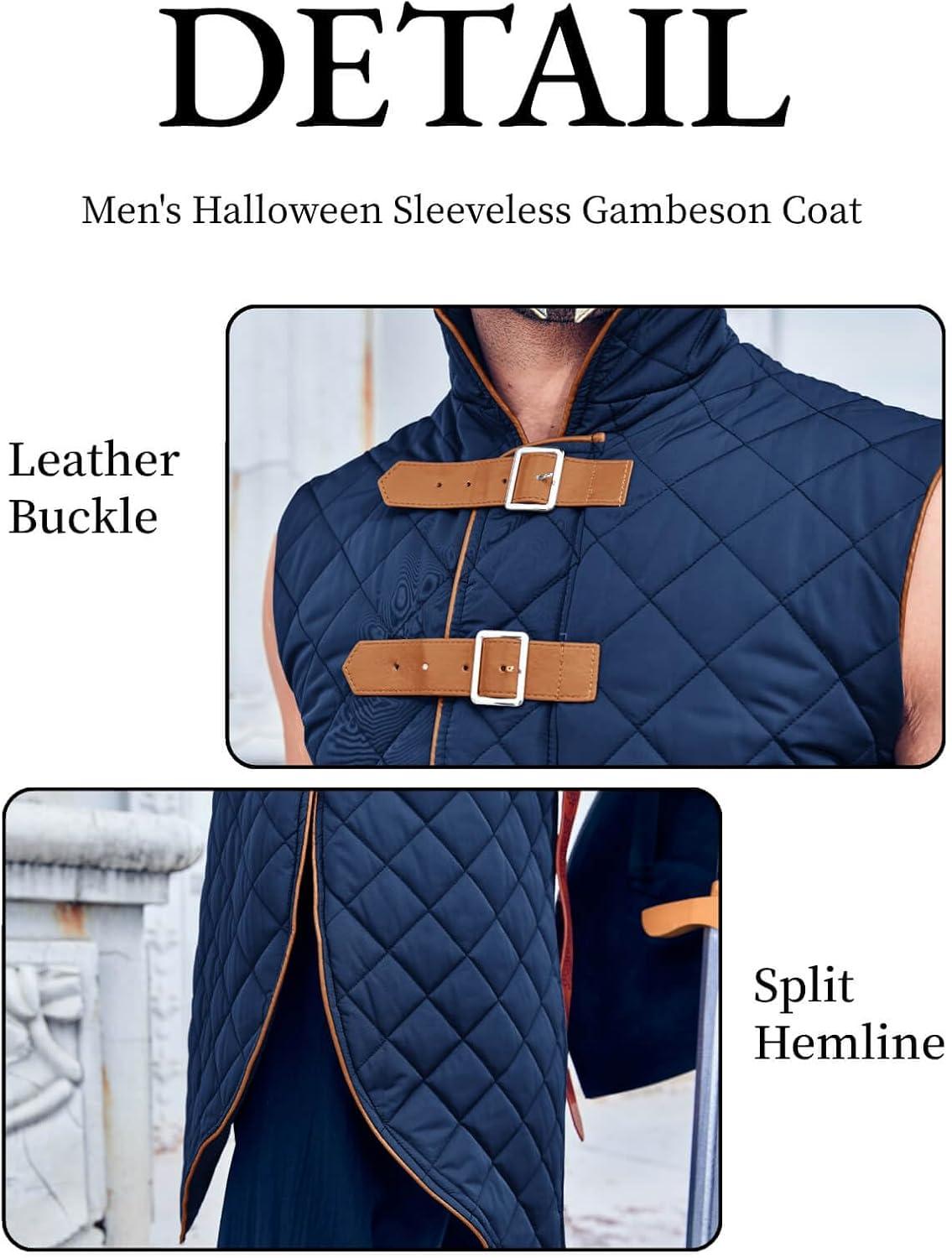 Runcati Men’s Padded Gambeson Vest Sleeveless Aketon Armor Medieval Knight Surcoat Halloween LARP Costume Dress(Blue)