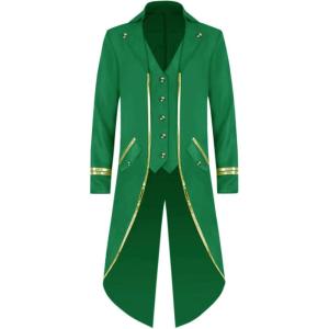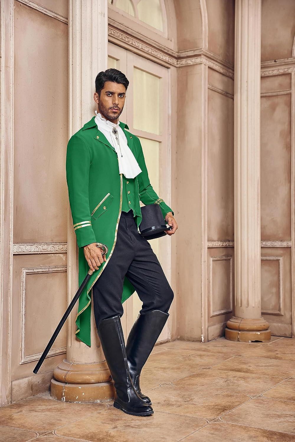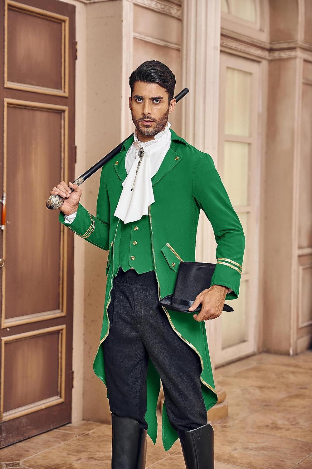 Runcati Mens Steampunk Victorian Jacket Gothic Tailcoat Costume Vintage Tuxedo Viking Renaissance Pirate Halloween Coats(Green-x)