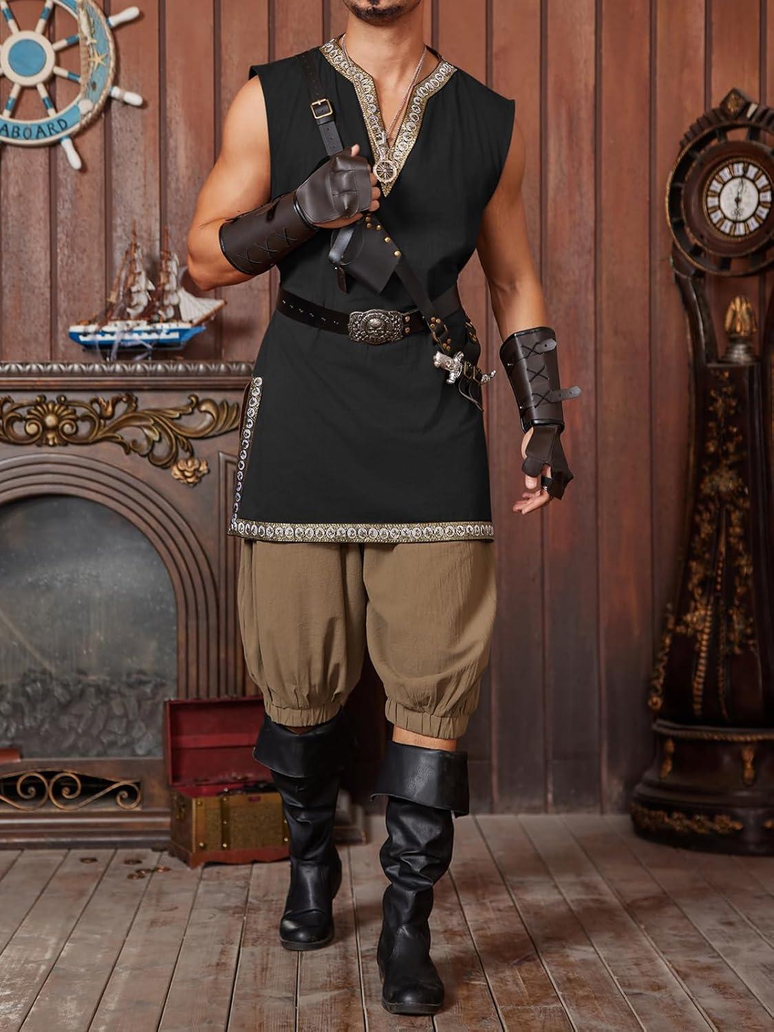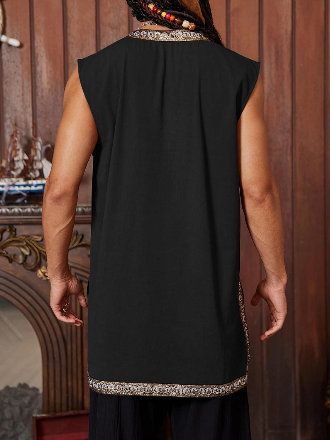 Runcati Mens Medieval Costume Pirate Renaissance Sleeveless Tunic Knight Viking Halloween LARP Shirts(Black)
