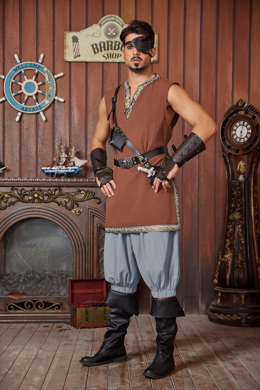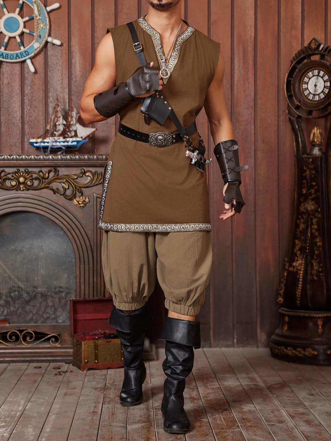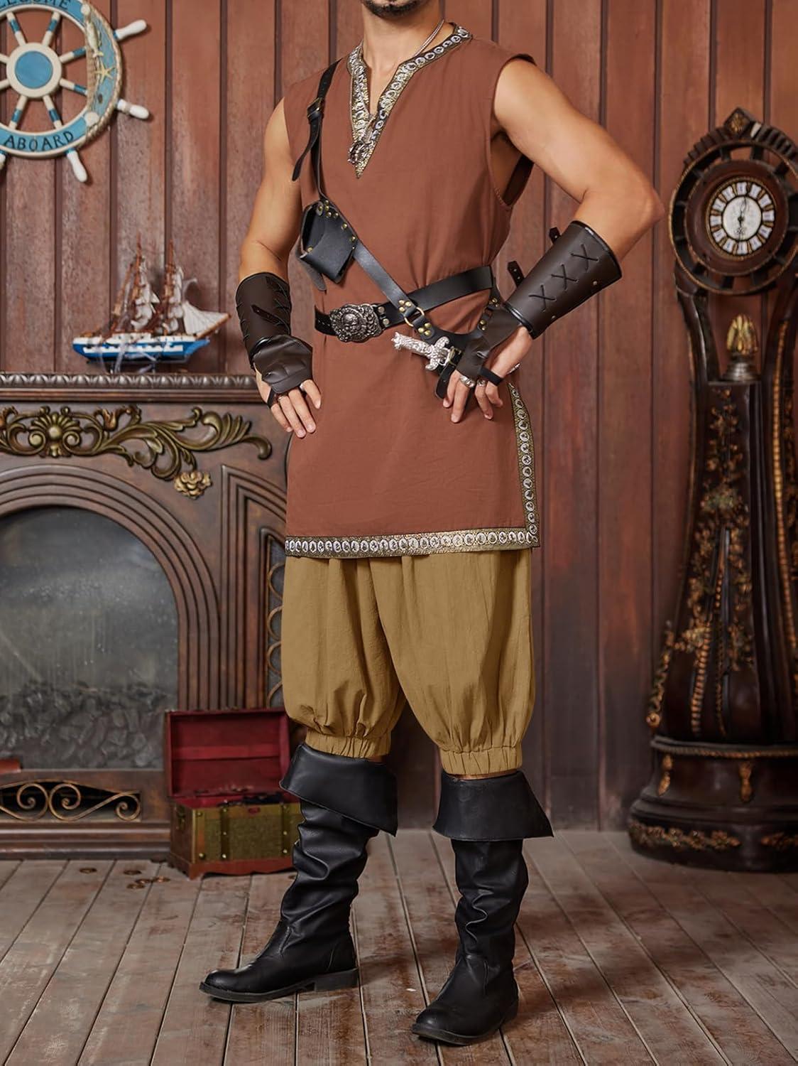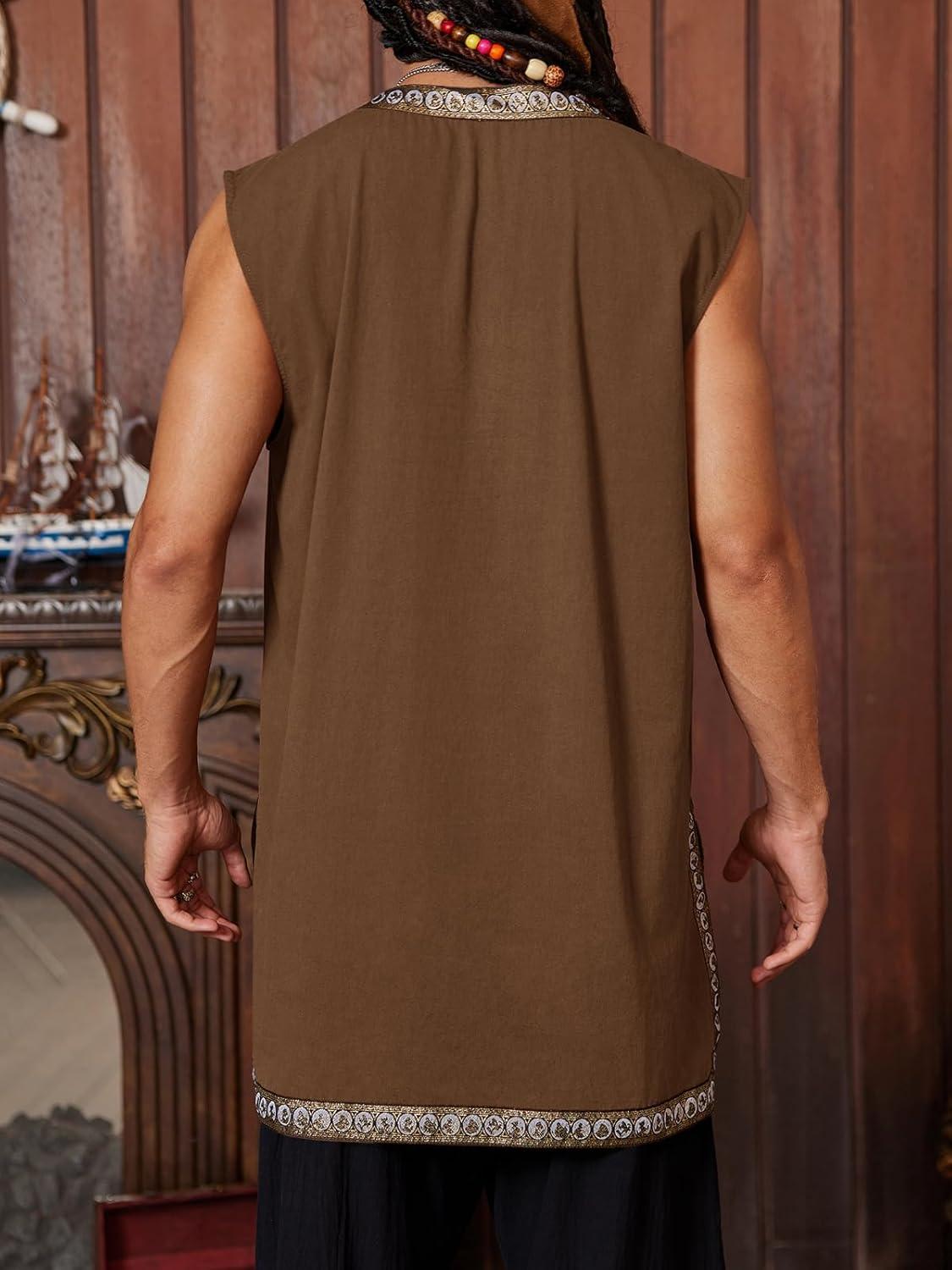 Runcati Mens Medieval Costume Pirate Renaissance Sleeveless Tunic Knight Viking Halloween LARP Shirts(Brown)