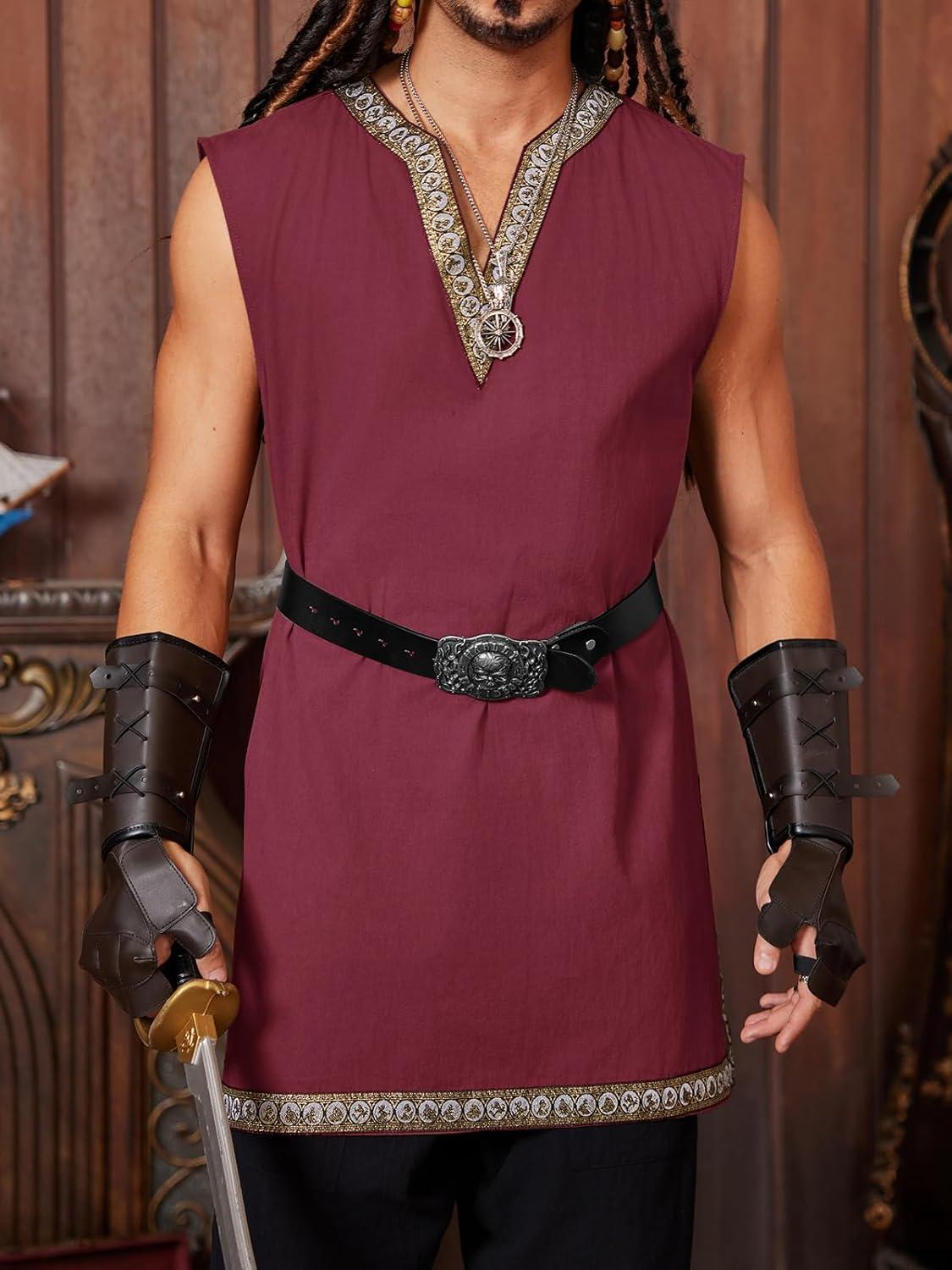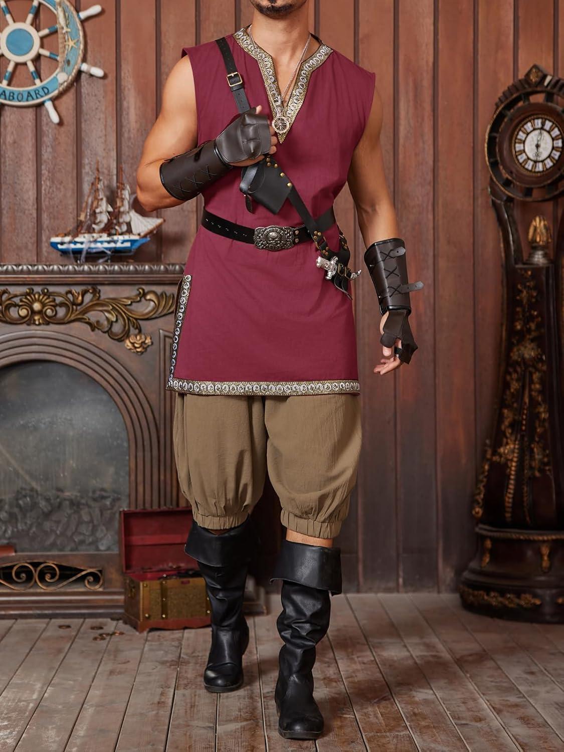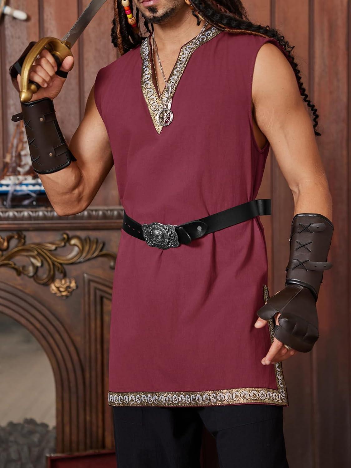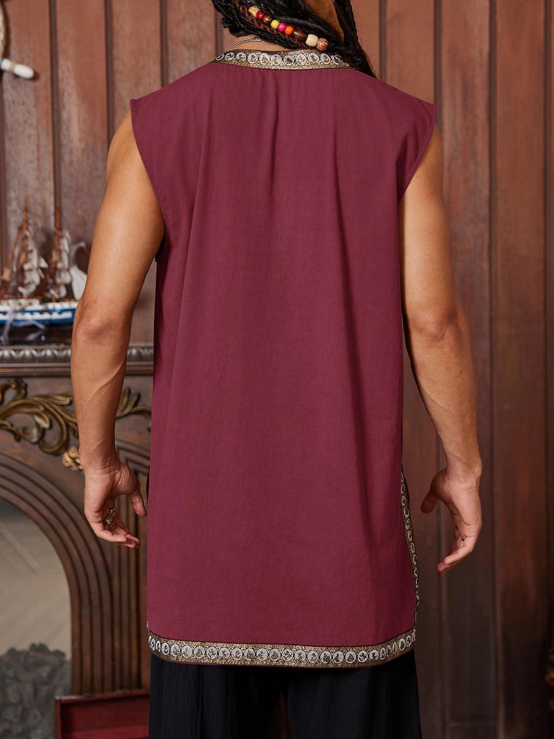 Runcati Mens Medieval Costume Pirate Renaissance Sleeveless Tunic Knight Viking Halloween LARP Shirts(Burgundy)