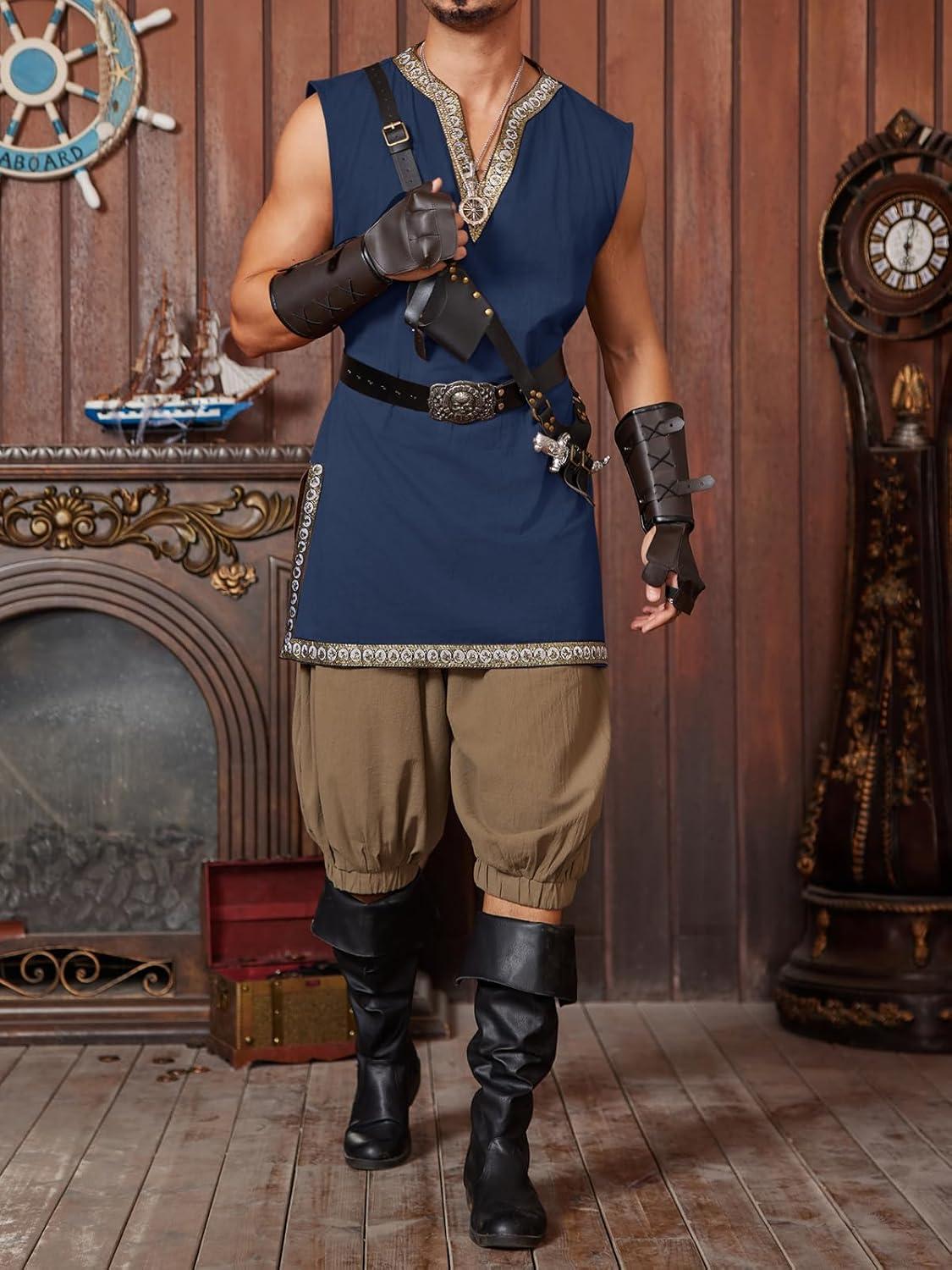 Runcati Mens Medieval Costume Pirate Renaissance Sleeveless Tunic Knight Viking Halloween LARP Shirts(Navy)