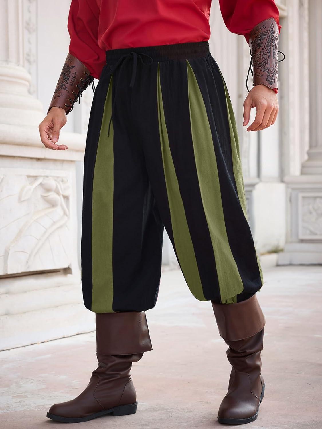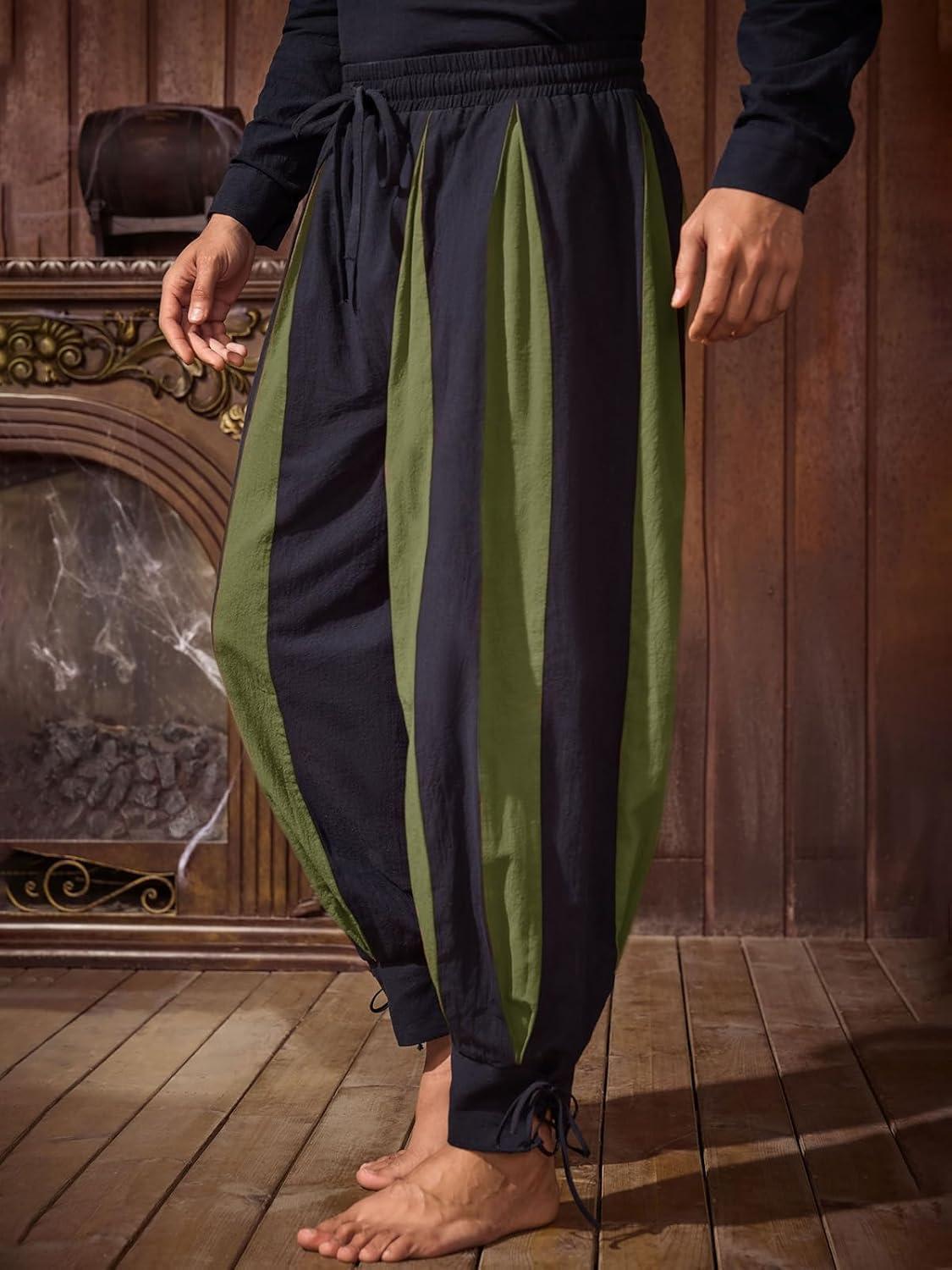 Runcati Mens Medieval Pirate Pants Renaissance Viking Navigator Colonial Cotton Halloween Costume Harem Pants(Army Green)