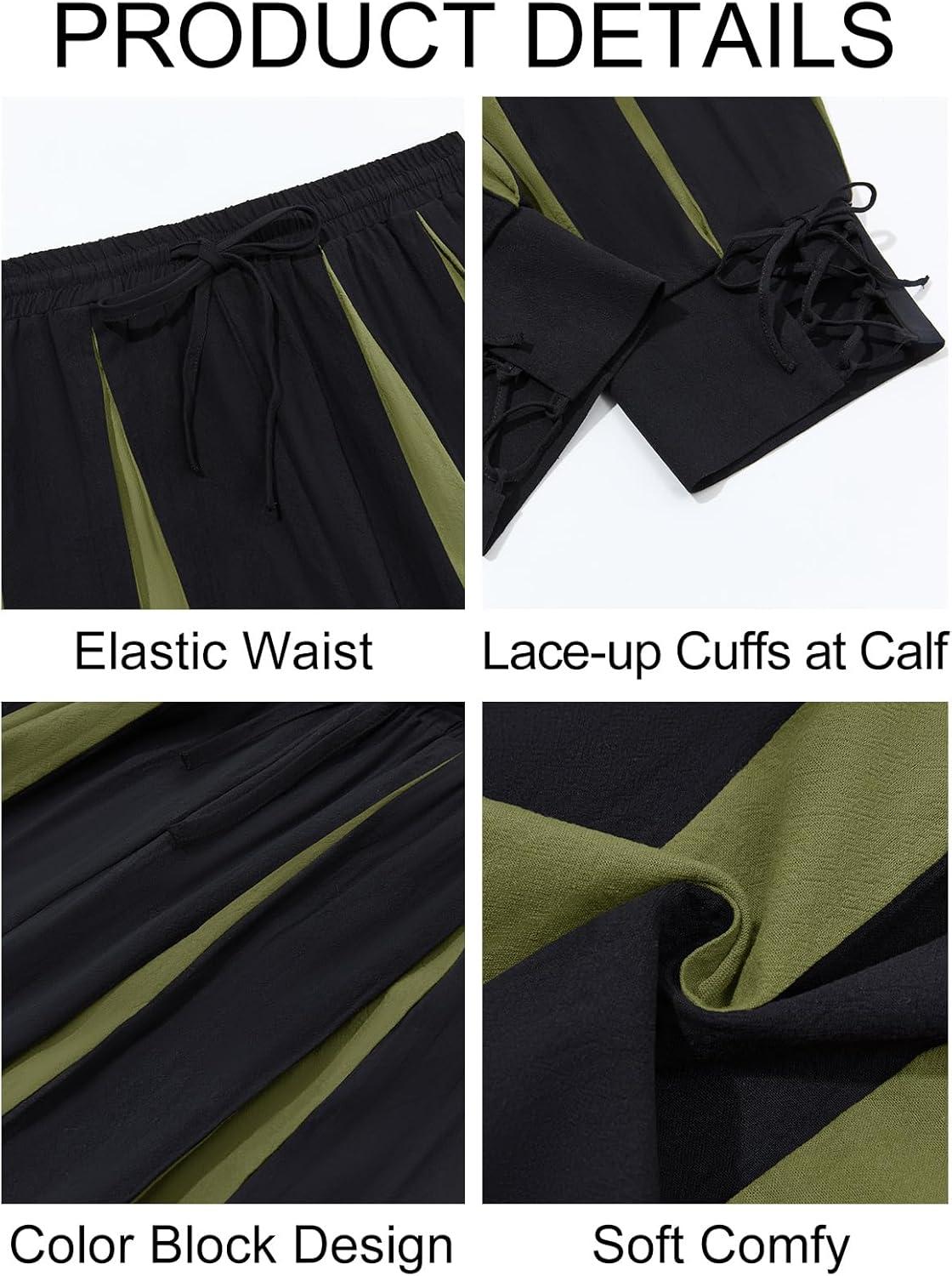 Mens Medieval Ankle Pants Viking Pirate Renaissance Costume Lace Up Tapered Banded Navigator Casual Trousers(01 Army Green)