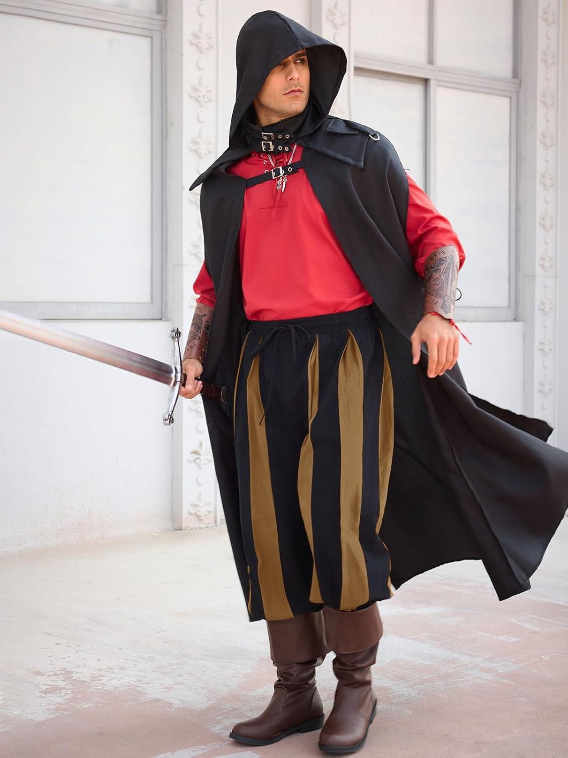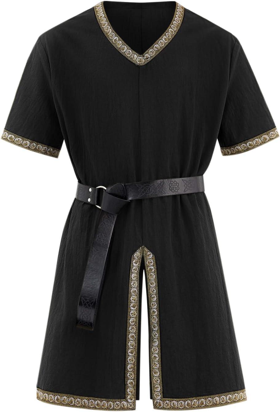 Runcati Mens Medieval Pirate Costume Tunic Renaissance Knight Warrior Viking LARP Halloween Tops(A-black)