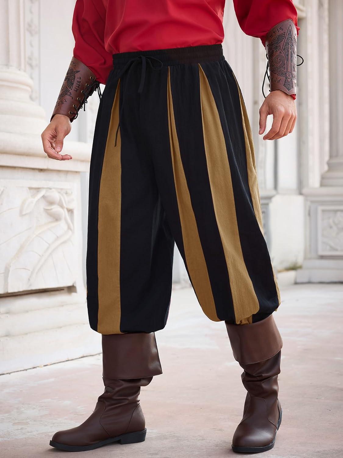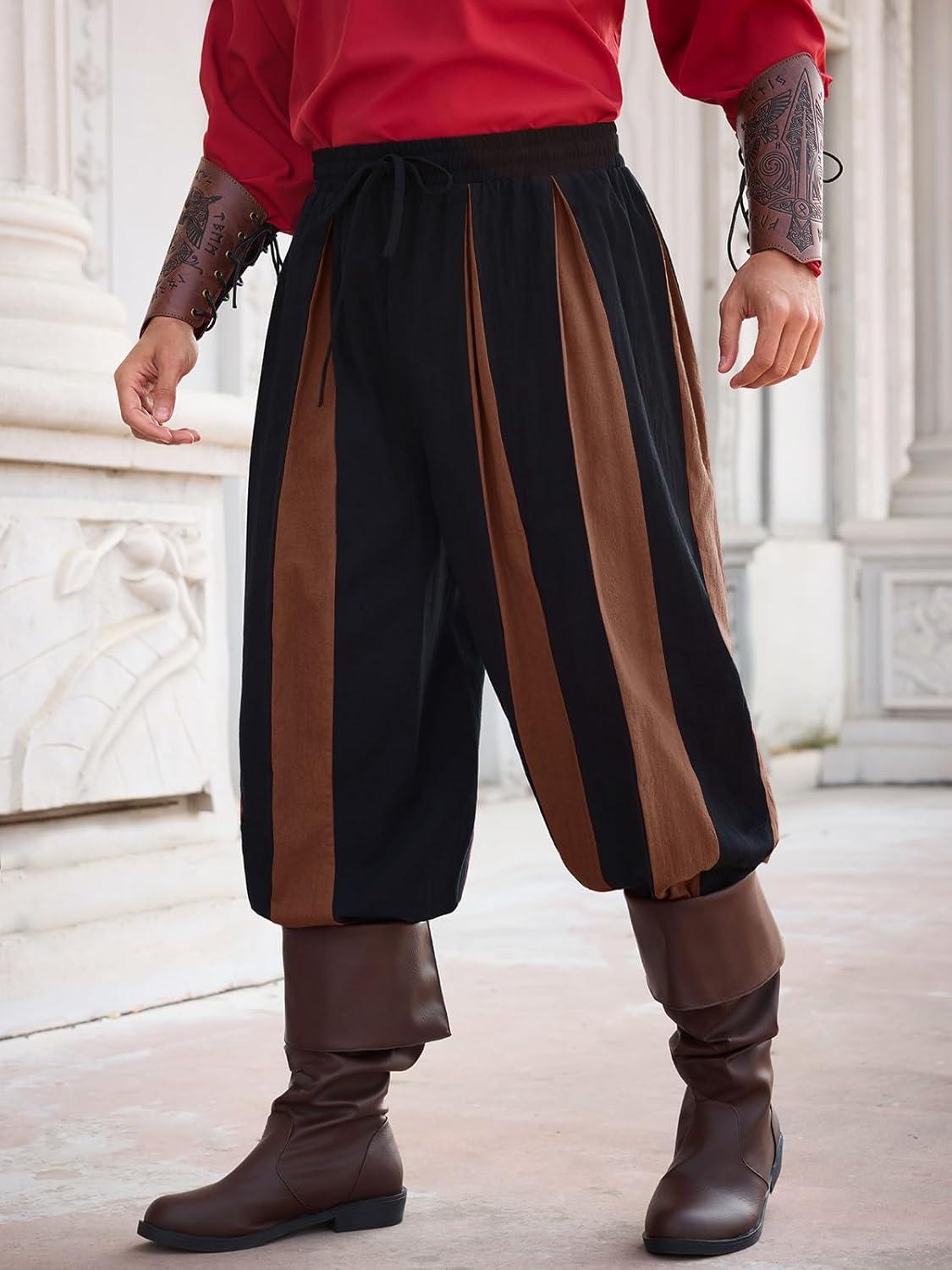 Runcati Mens Medieval Renaissance Pants Viking Pirate Mercenary Gothic Costume Cosplay Navigator Trousers Black