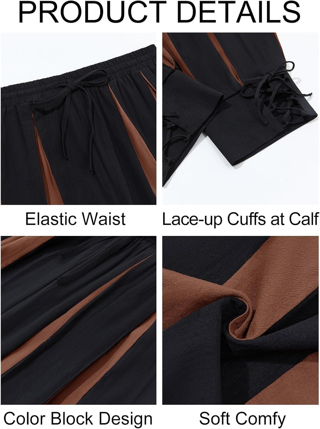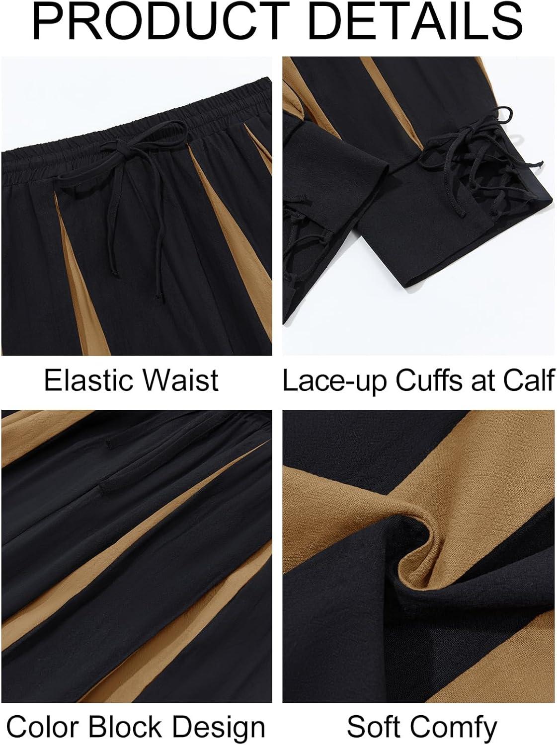 Mens Medieval Ankle Pants Viking Pirate Renaissance Costume Lace Up Tapered Banded Navigator Casual Trousers(01 Black)