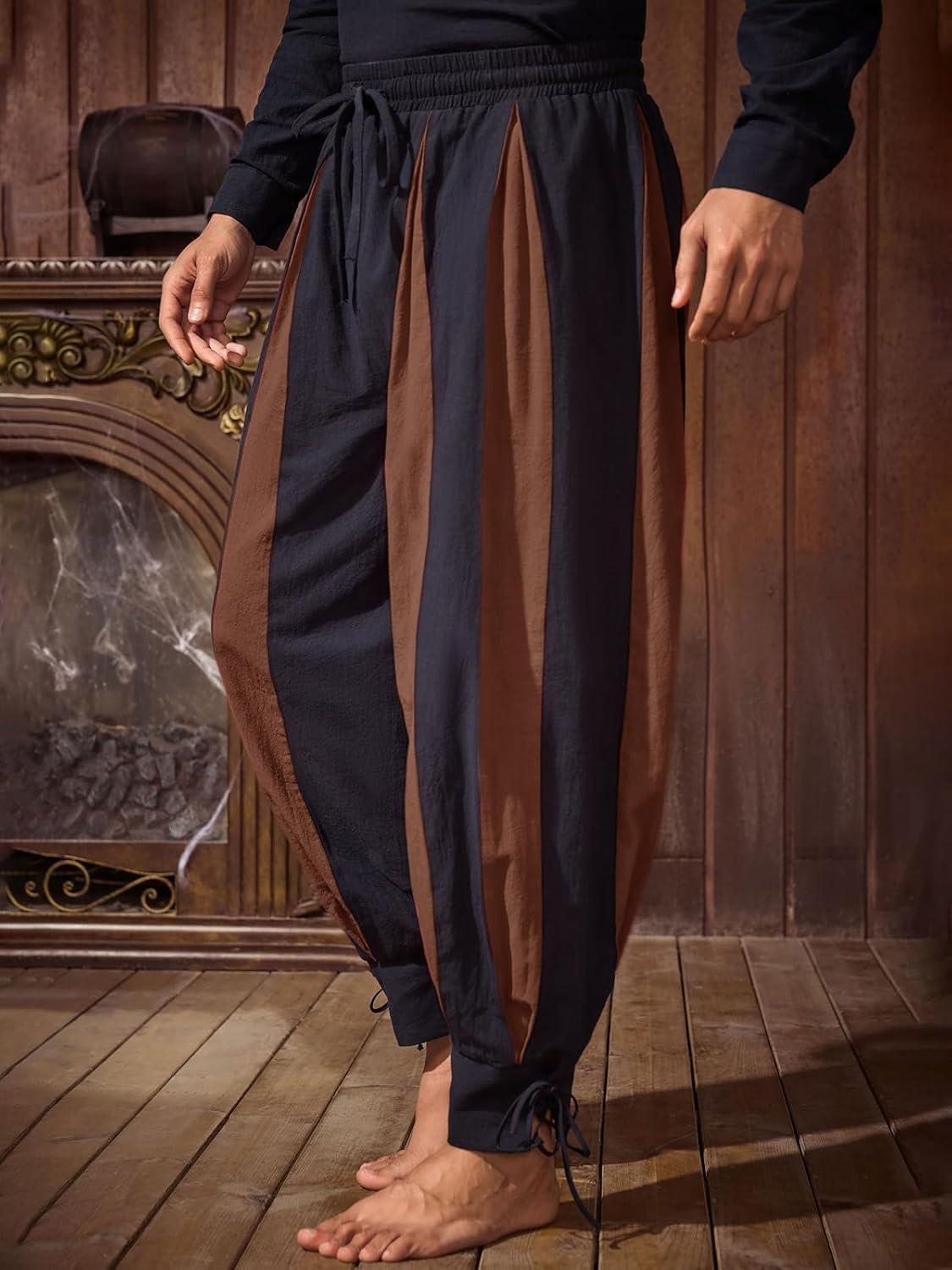 Runcati Mens Medieval Pirate Pants Renaissance Viking Navigator Colonial Cotton Halloween Costume Harem Pants(Brown)