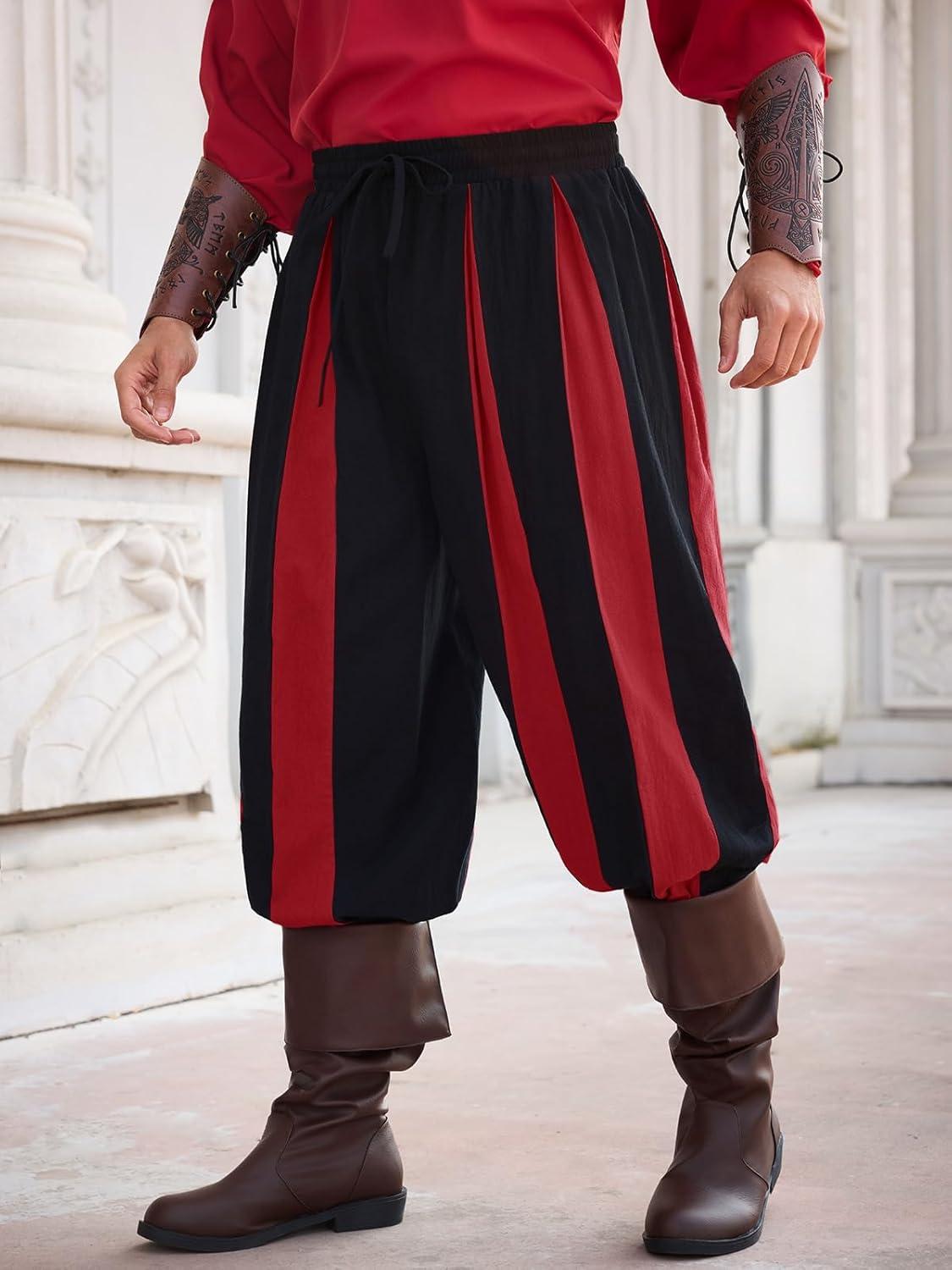 Runcati Mens Medieval Pirate Pants Renaissance Viking Navigator Colonial Cotton Halloween Costume Harem Pants(Red)