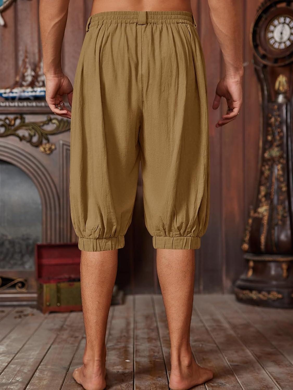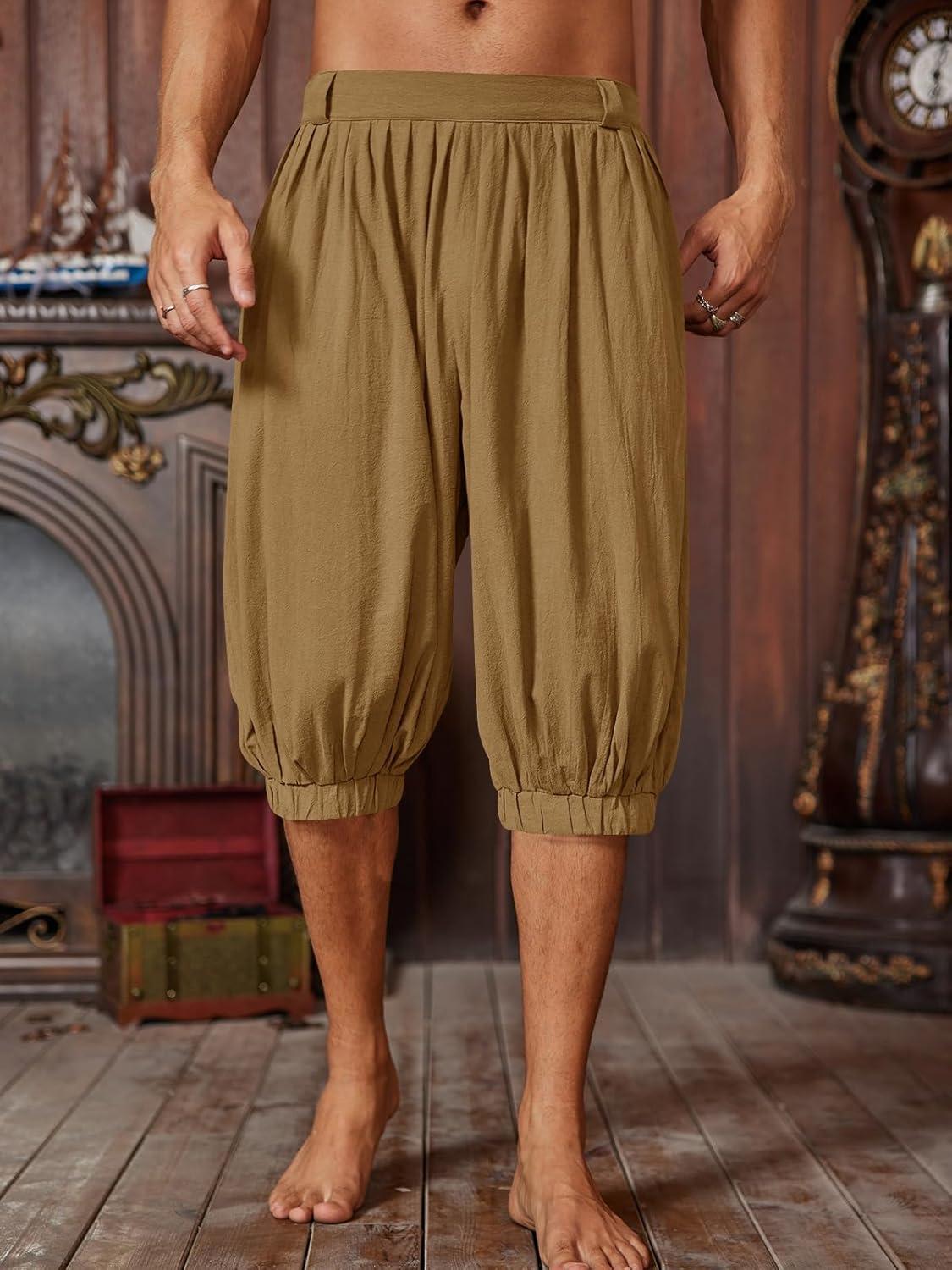 Runcati Mens Medieval Pirate Shorts Renaissance Viking Colonial Linen Halloween Costume Pants(Brown)