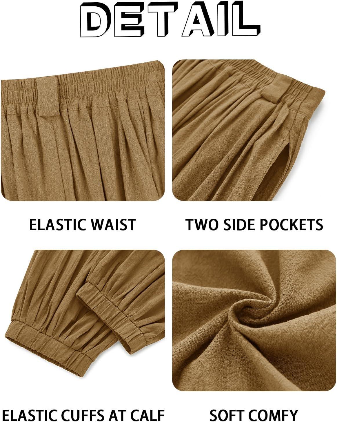 Runcati Mens Medieval Ankle Pants Renaissance Viking Pirate Pants Lace Up Cotton Tapered Halloween Costume Trousers(Khaki)