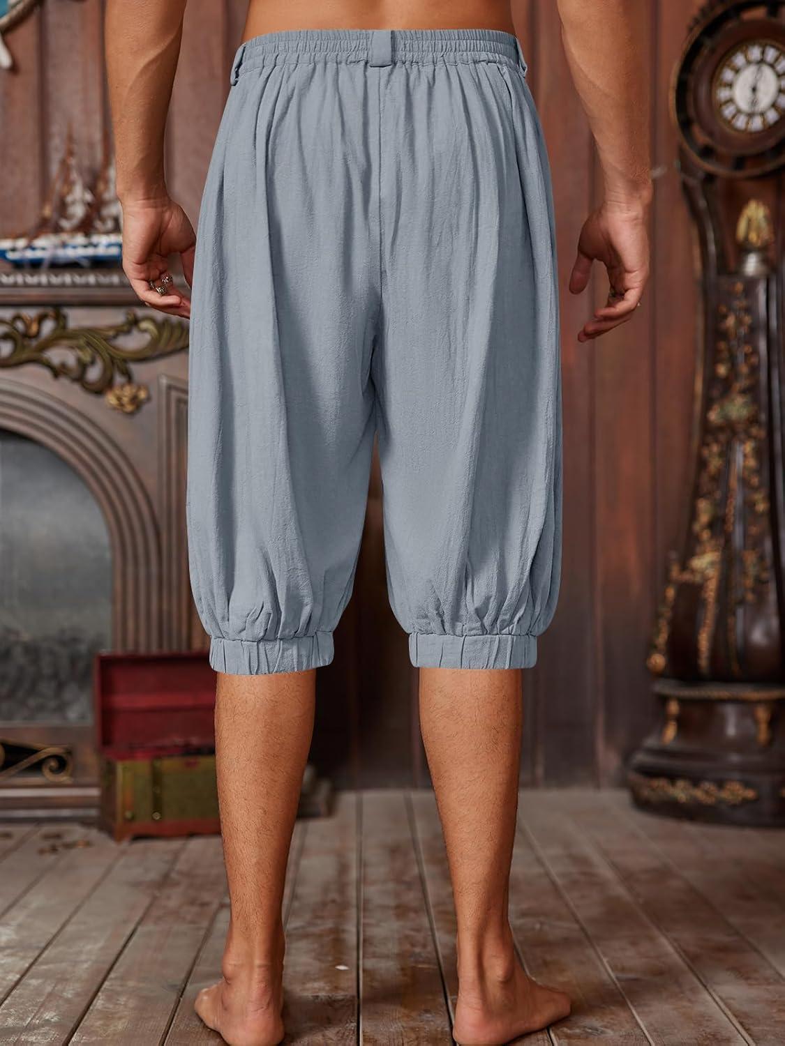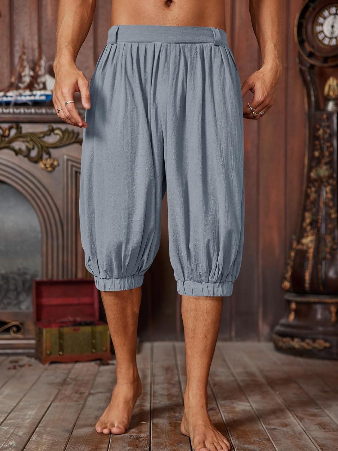 Runcati Mens Medieval Pirate Shorts Renaissance Viking Colonial Linen Halloween Costume Pants(Gray)