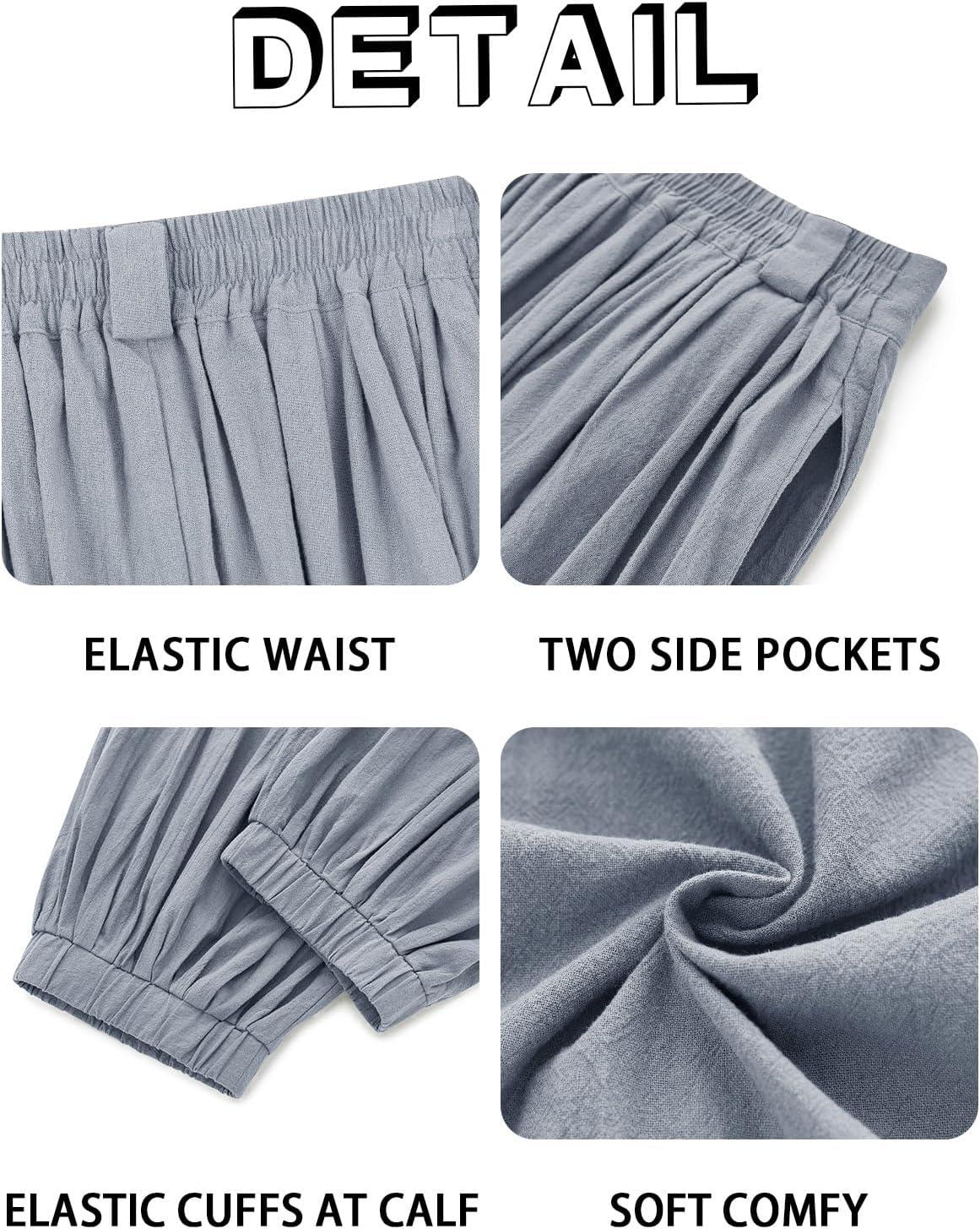Runcati Mens Medieval Ankle Pants Renaissance Viking Pirate Lace Up Tapered Halloween Linen Costume Trousers(Gray)