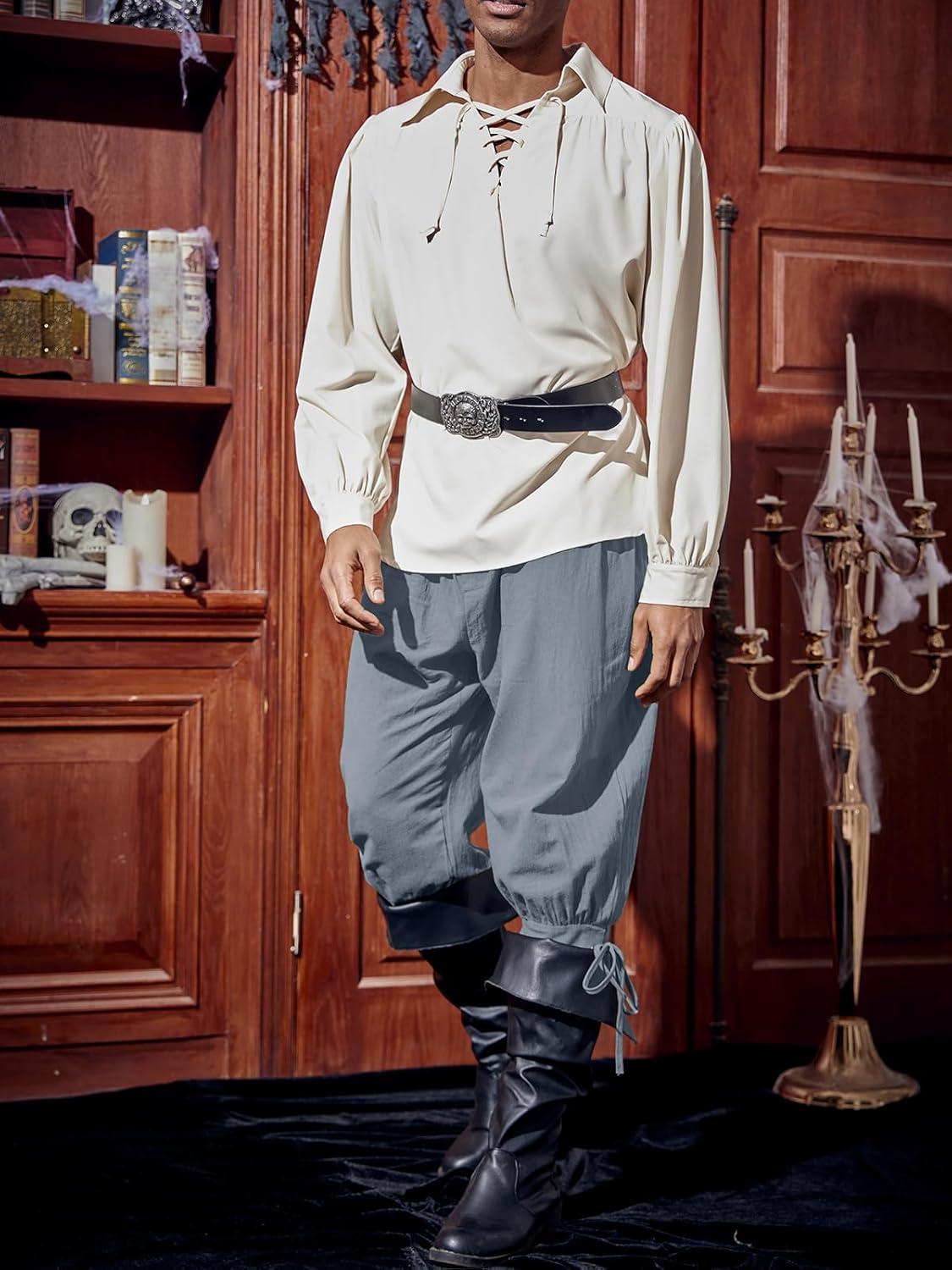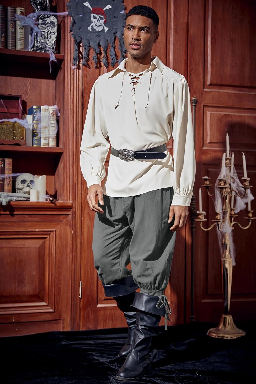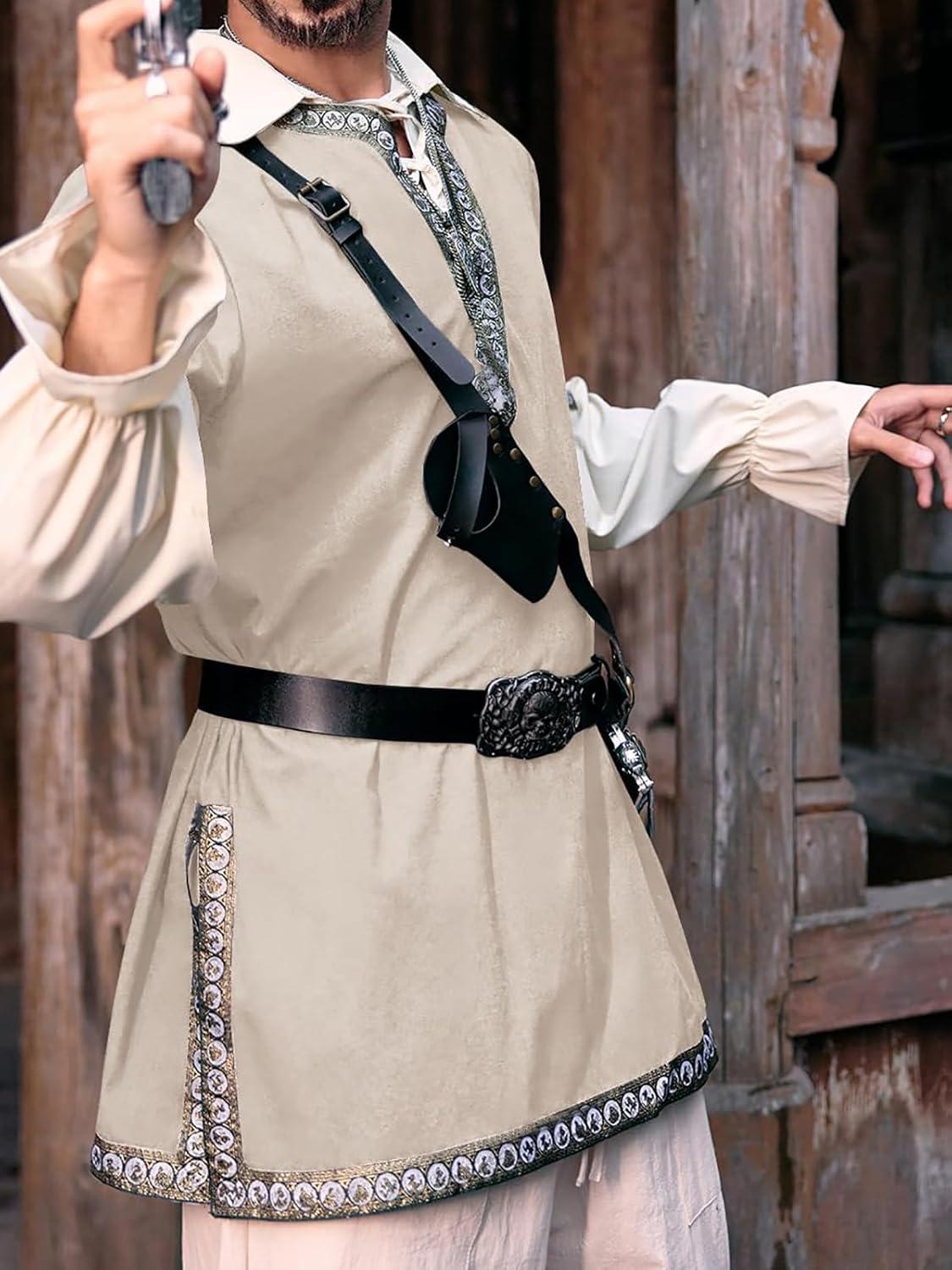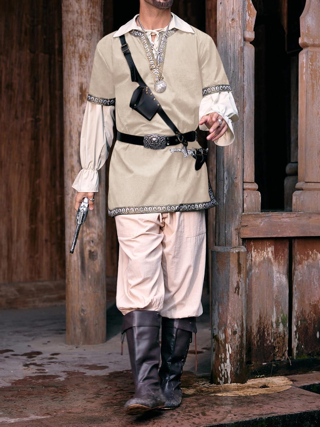 • Runcati Mens Medieval Costume Halloween Renaissance Tunic Viking Knight Pirate Warrior LARP Shirts(Beige)
