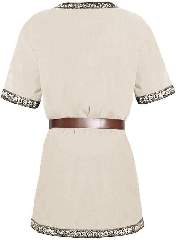 Runcati Mens Medieval Costume Halloween Renaissance Tunic Viking Knight Pirate Warrior LARP Shirts(Brown)