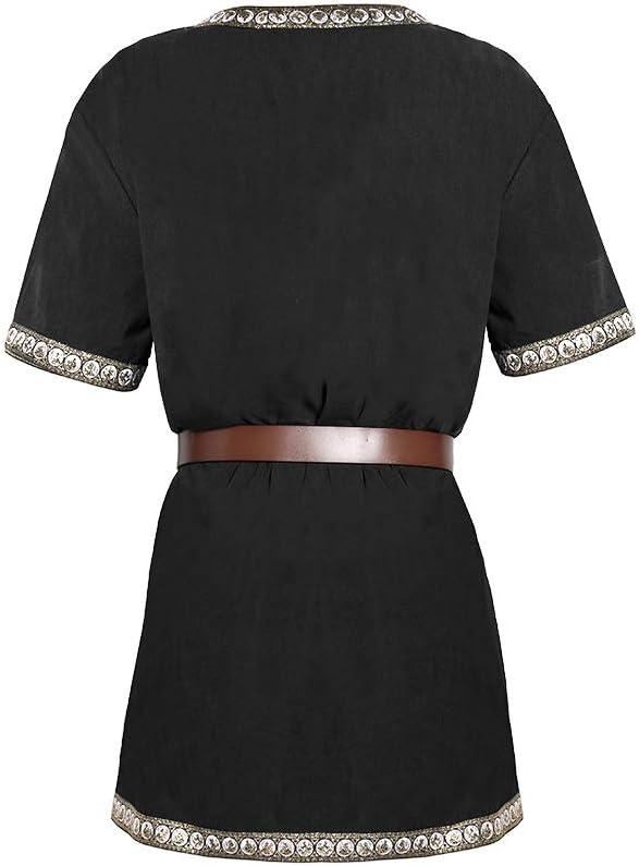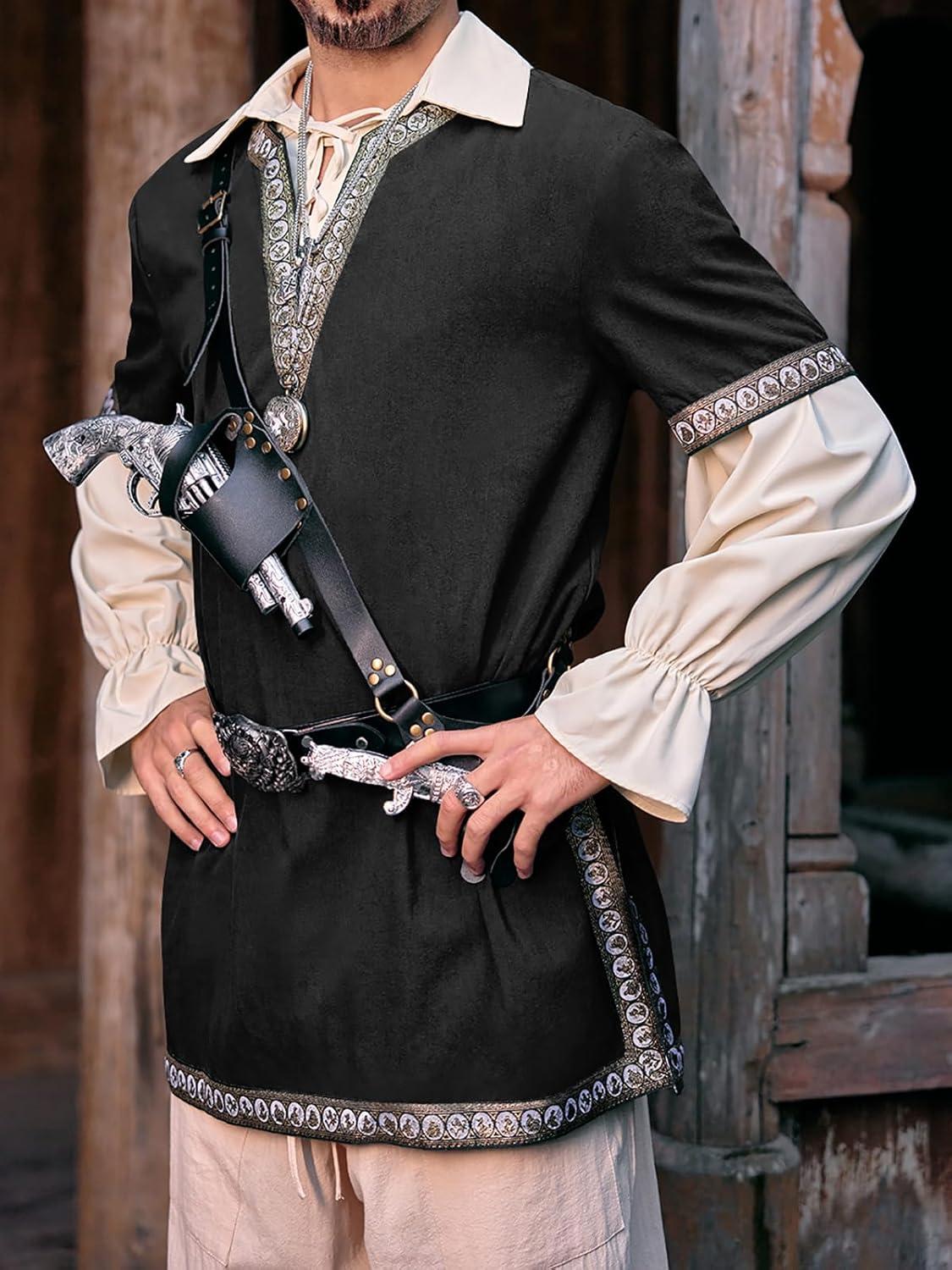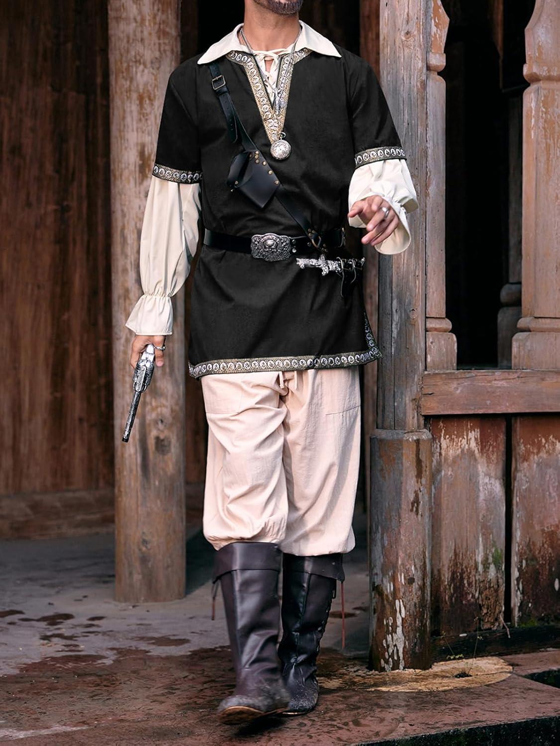 • Runcati Mens Medieval Costume Halloween Renaissance Tunic Viking Knight Pirate Warrior LARP Shirts(Black)