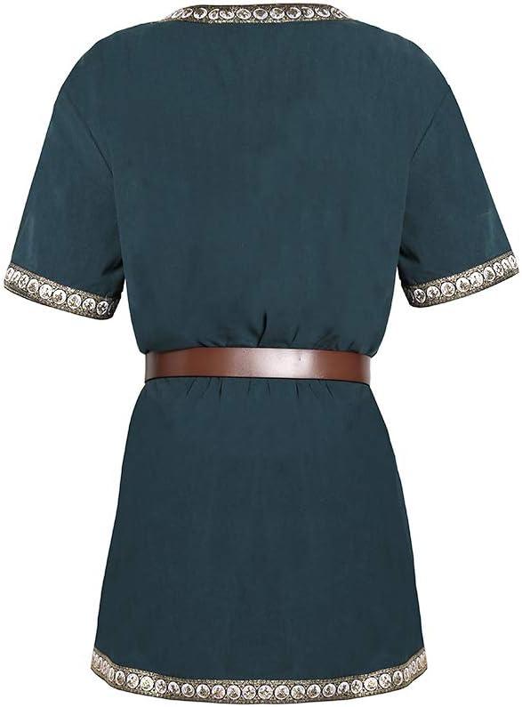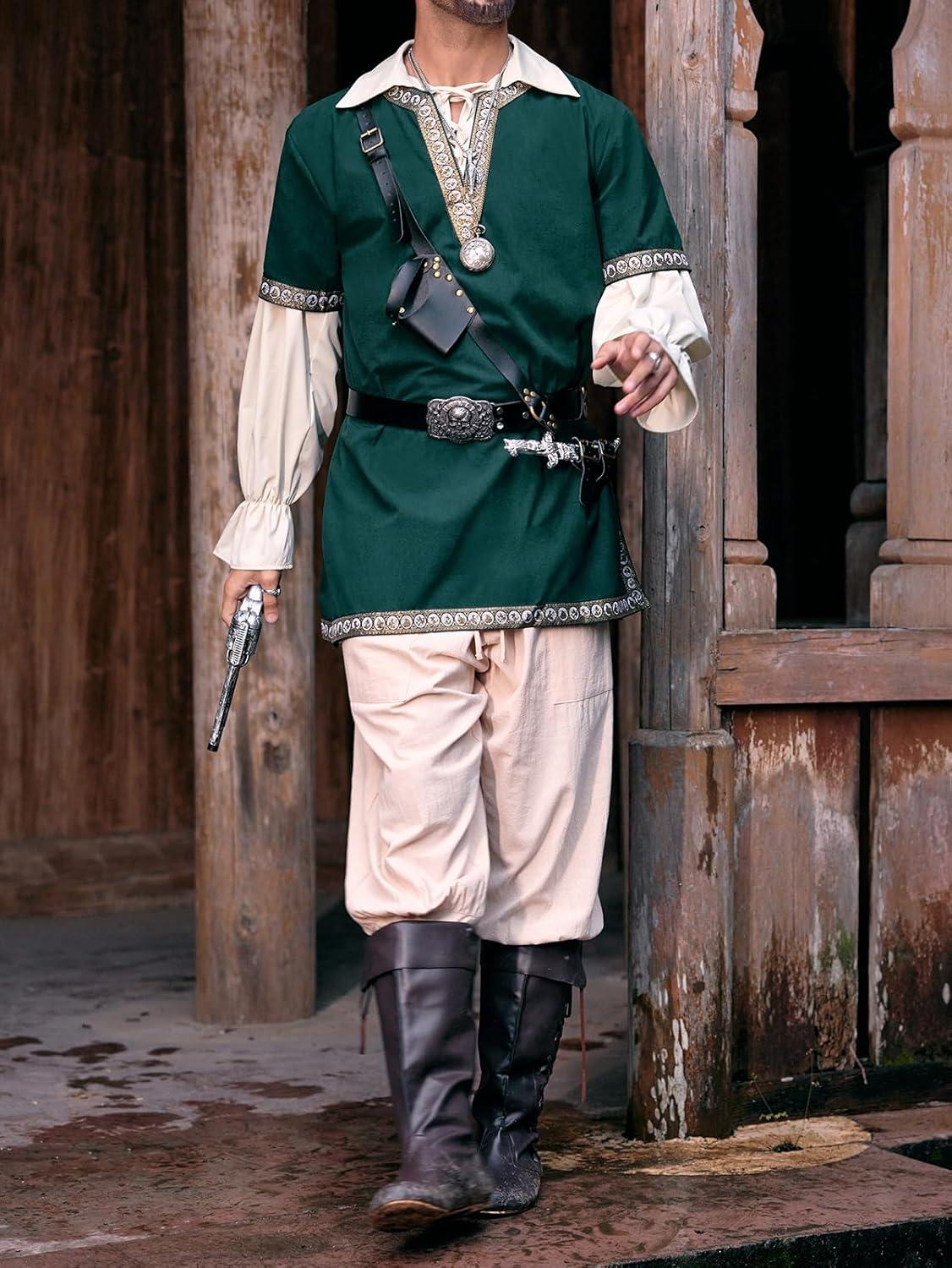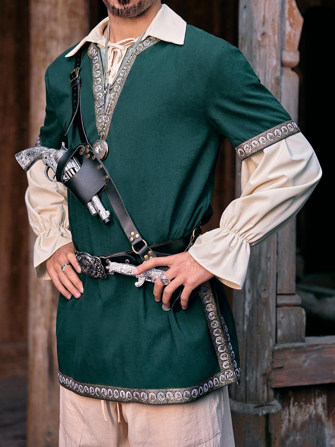 • Runcati Mens Medieval Costume Halloween Renaissance Tunic Viking Knight Pirate Warrior LARP Shirts(Green)