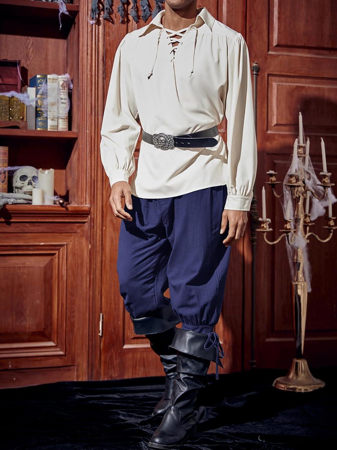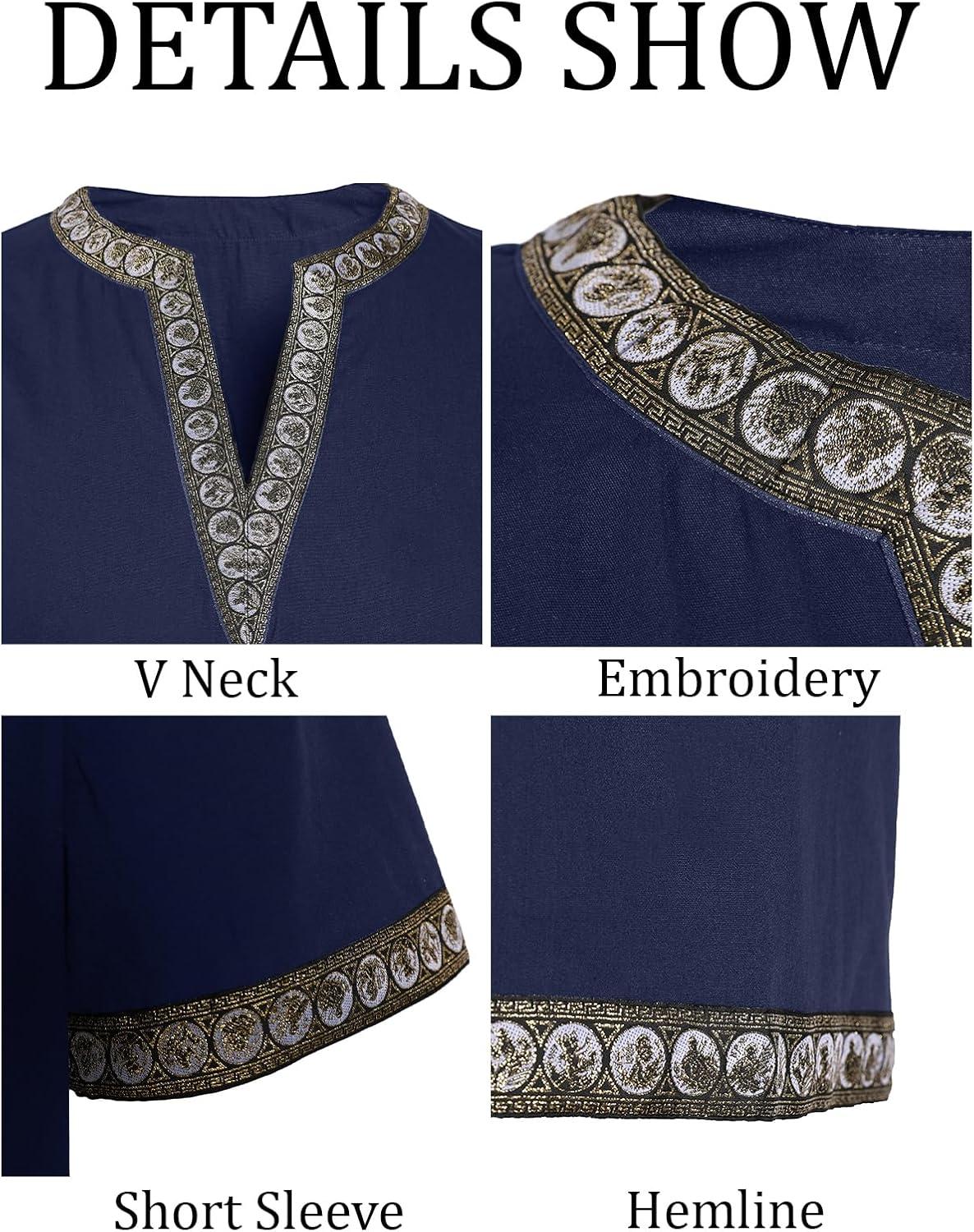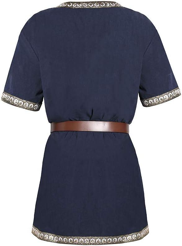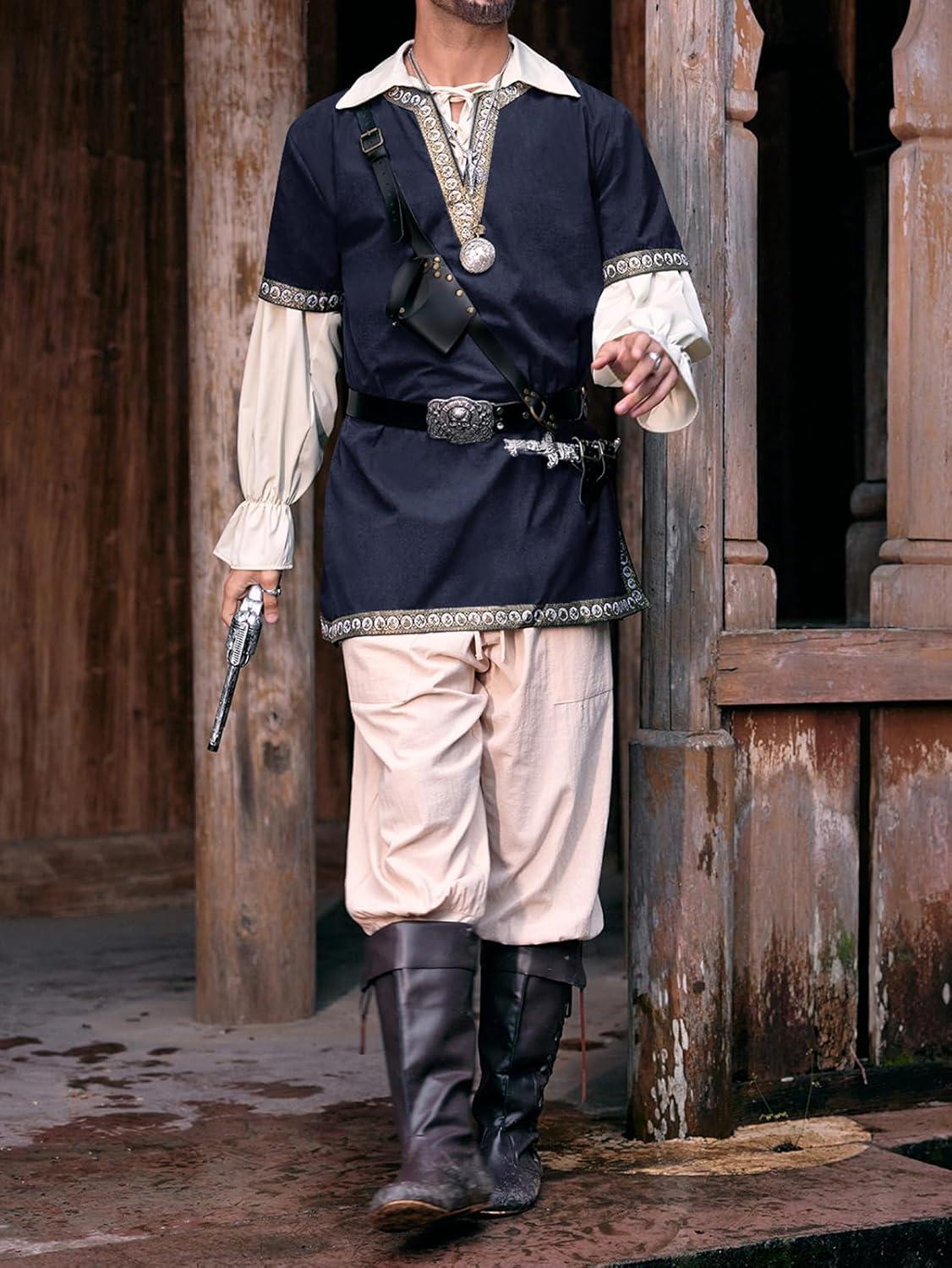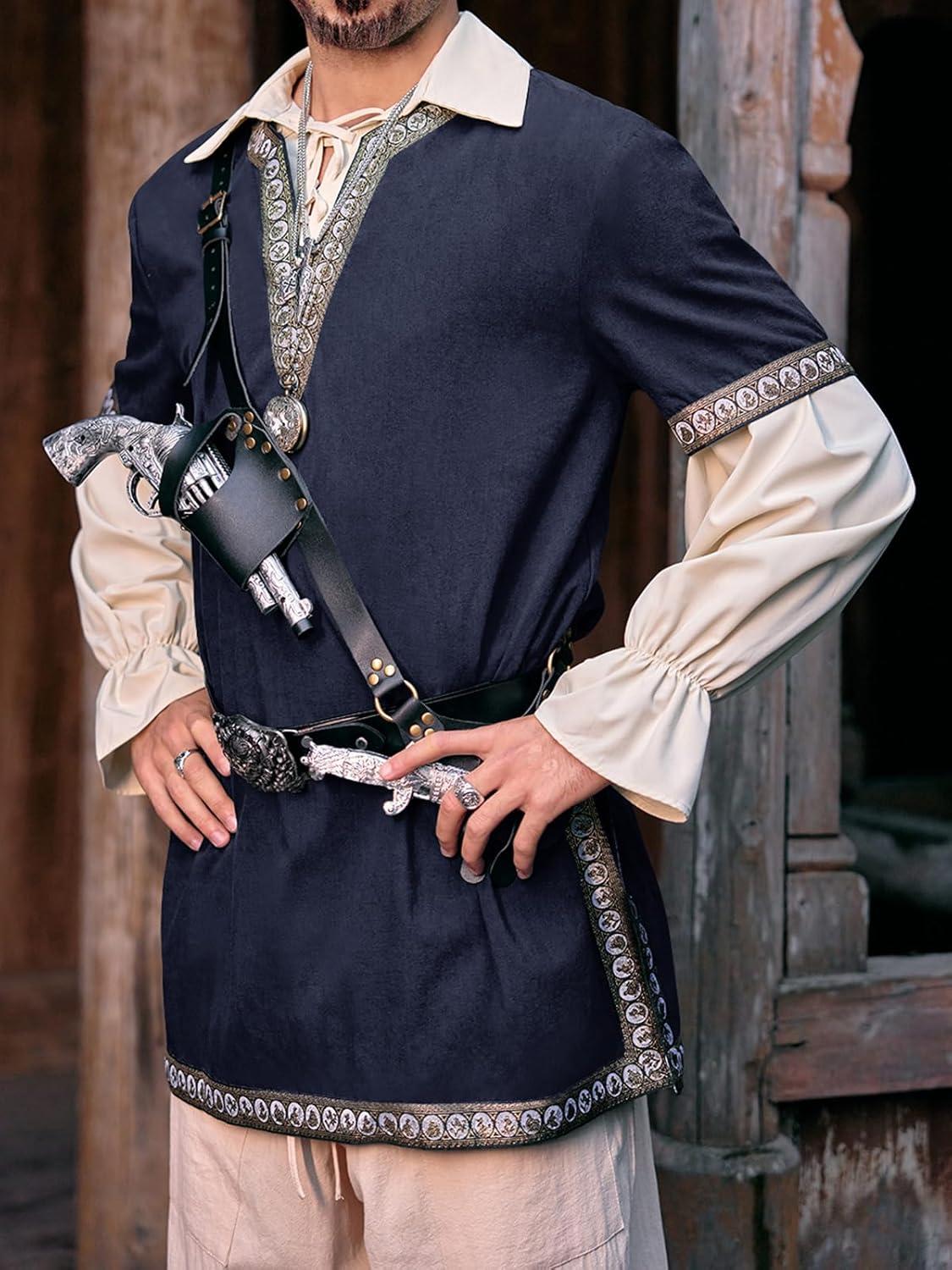 • Runcati Mens Medieval Costume Halloween Renaissance Tunic Viking Knight Pirate Warrior LARP Shirts(Navy)