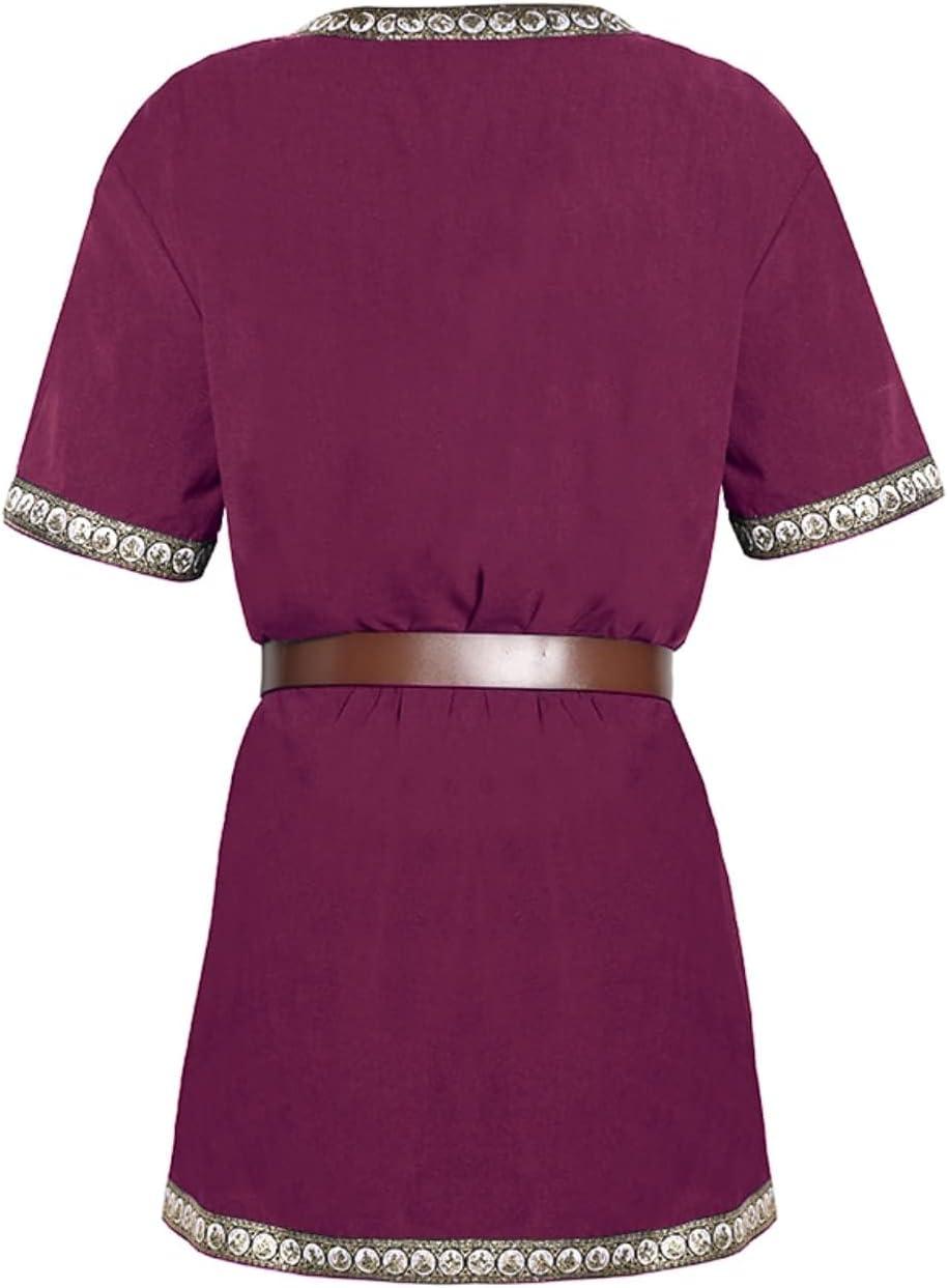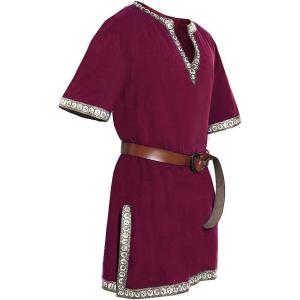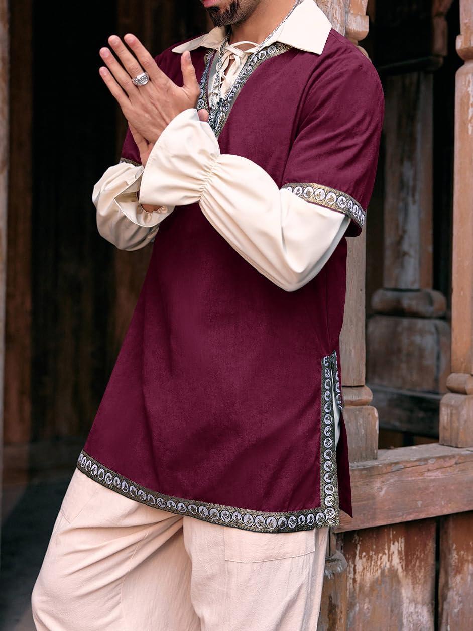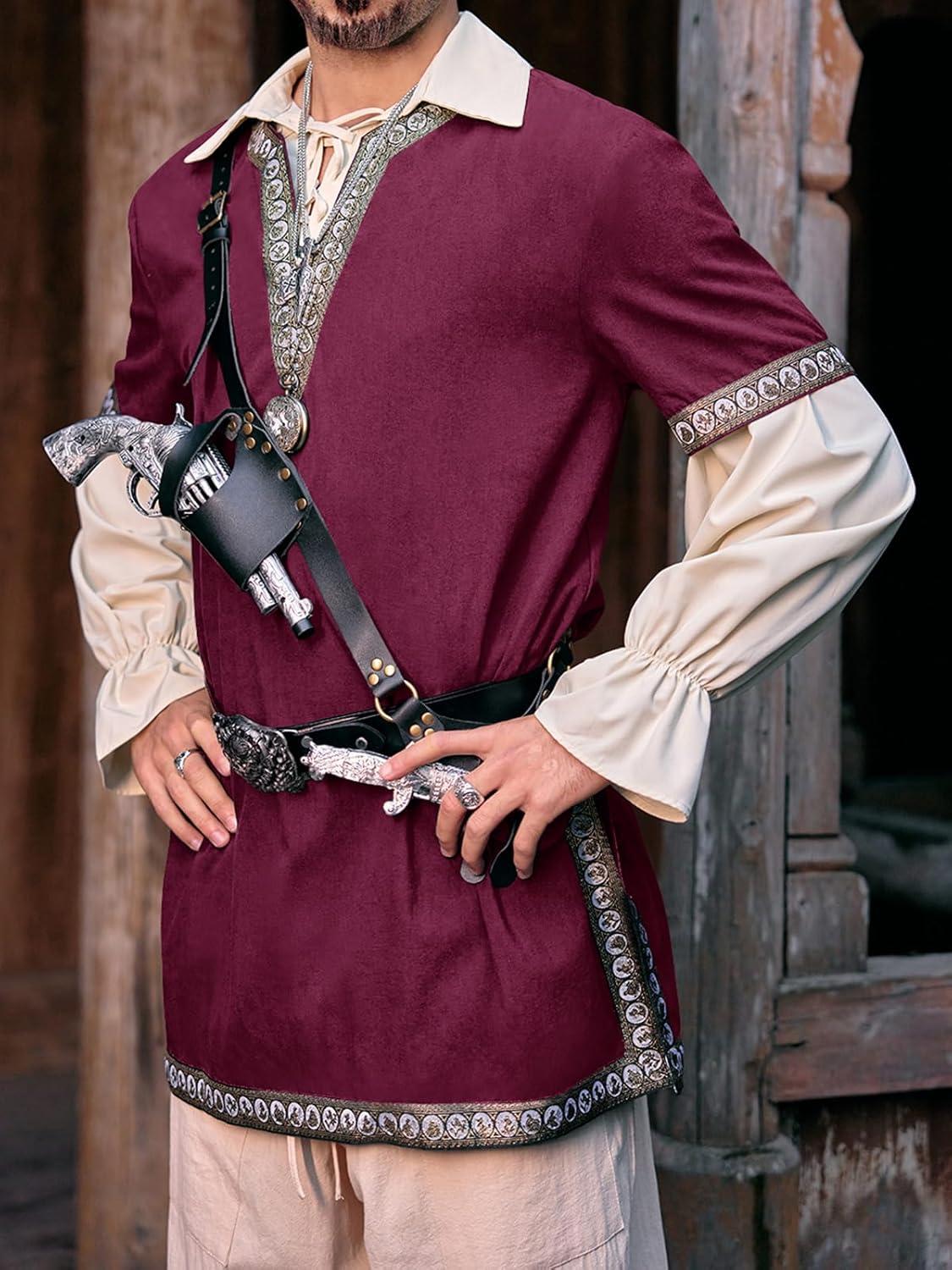 • Runcati Mens Medieval Costume Halloween Renaissance Tunic Viking Knight Pirate Warrior LARP Shirts(Wine Red)