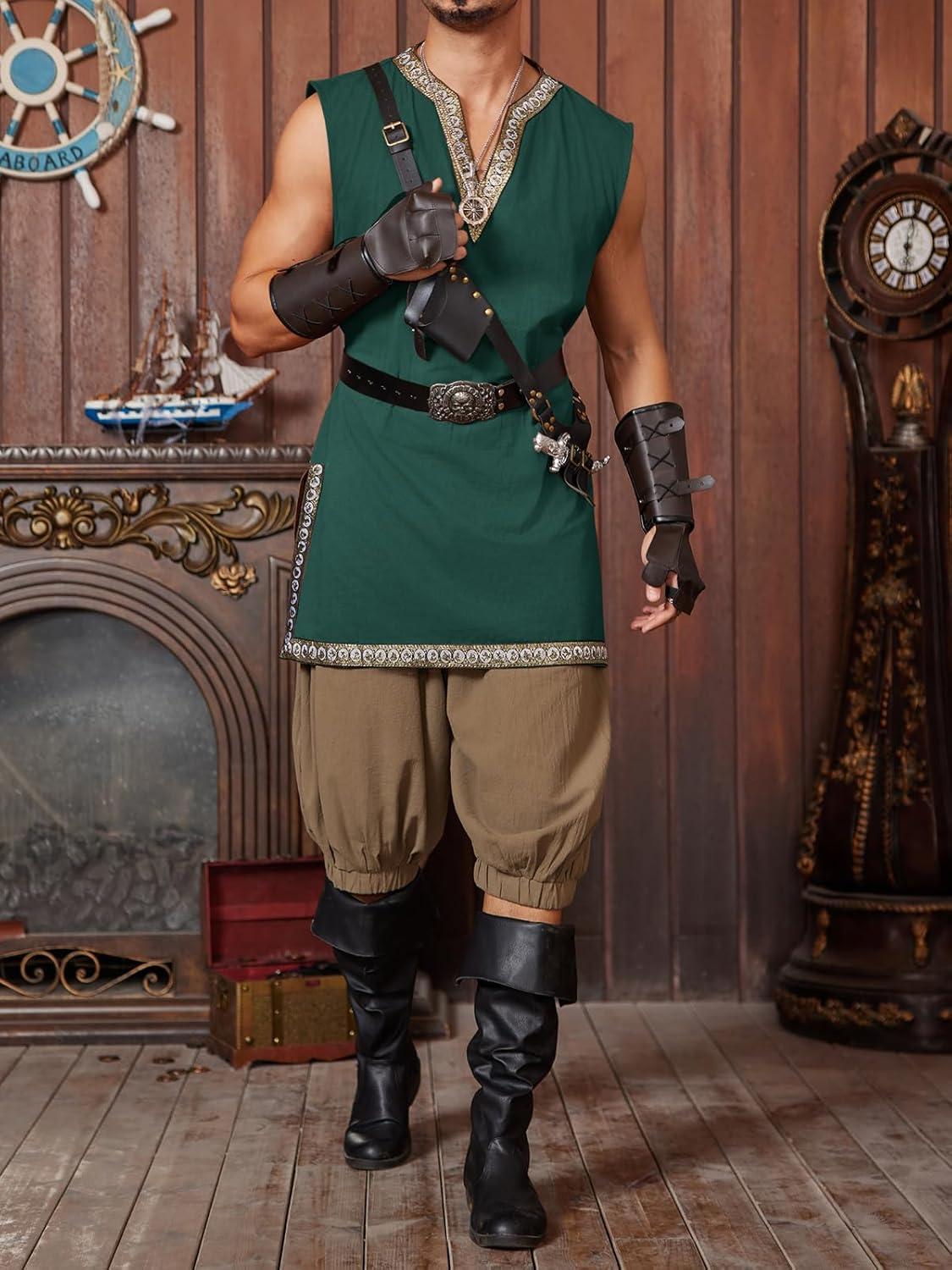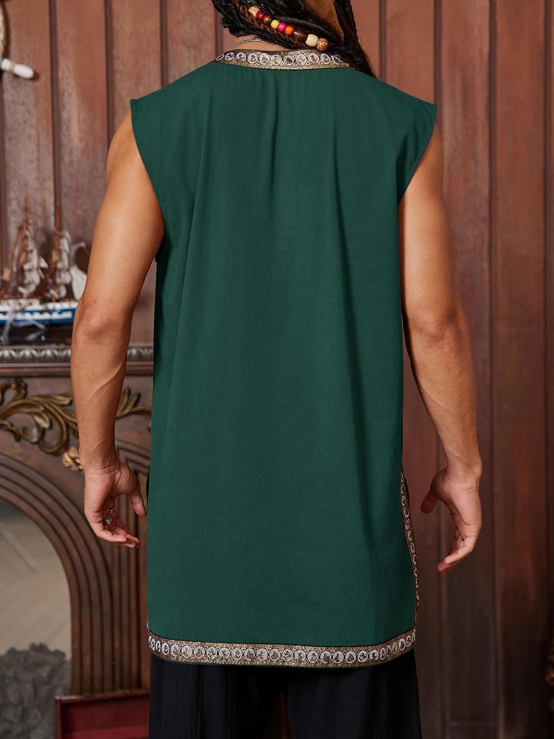• Runcati Mens Medieval Costume Pirate Renaissance Sleeveless Tunic Knight Viking Halloween LARP Shirts(Army Green)