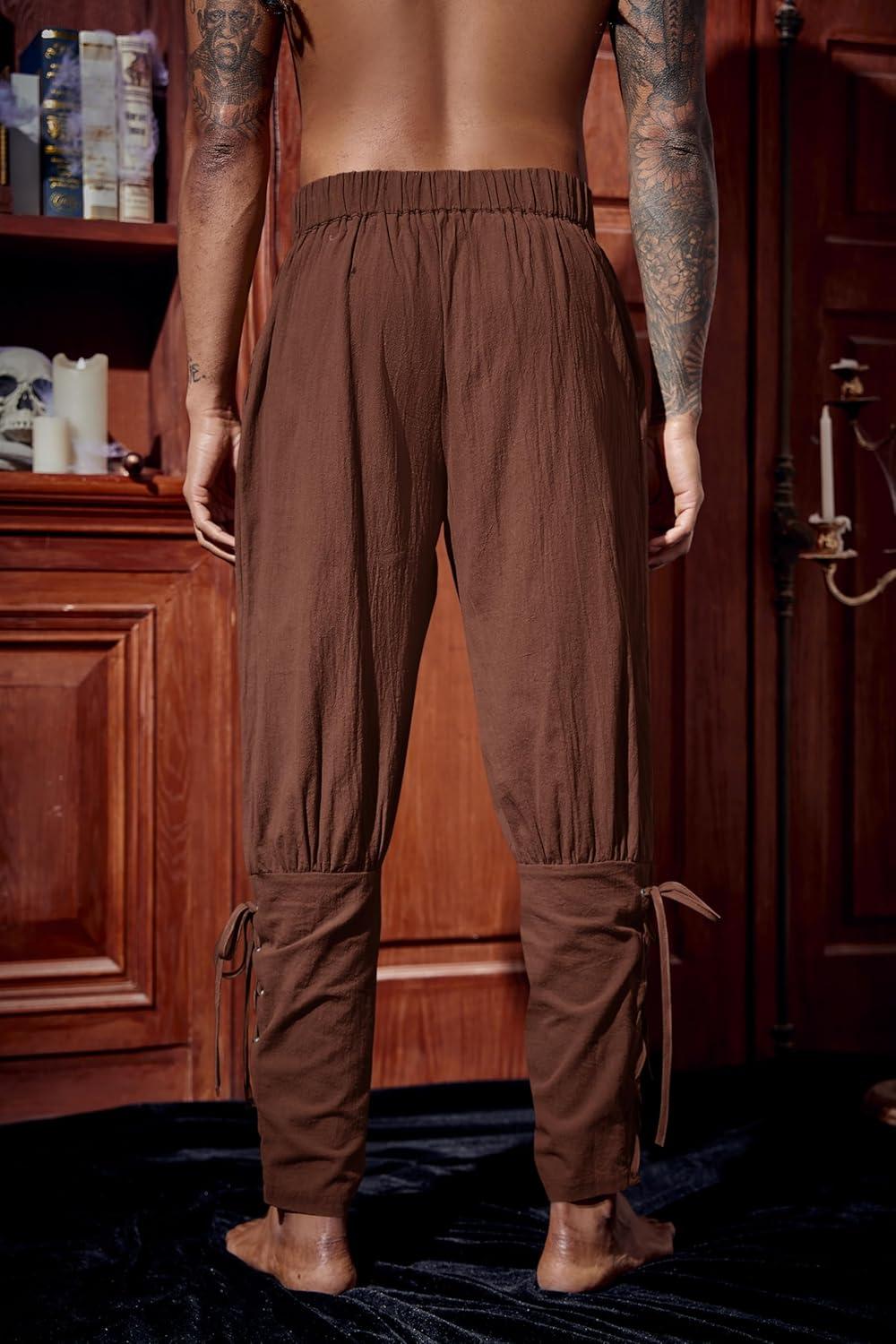 • Runcati Mens Medieval Ankle Pants Renaissance Viking Pirate Pants Lace Up Cotton Tapered Halloween Costume Trousers(Coffee)