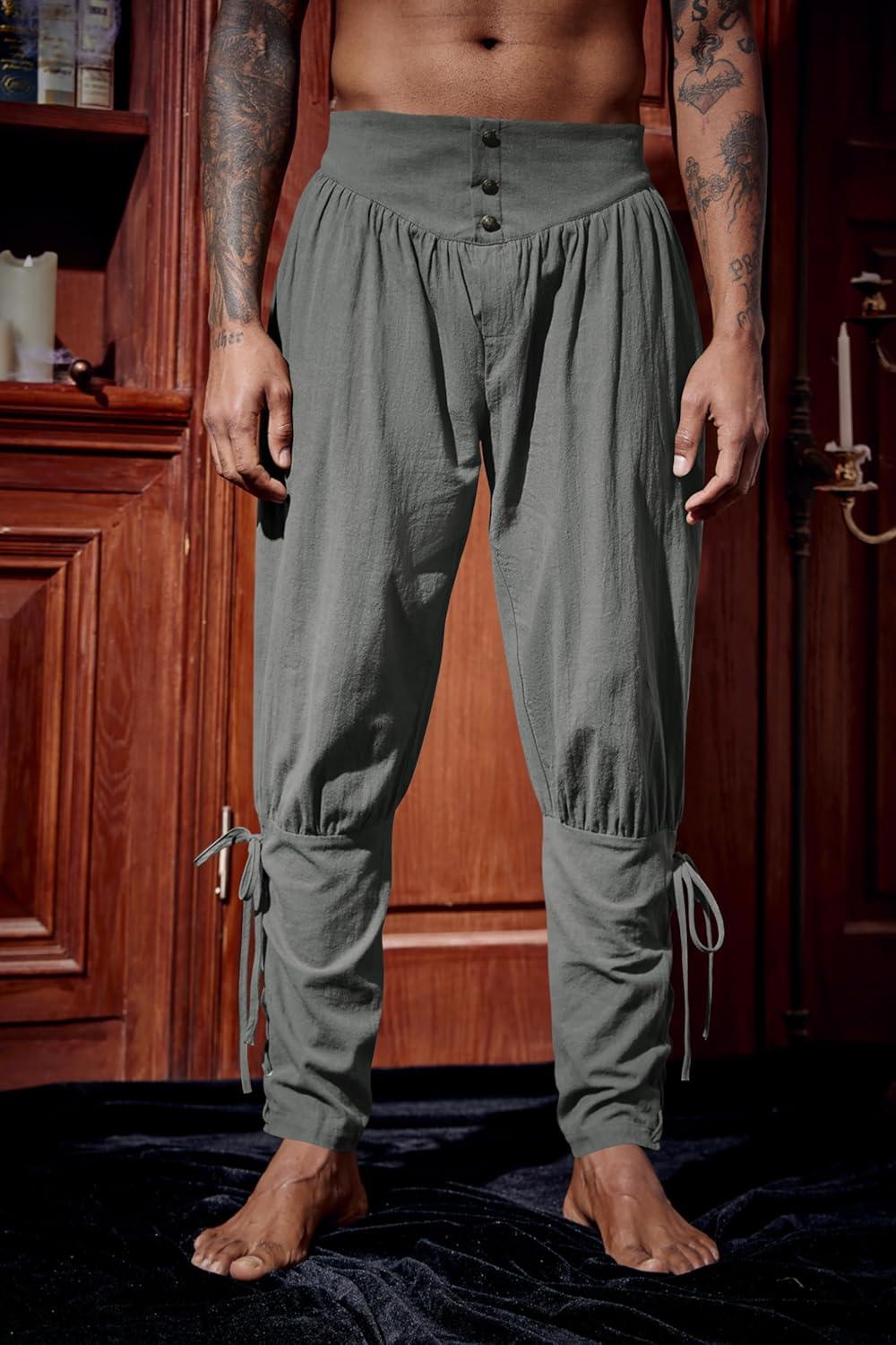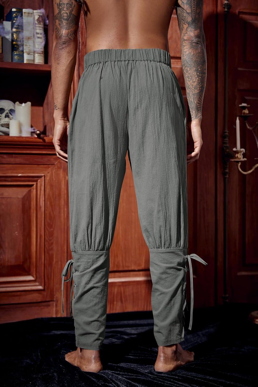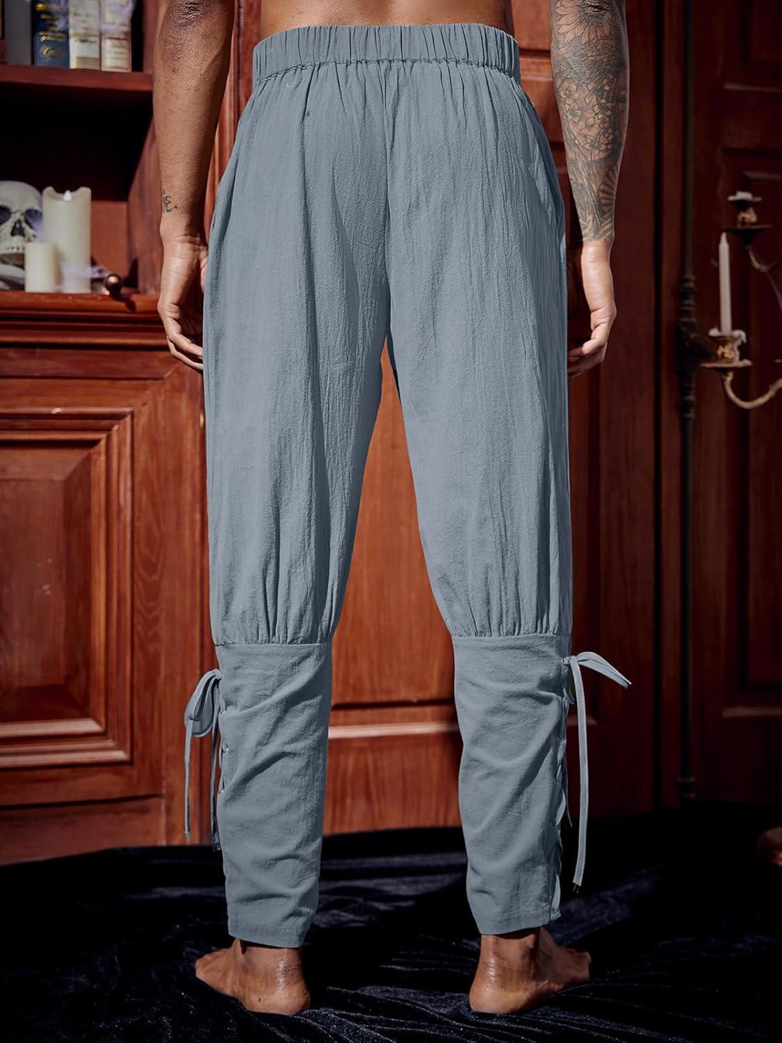 • Runcati Mens Medieval Ankle Pants Renaissance Viking Pirate Lace Up Tapered Halloween Linen Costume Trousers(Gray)