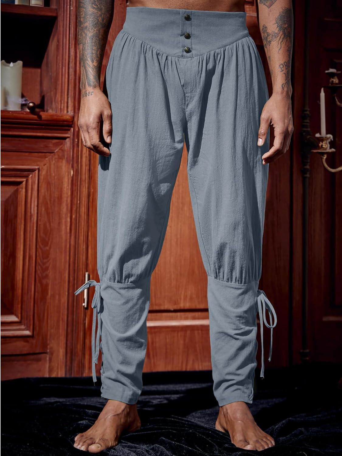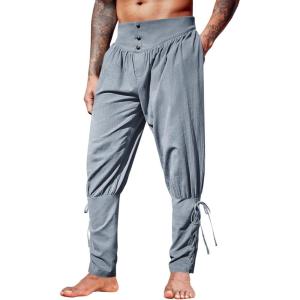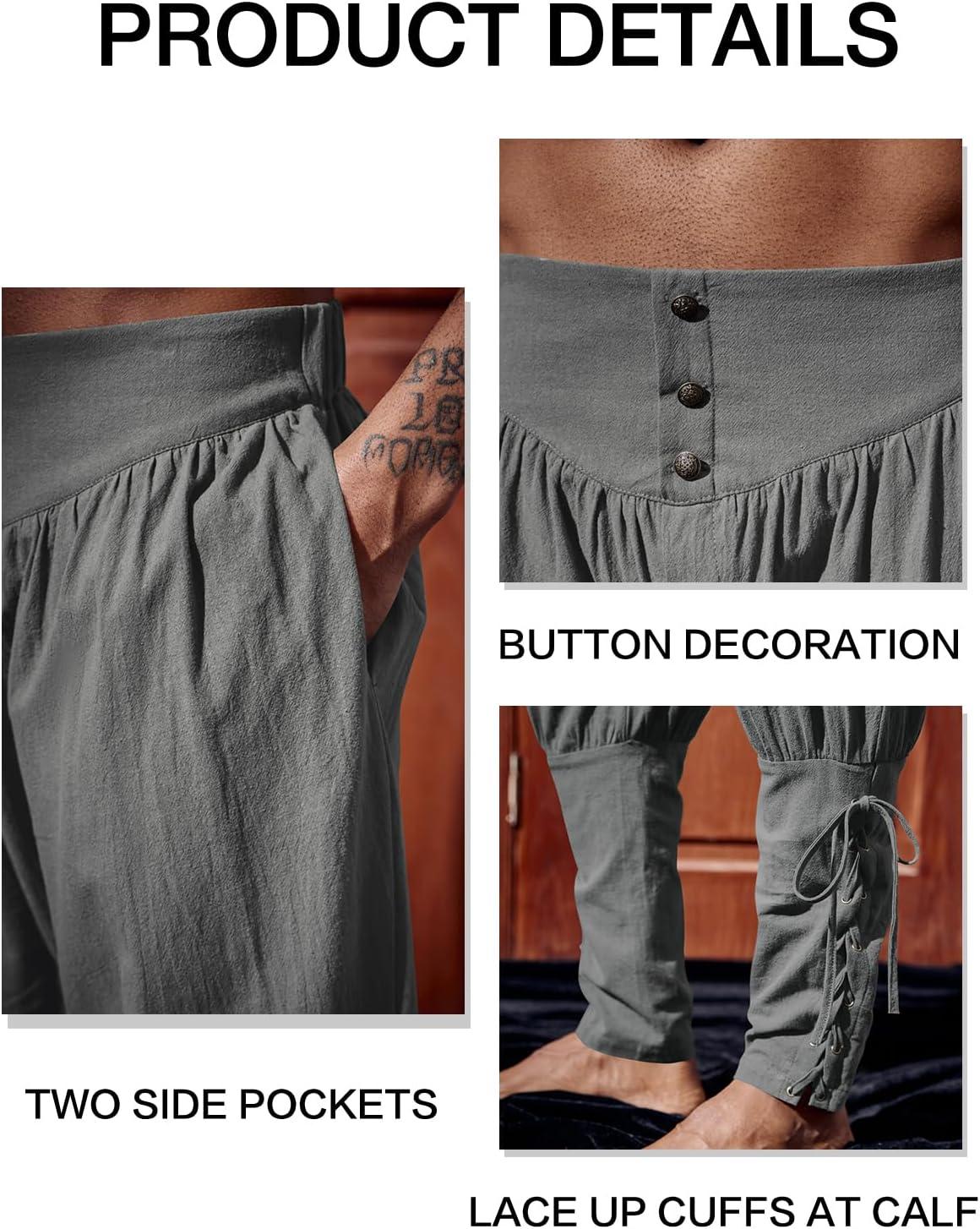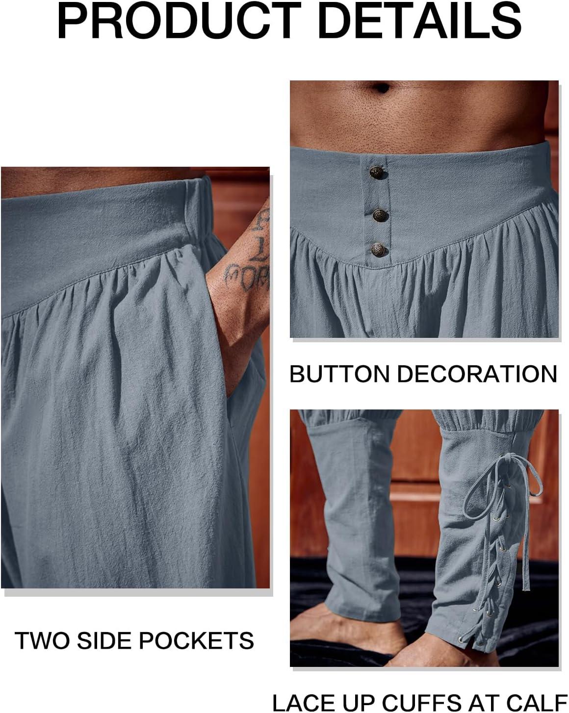 • Runcati Mens Medieval Ankle Pants Renaissance Viking Pirate Lace Up Tapered Halloween Linen Costume Trousers(Gray)