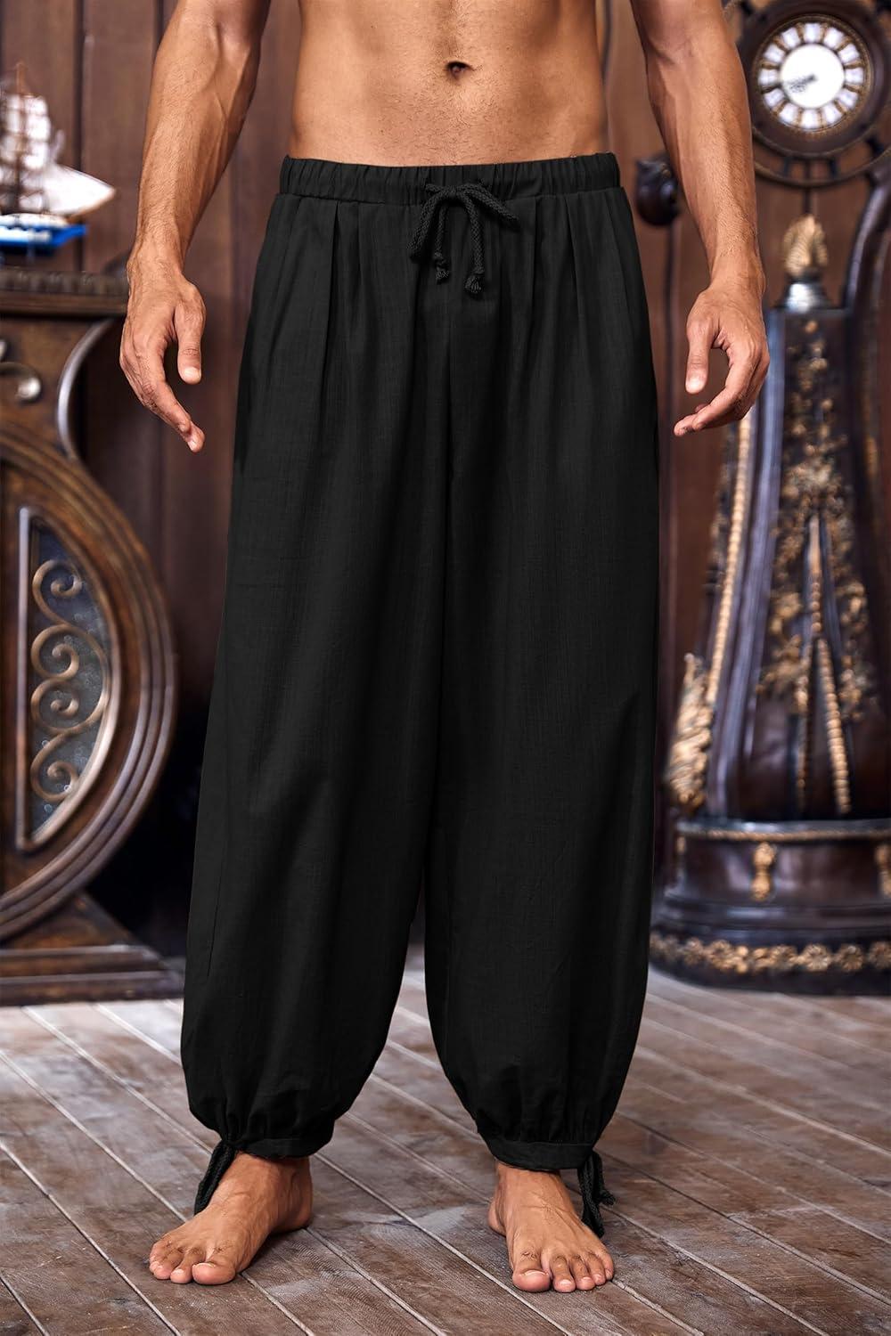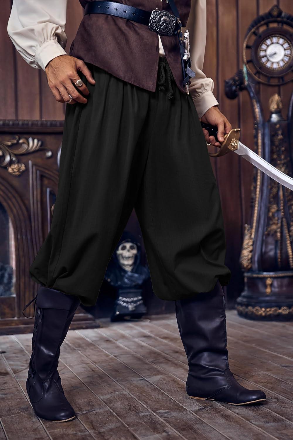 Runcati Mens Medieval Renaissance Pants Viking Pirate Mercenary Gothic Costume Cosplay Navigator Trousers Black