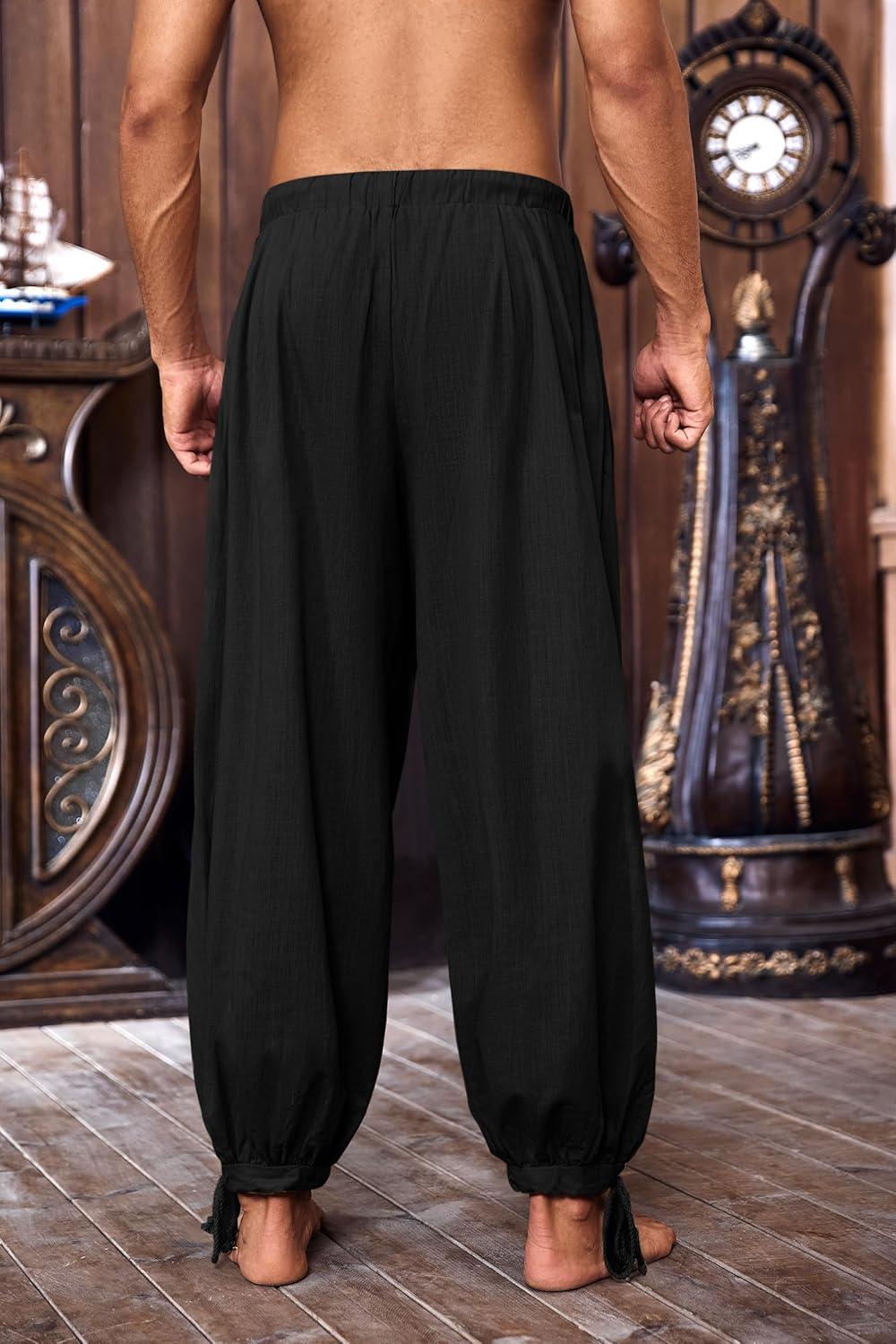• Runcati Mens Medieval Renaissance Pants Viking Pirate Mercenary Gothic Costume Cosplay Navigator Trousers Black