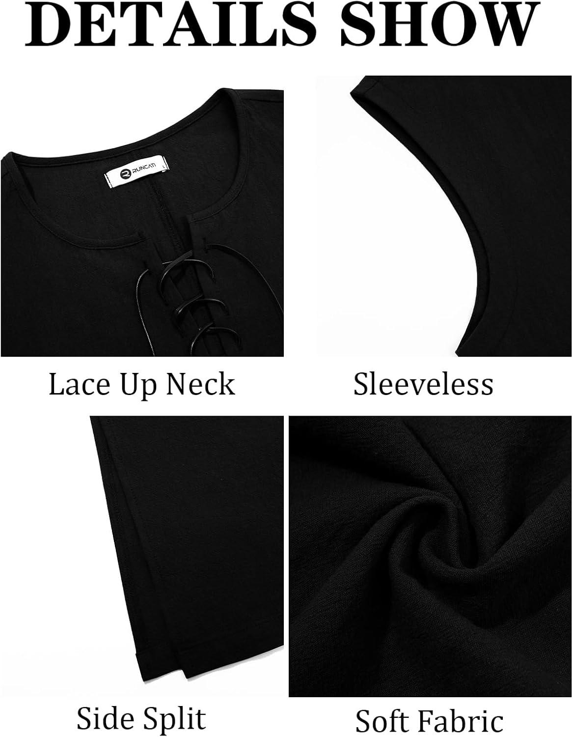 Runcati Mens Pirate Costume Tunic Renaissance Medieval Knight Warrior Sleeveless Lace Up Shirts Viking LARP Halloween Tabard(Black)