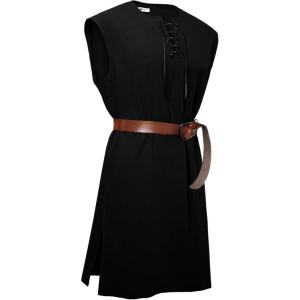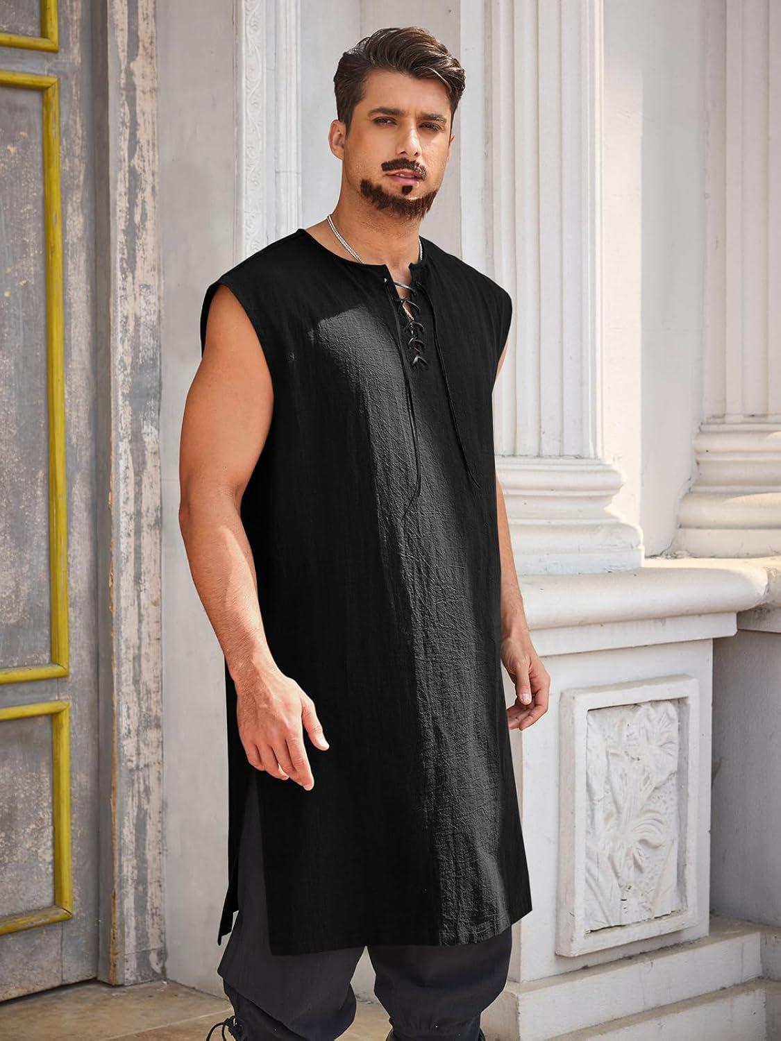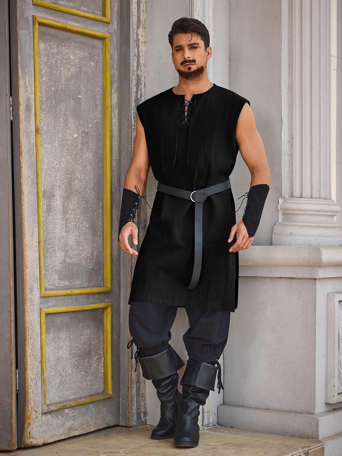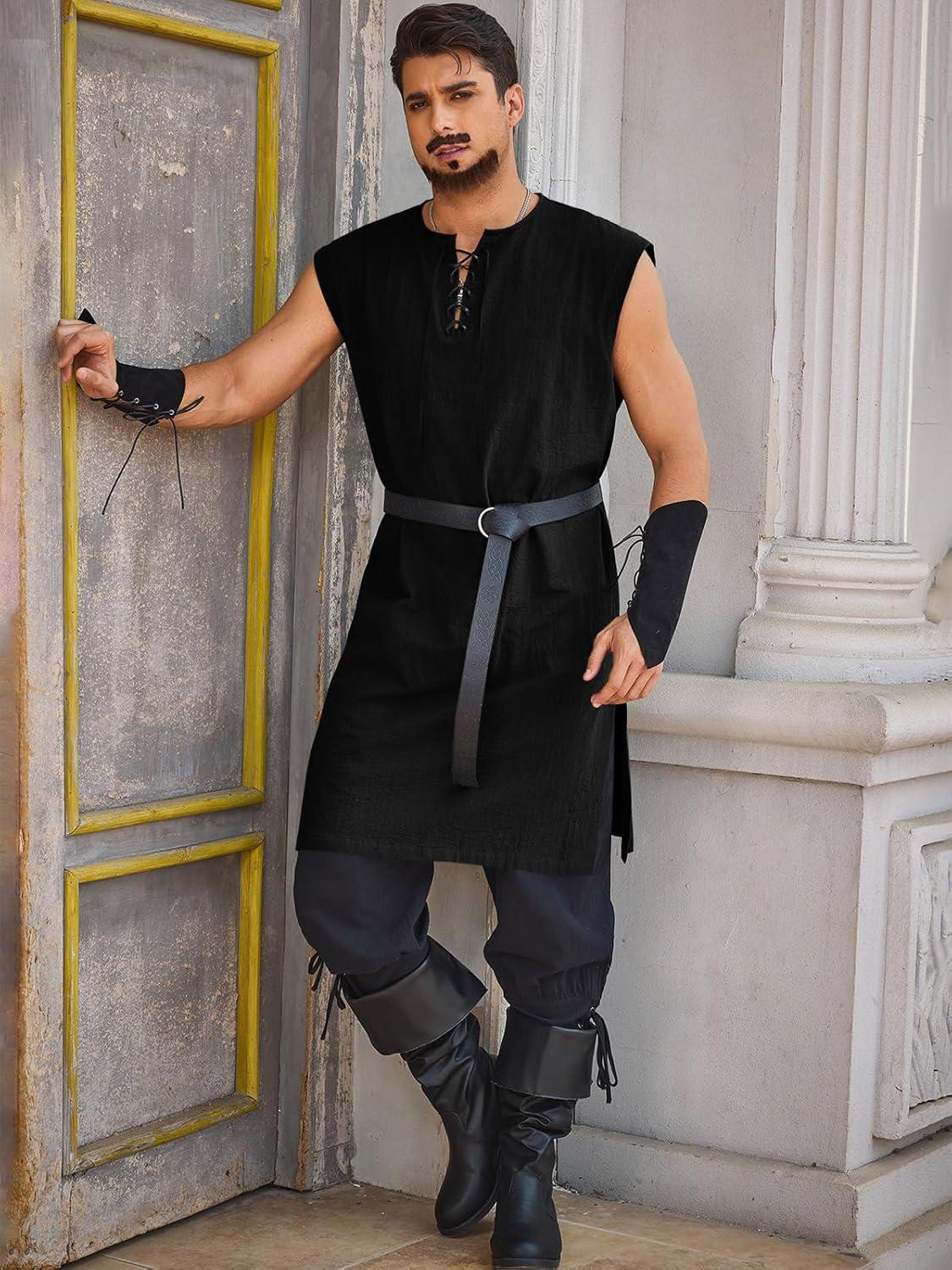 • Runcati Mens Pirate Costume Tunic Renaissance Medieval Knight Warrior Sleeveless Lace Up Shirts Viking LARP Halloween Tabard(Black)