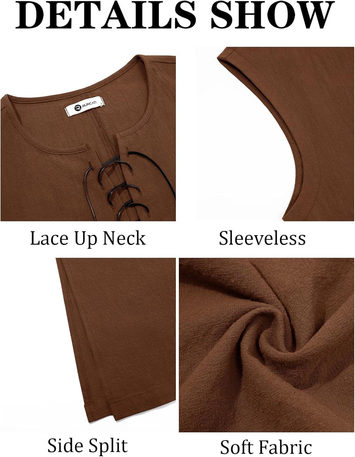 Runcati Mens Pirate Costume Tunic Renaissance Medieval Knight Warrior Sleeveless Lace Up Shirts Viking LARP Halloween Tabard(Brown)