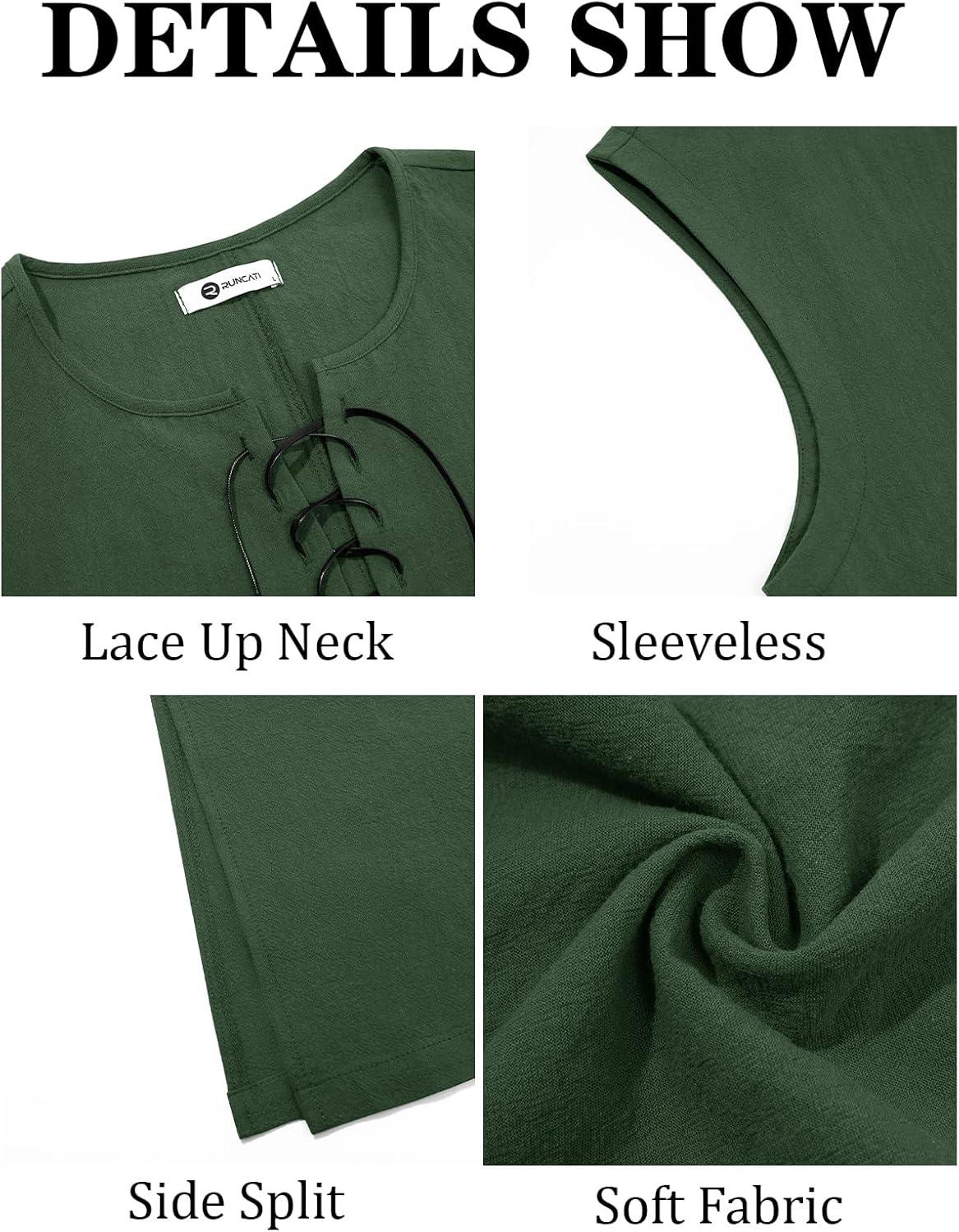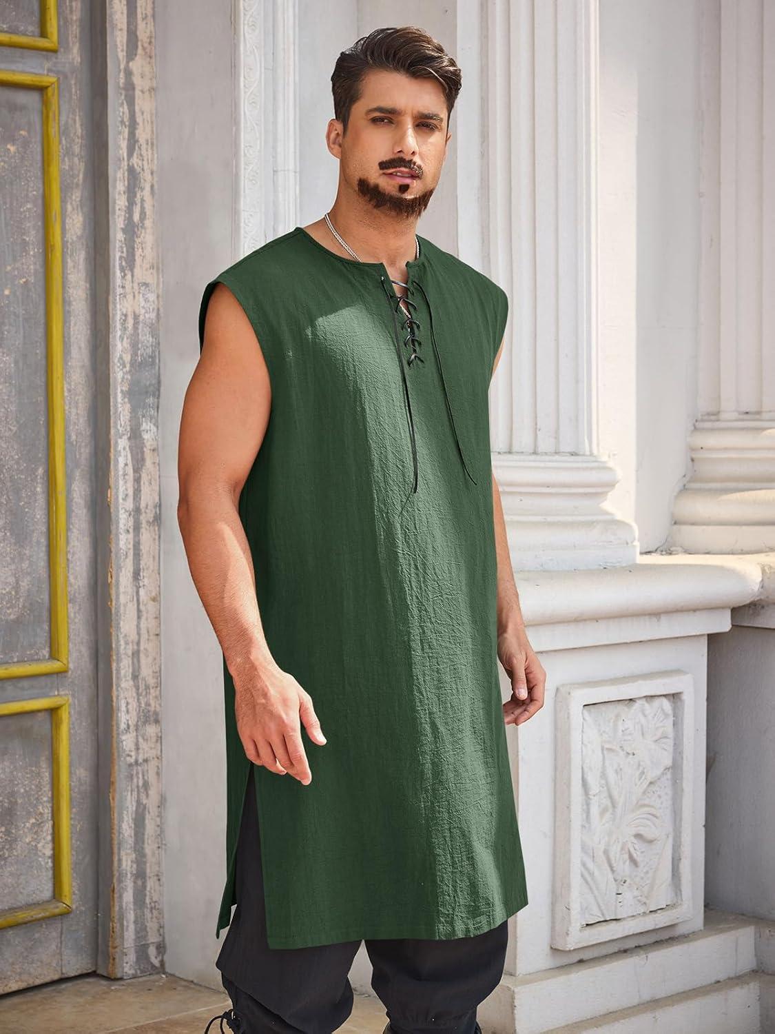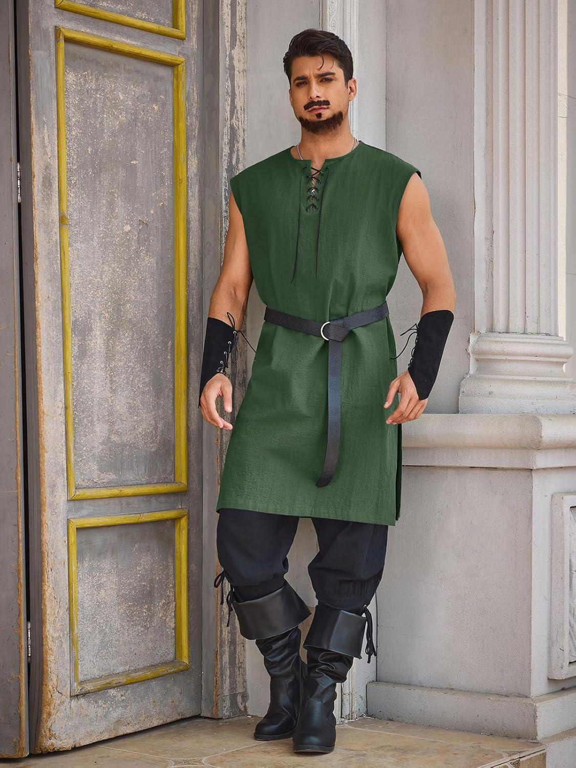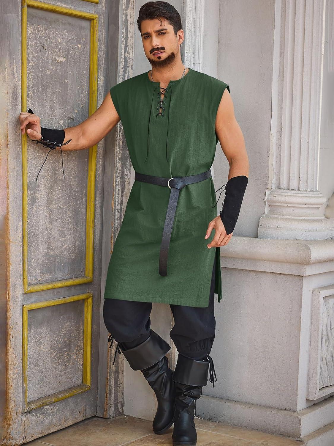 • Runcati Mens Pirate Costume Tunic Renaissance Medieval Knight Warrior Sleeveless Lace Up Shirts Viking LARP Halloween Tabard(Dark Green)