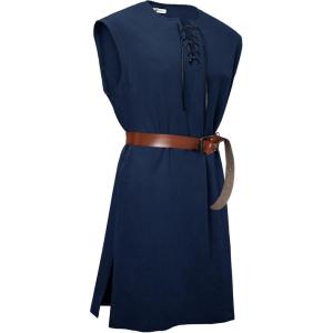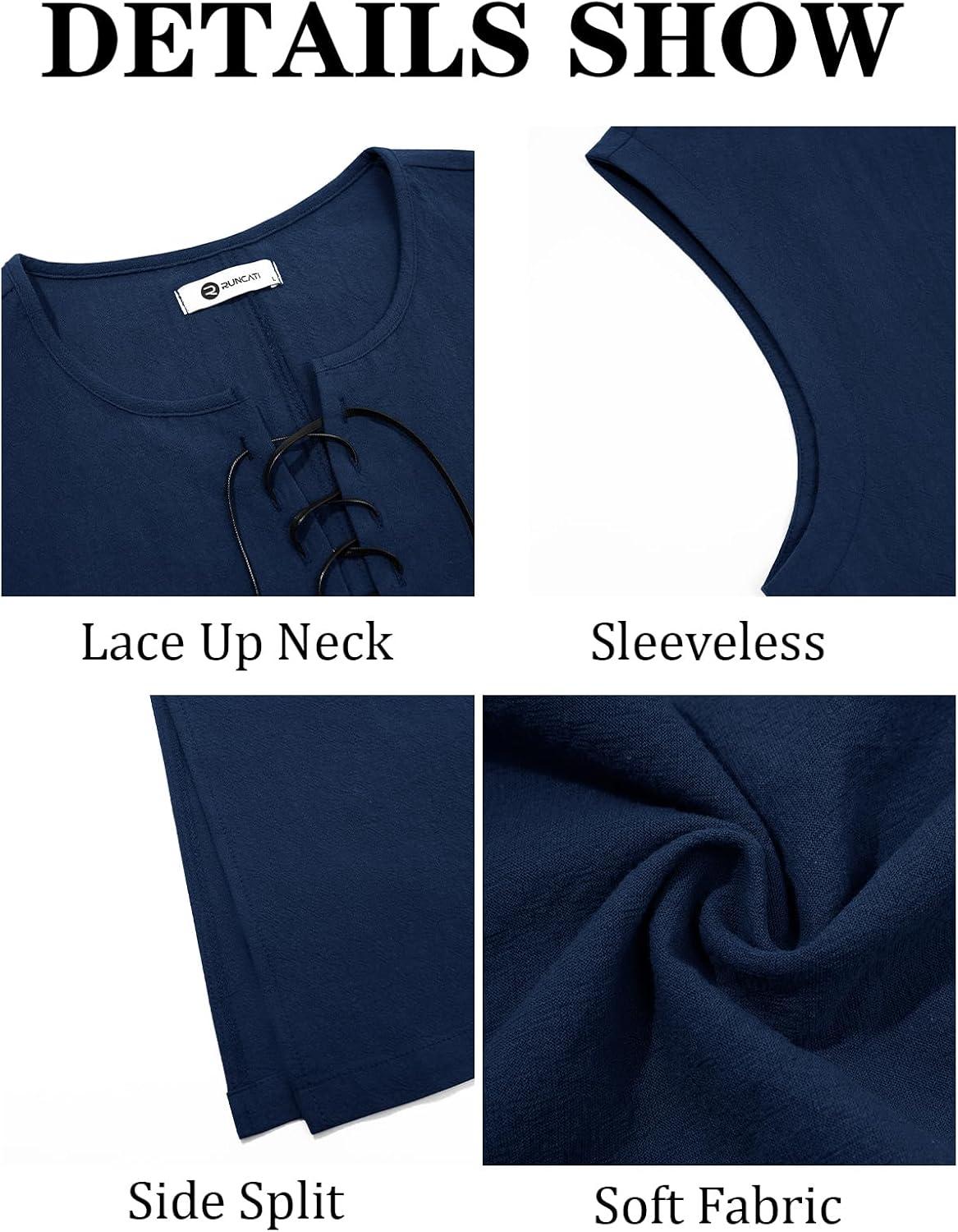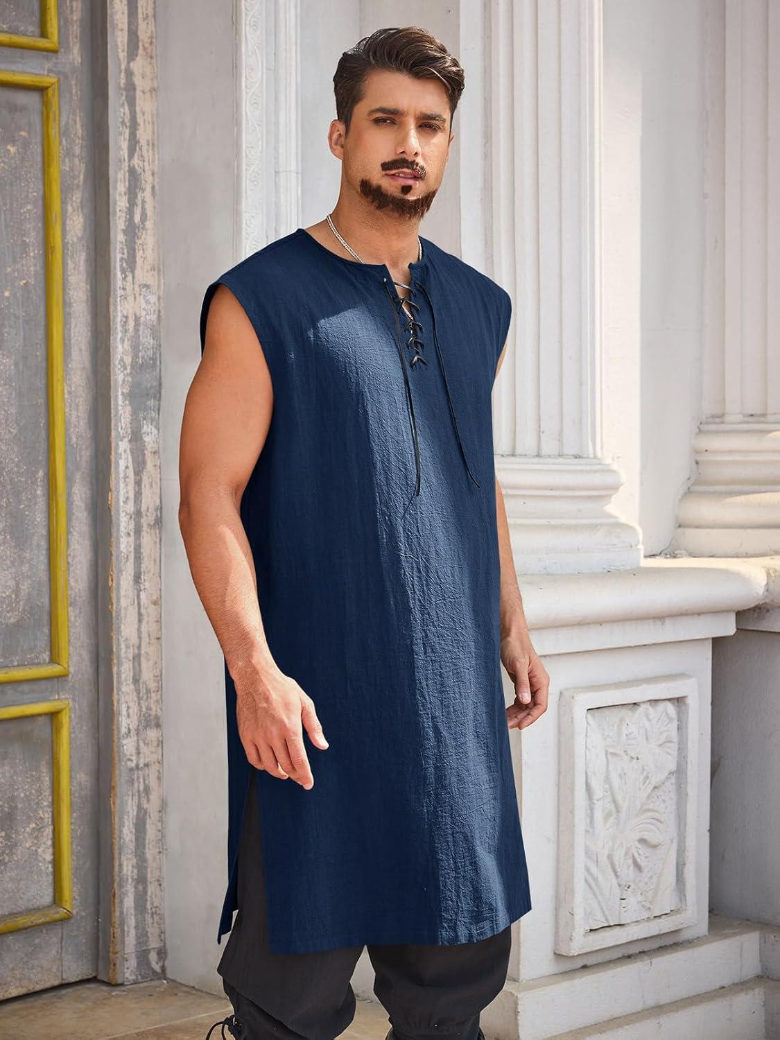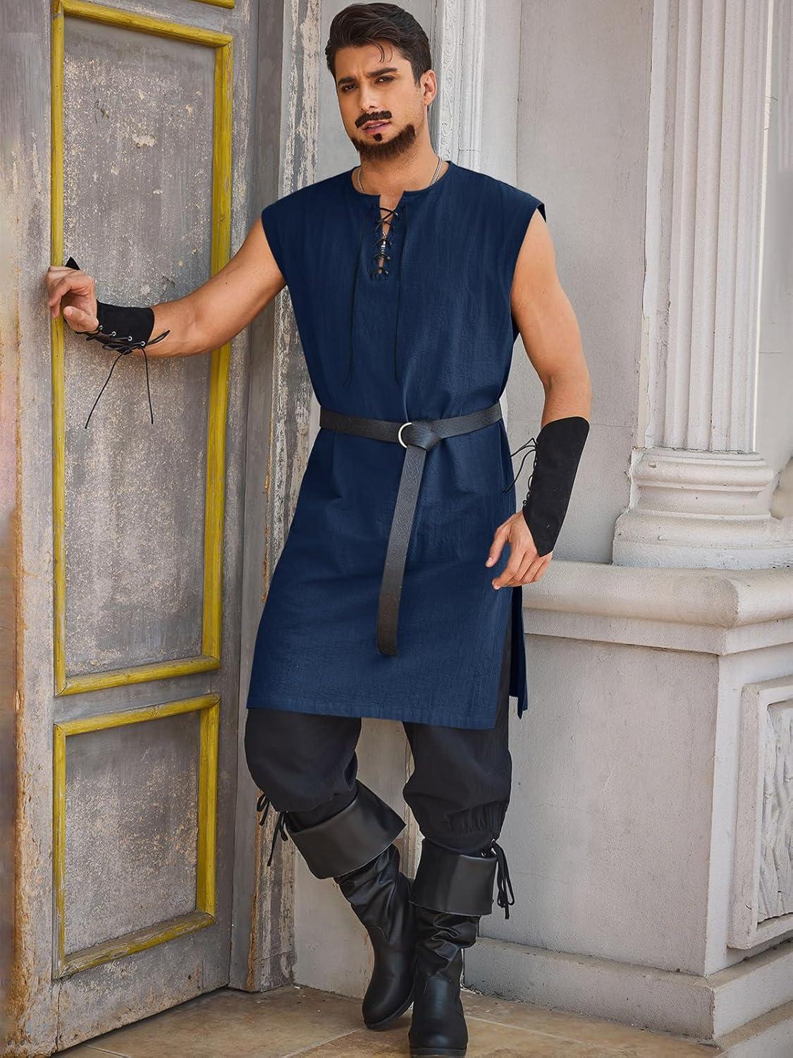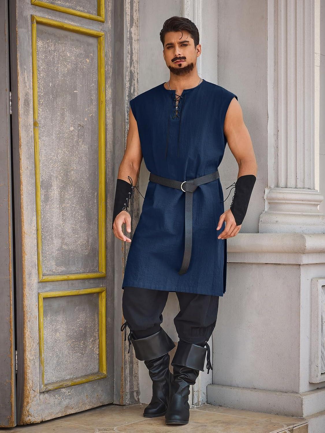 • Runcati Mens Pirate Costume Tunic Renaissance Medieval Knight Warrior Sleeveless Lace Up Shirts Viking LARP Halloween Tabard(Navy Blue)