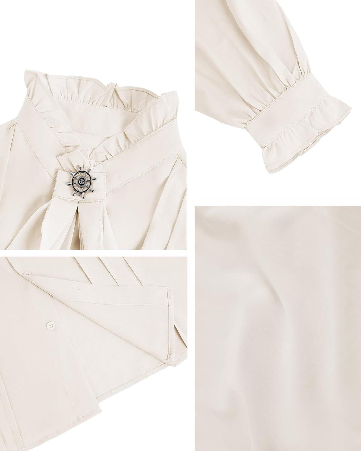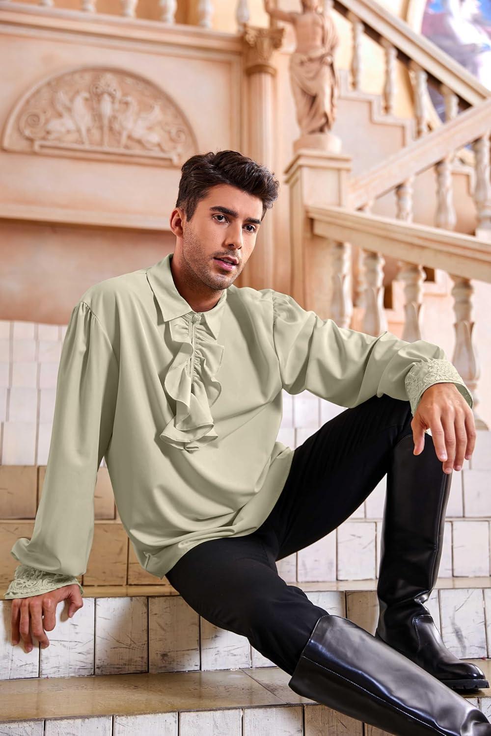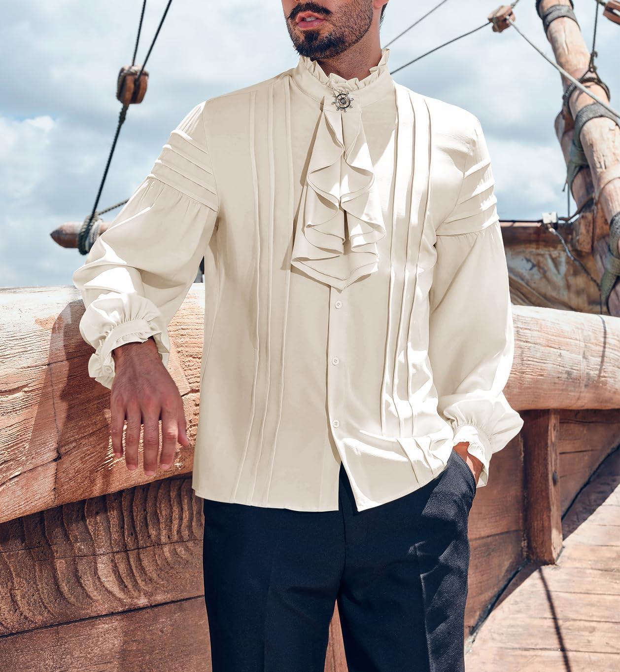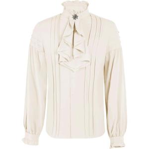 Runcati Mens Pirate Shirt Ruffle Victorian Renaissance Steampunk Vampire Poet Shirts Medieval Halloween Costume(01 Beige)