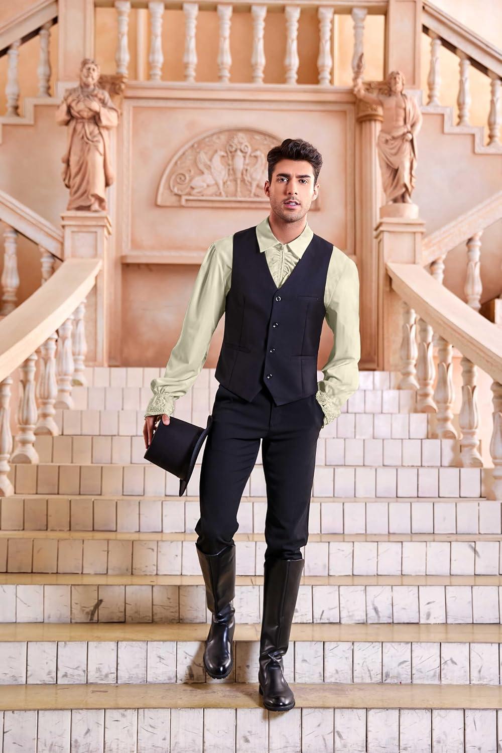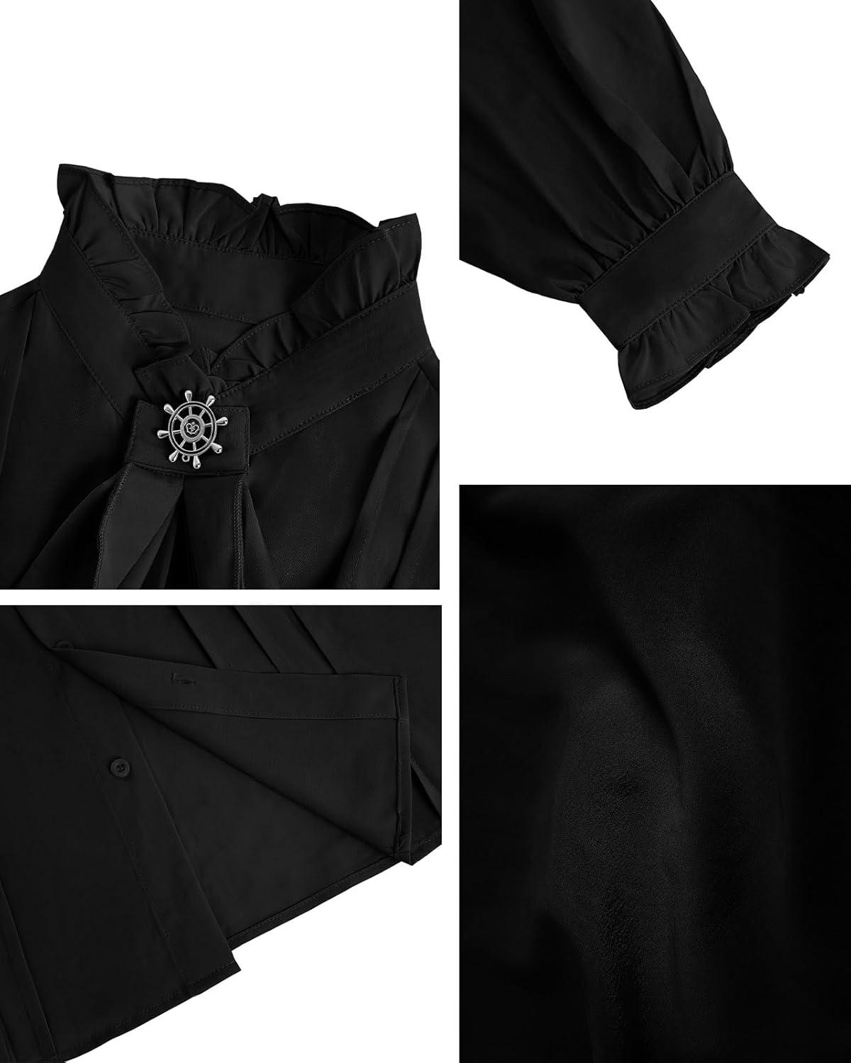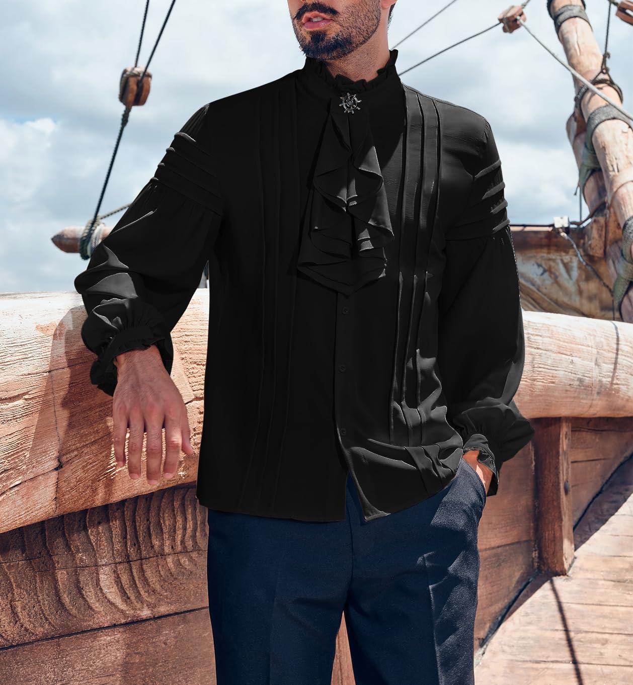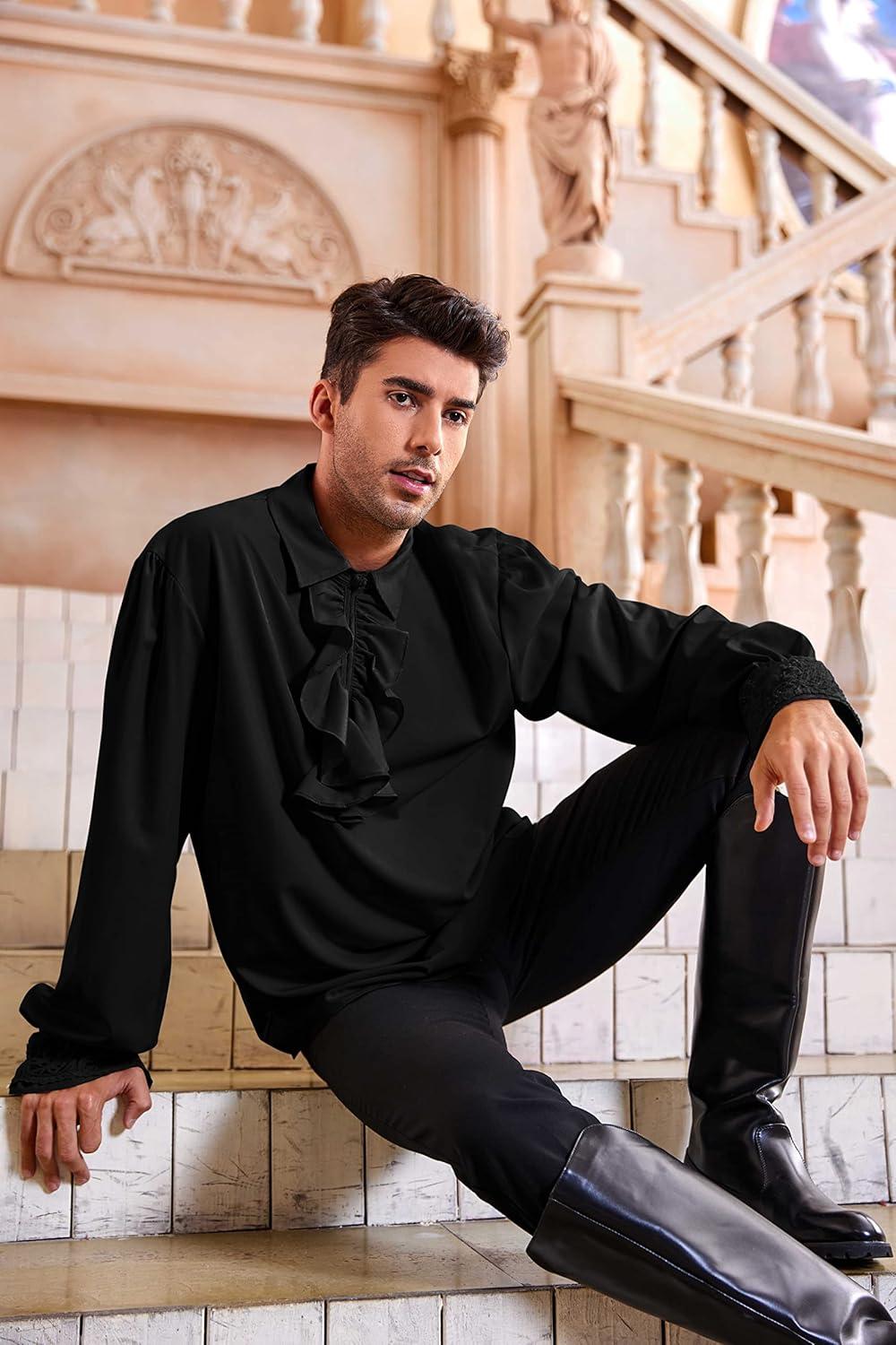 Runcati Mens Pirate Shirt Ruffle Victorian Renaissance Steampunk Vampire Poet Shirts Medieval Halloween Costume(01 Black)