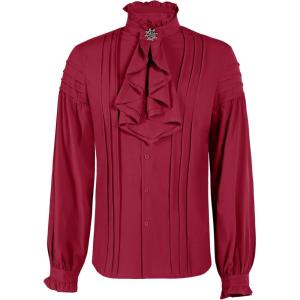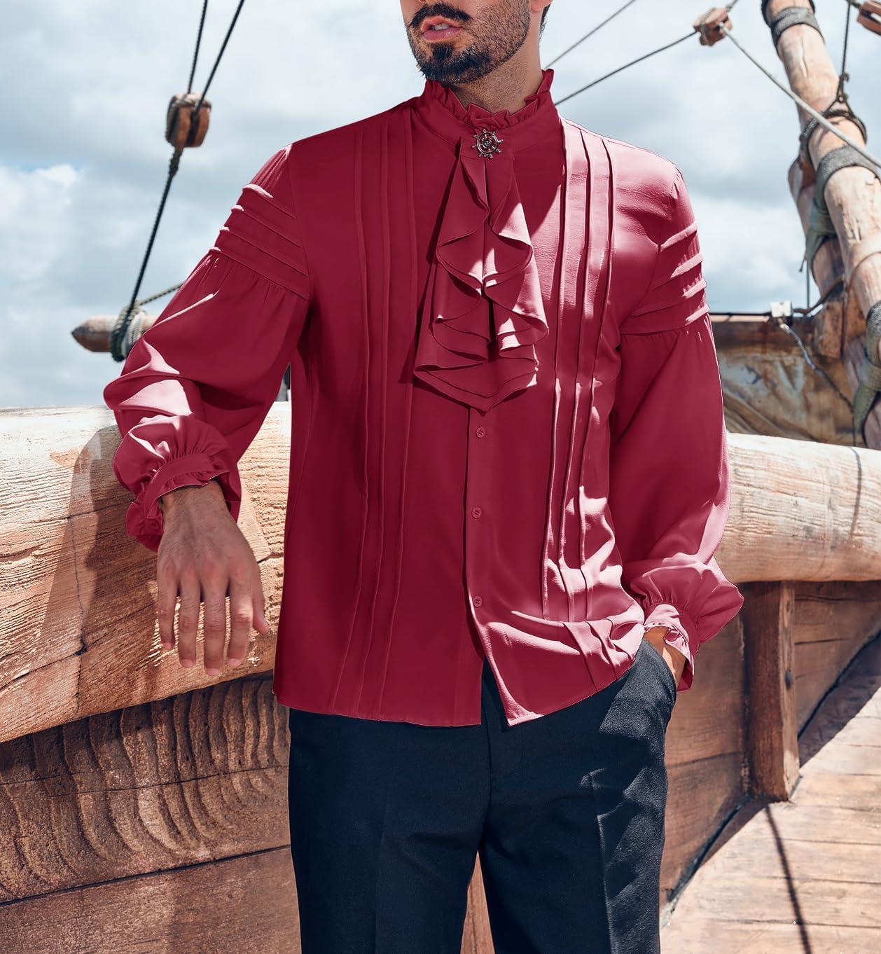 • Runcati Mens Pirate Medieval Shirts Ruffle Steampunk Victorian Cosplay Costume Gothic Renaissance Shirt Viking Tops(Red)