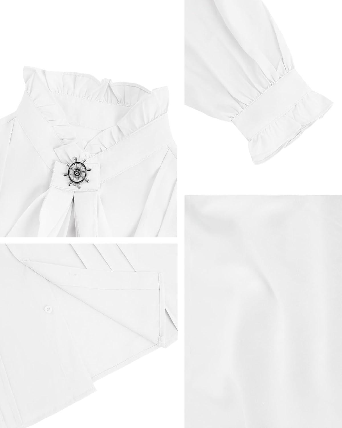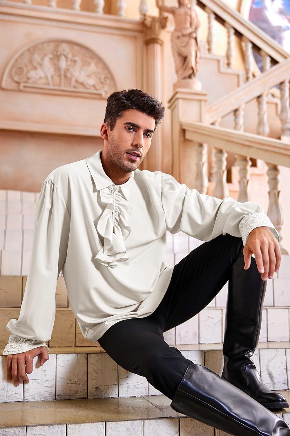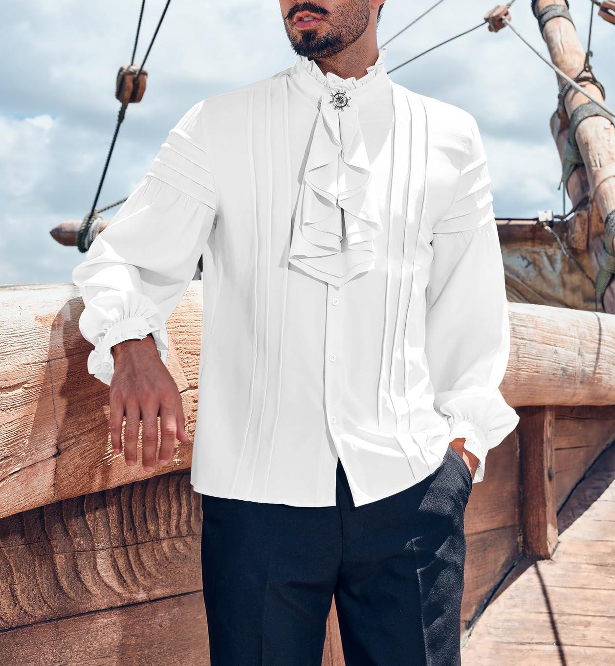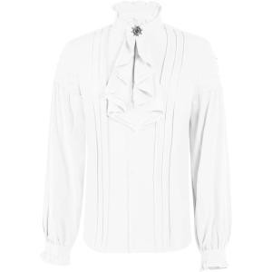 Runcati Mens Pirate Shirt Ruffle Victorian Renaissance Steampunk Vampire Poet Shirts Medieval Halloween Costume(01 White)