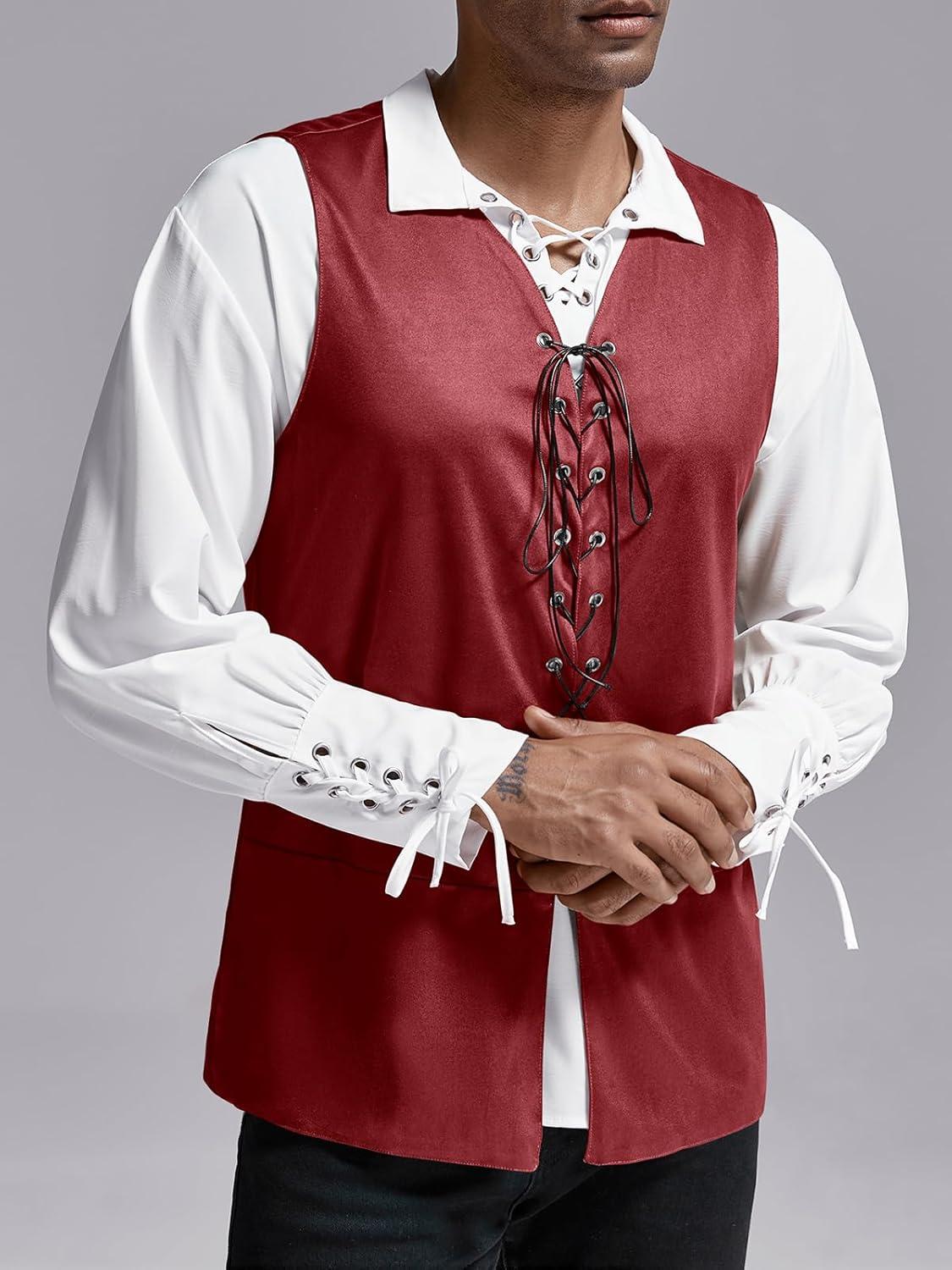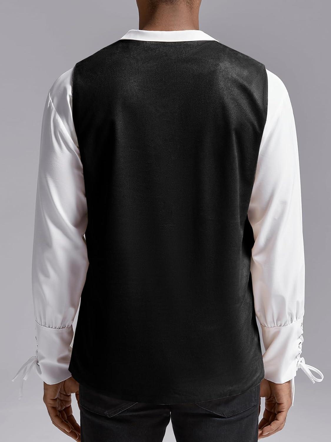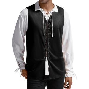 • Runcati Mens Medieval Renaissance Vest Pirate Gothic Halloween Costume Suede Lace Up Reversible Waistcoat(Black)