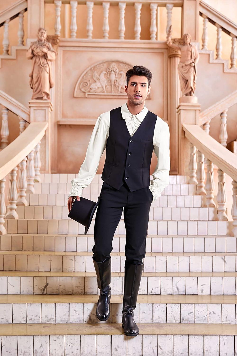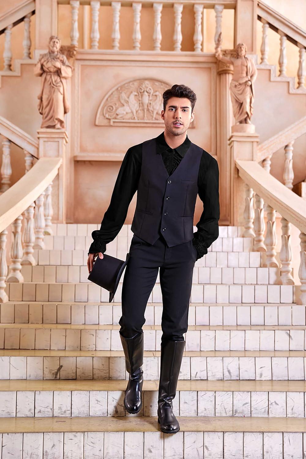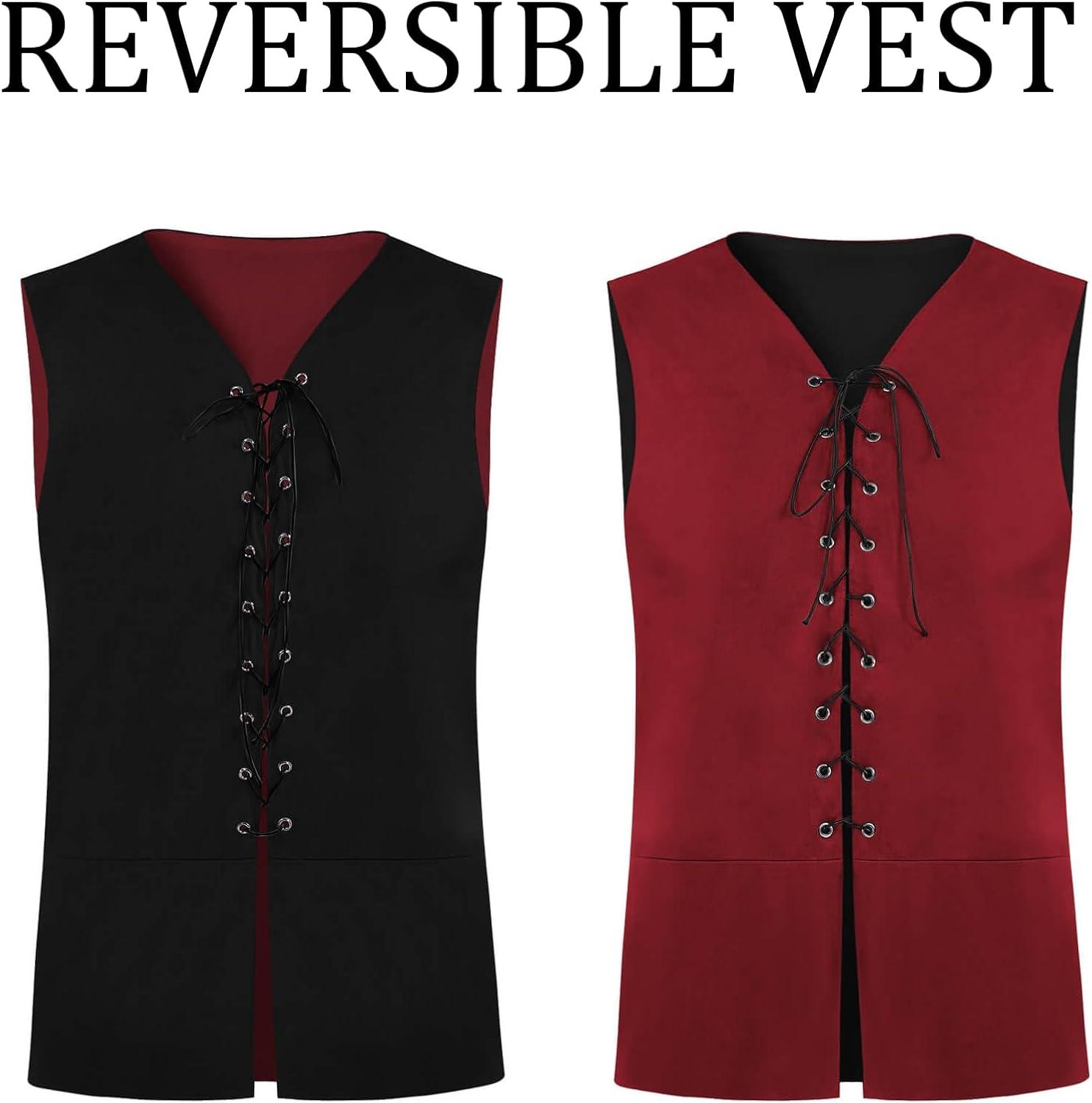 Runcati Mens Medieval Renaissance Vest Pirate Gothic Halloween Costume Suede Lace Up Reversible Waistcoat(Black)
