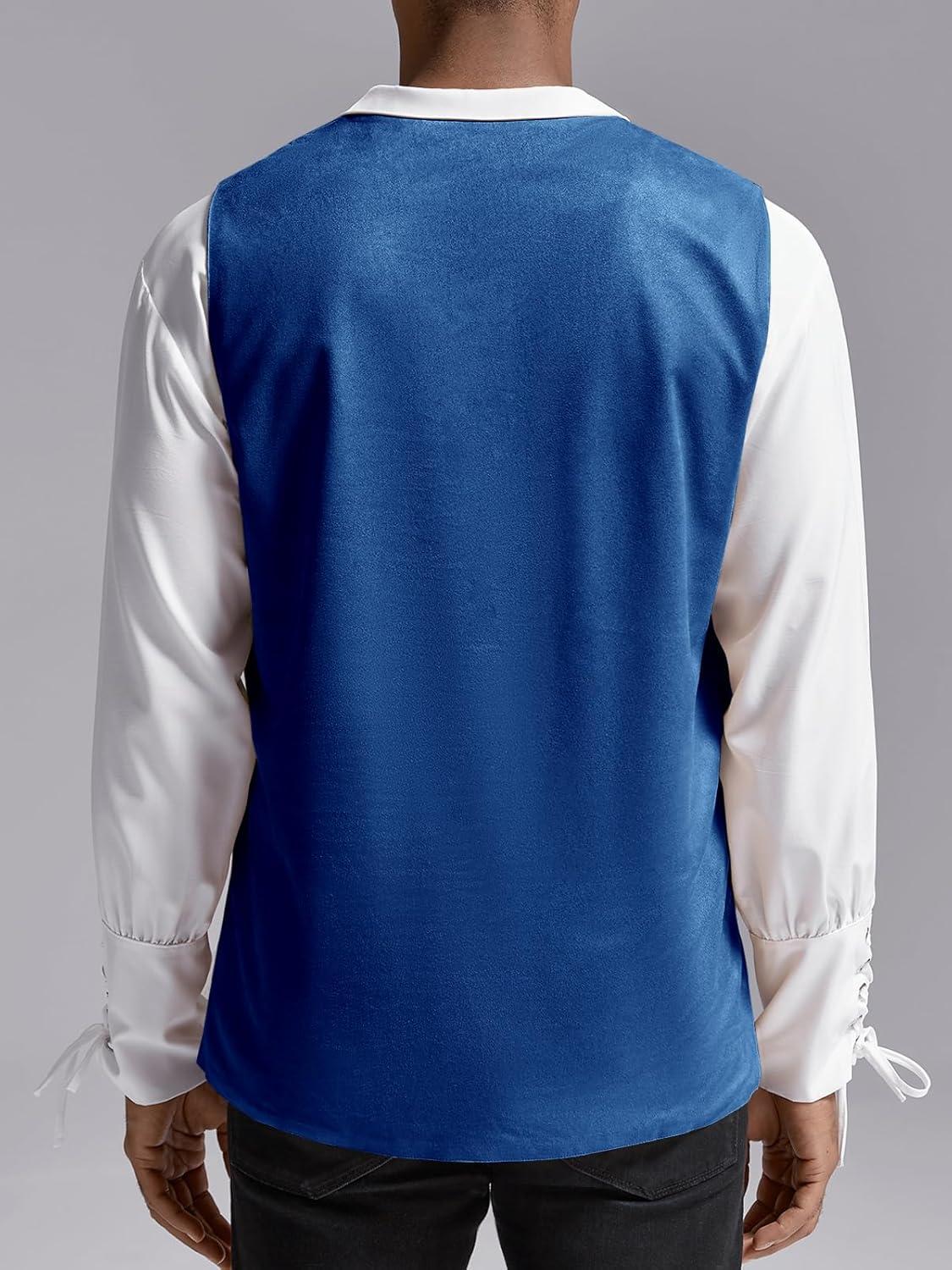 Runcati Mens Medieval Renaissance Vest Pirate Gothic Halloween Costume Suede Lace Up Reversible Waistcoat(Blue)