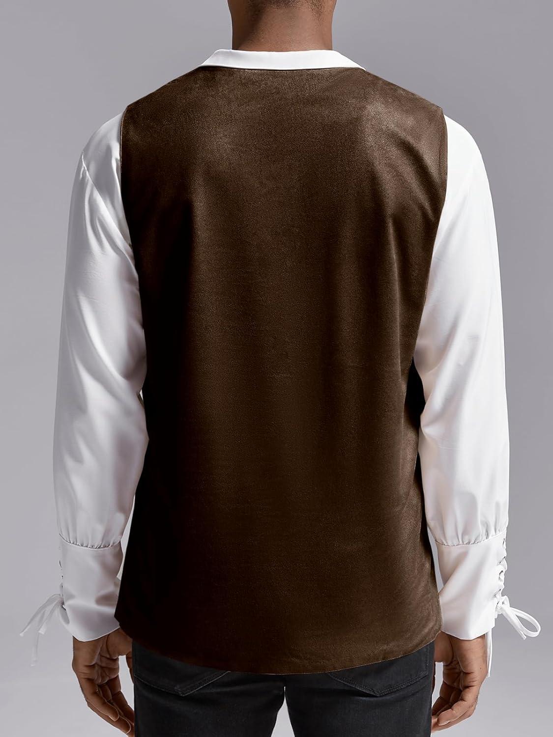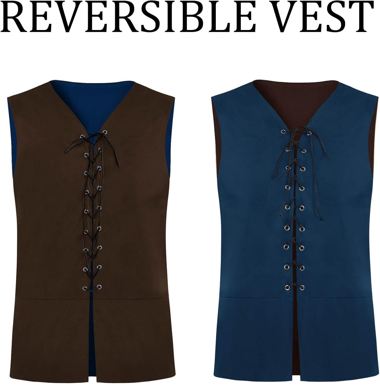 Runcati Mens Medieval Renaissance Vest Pirate Gothic Halloween Costume Suede Lace Up Reversible Waistcoat(Brown)