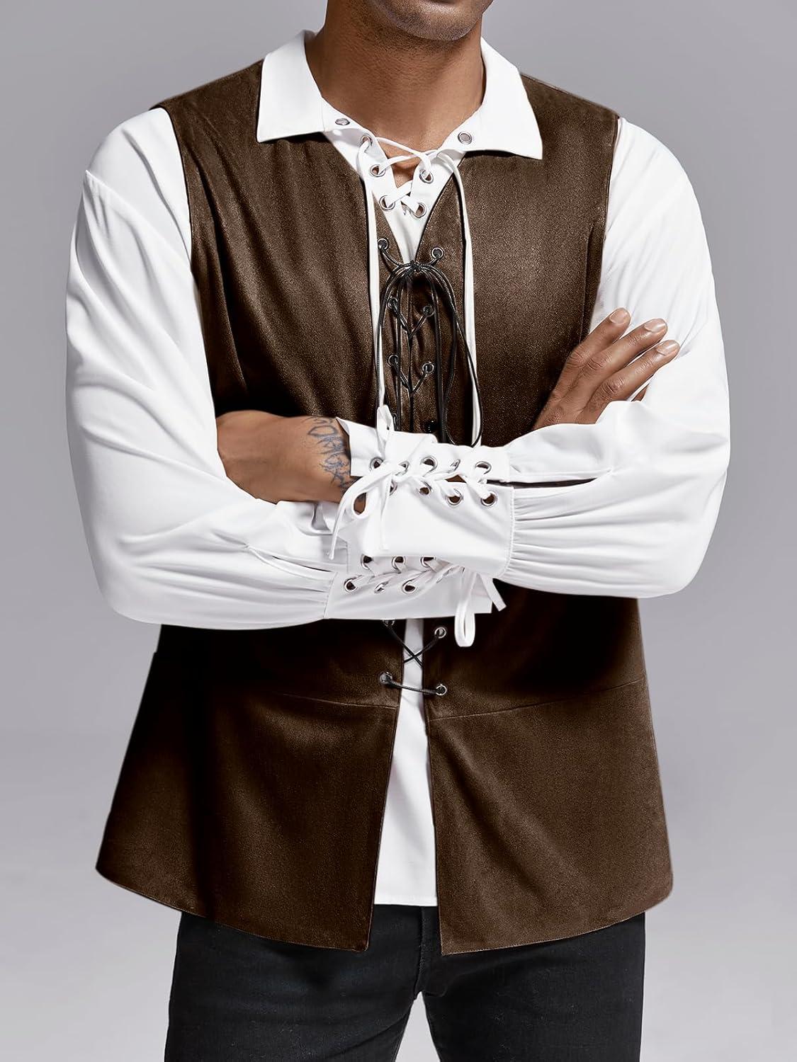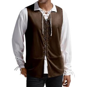 • Runcati Mens Medieval Renaissance Vest Pirate Gothic Halloween Costume Suede Lace Up Reversible Waistcoat(Brown)