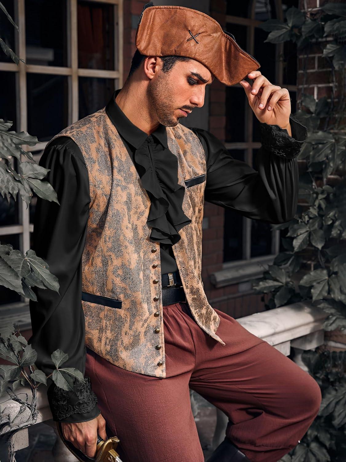 • Runcati Mens Pirate Shirt Ruffle Victorian Renaissance Steampunk Vampire Poet Shirts Medieval Halloween Costume(01 Black)