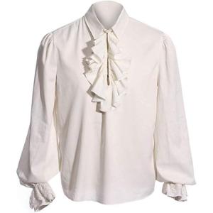 • Runcati Mens Pirate Shirt Ruffle Victorian Renaissance Steampunk Vampire Poet Shirts Medieval Halloween Costume(01 White)