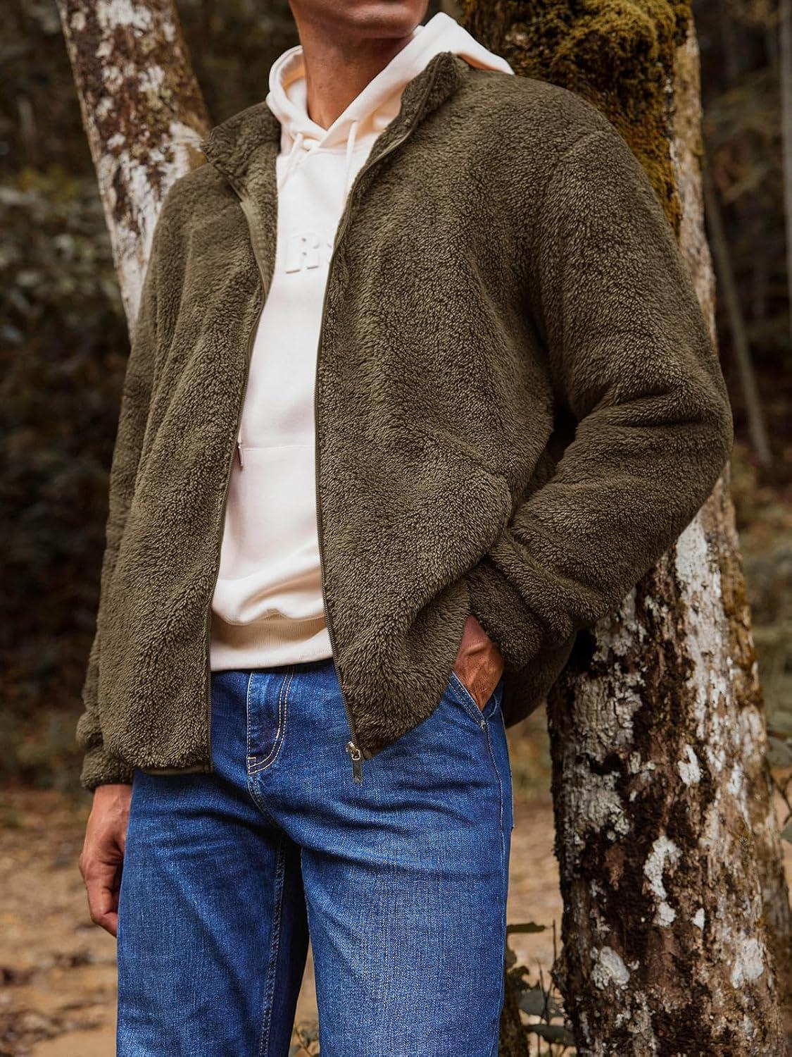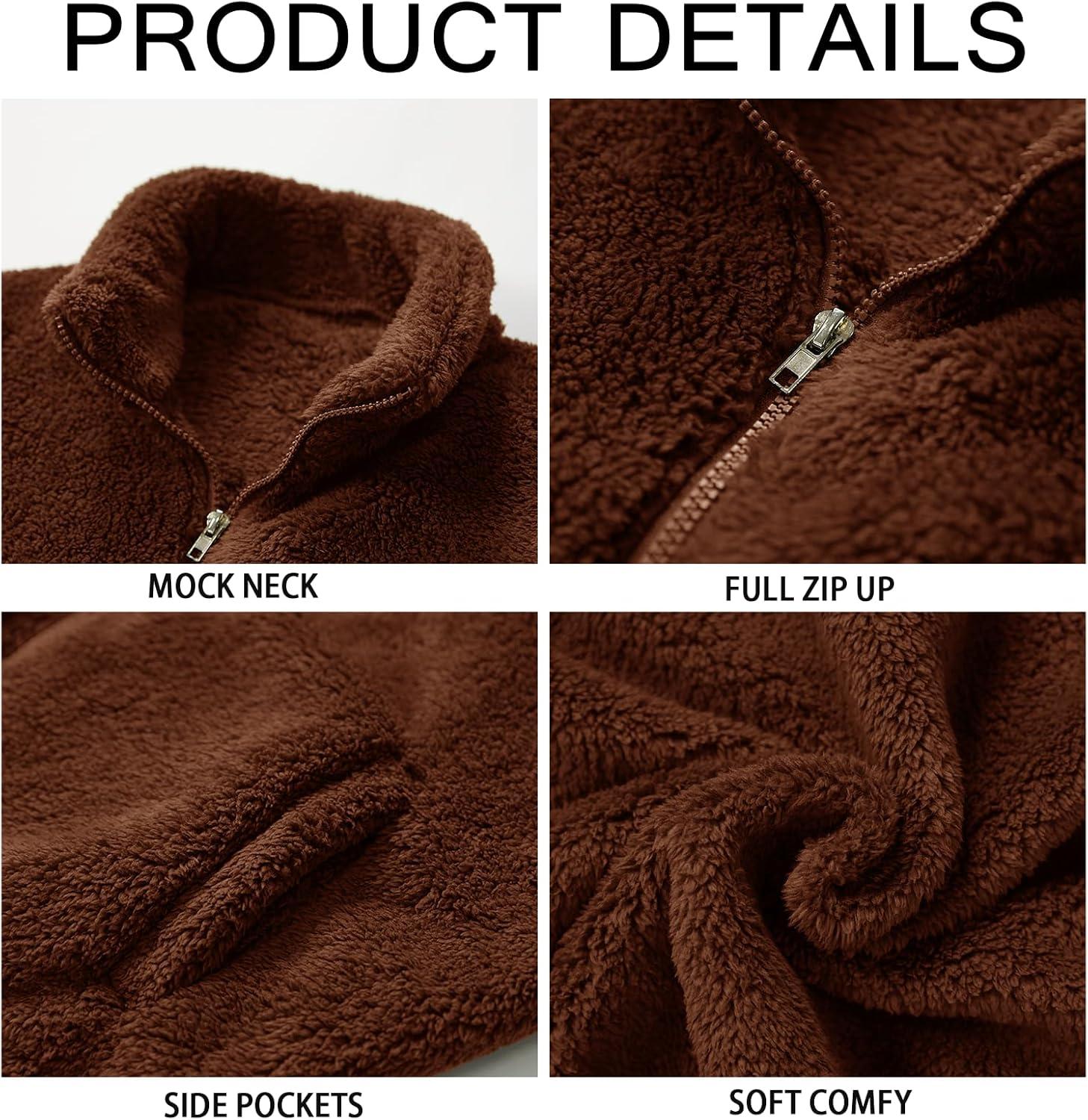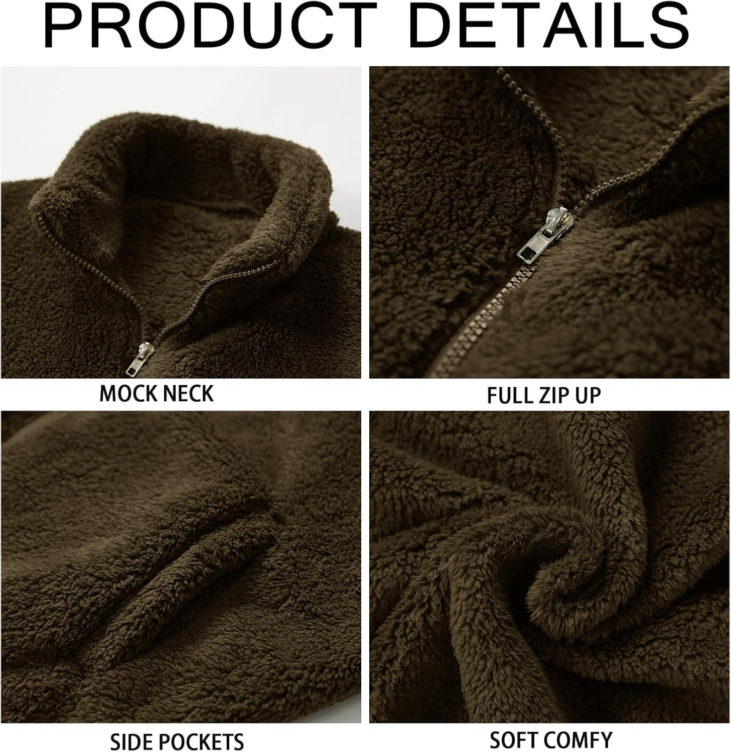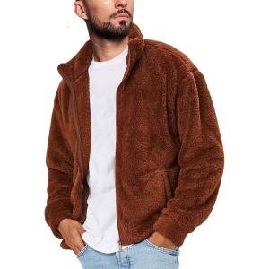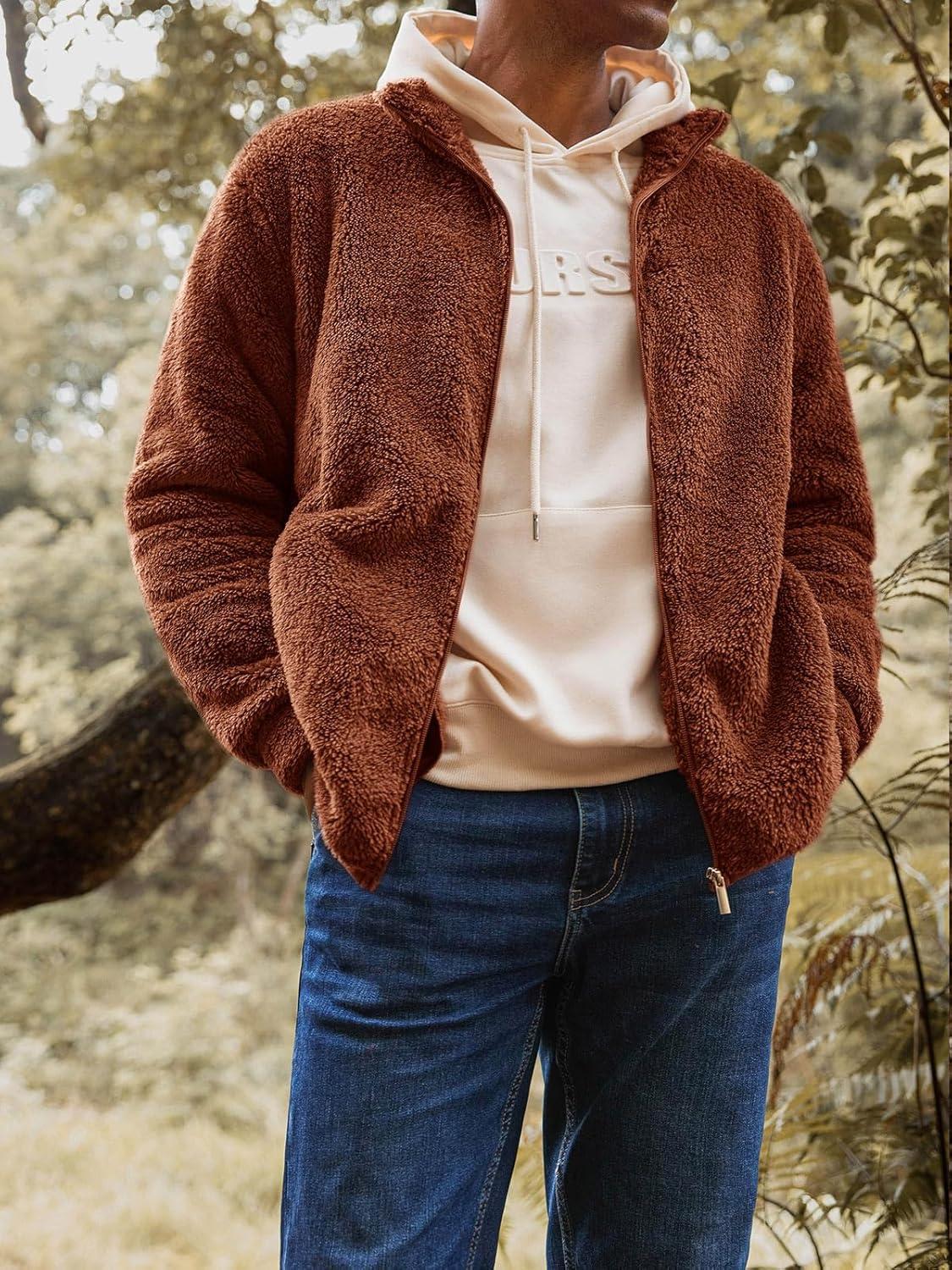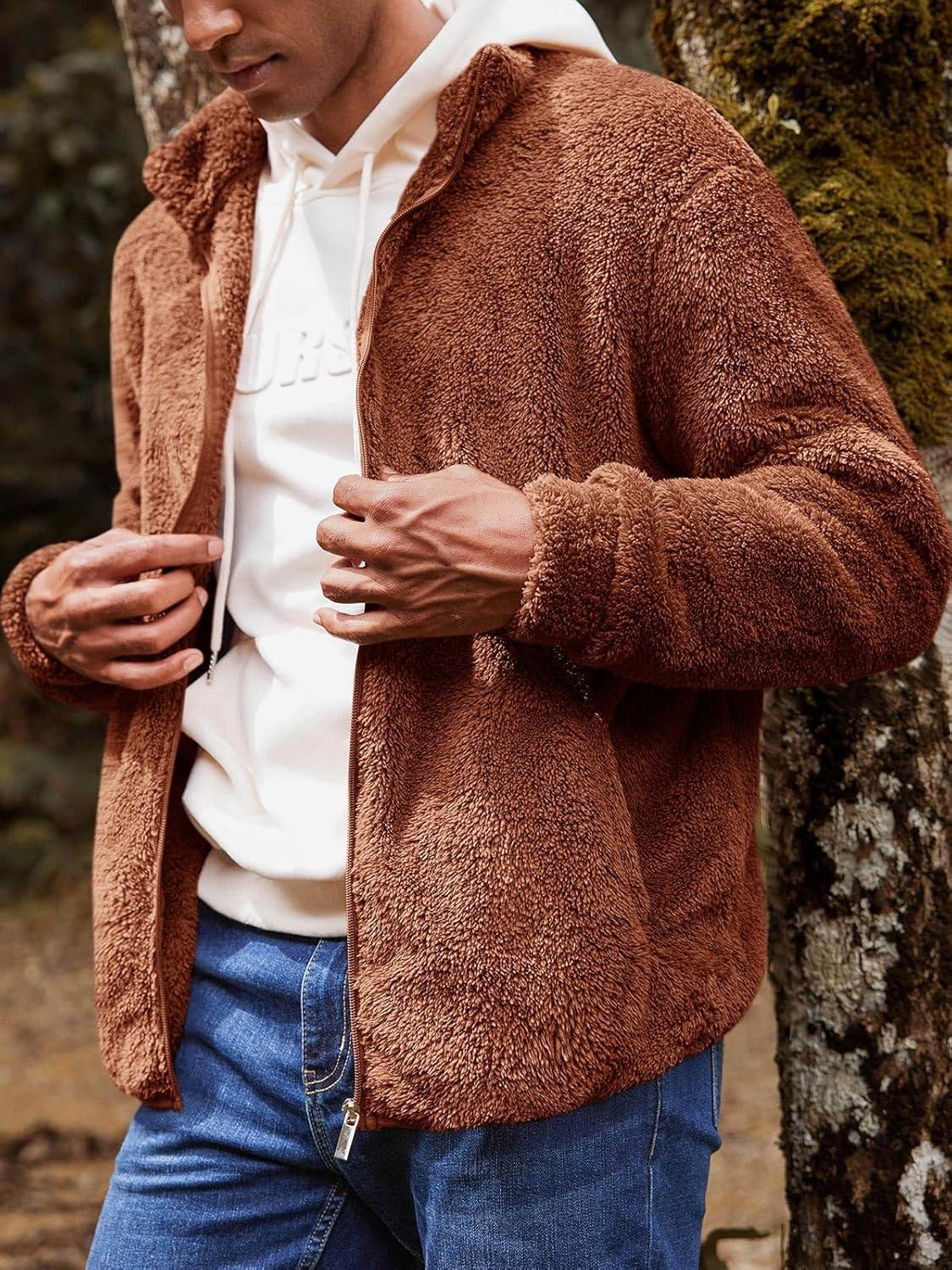 Runcati Mens Fuzzy Sherpa Jacket Cardigan Fleece Long Sleeve Full Zip Open Front Thermal Coat Fall Winter Outwear(Brown)