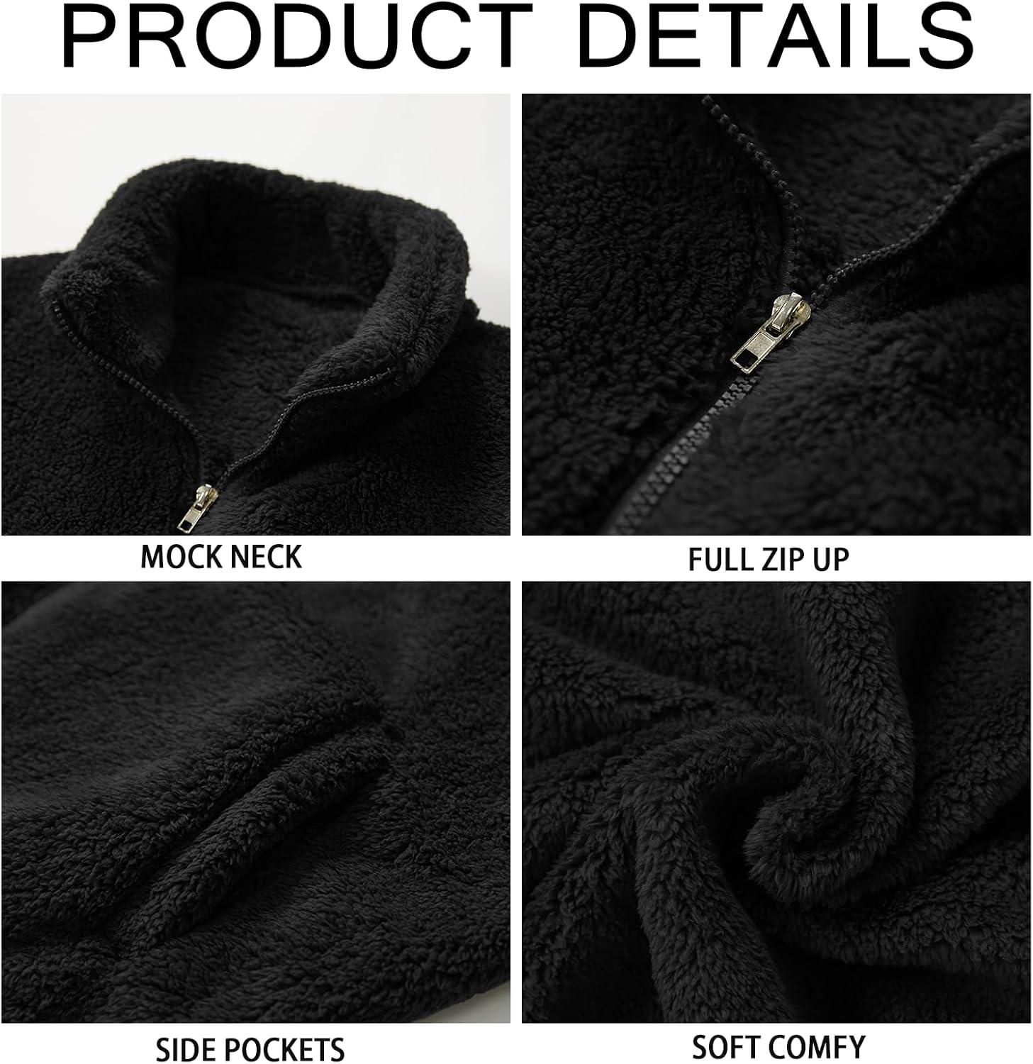 Runcati Mens Fuzzy Sherpa Jacket Cardigan Fleece Long Sleeve Full Zip Open Front Thermal Coat Fall Winter Outwear(Black)